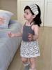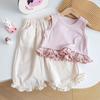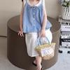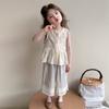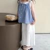 Conjunto de Verano para Niñas Bebé Elegante Infantil Moderno Versión Coreana Encaje Cuadros Chaleco Camisola Hueco Pantalones de Pierna Ancha