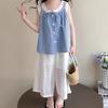 Blue fake two-piece plaid top 100cm