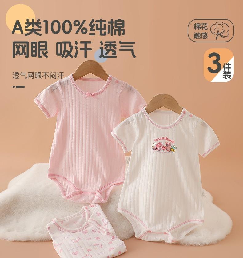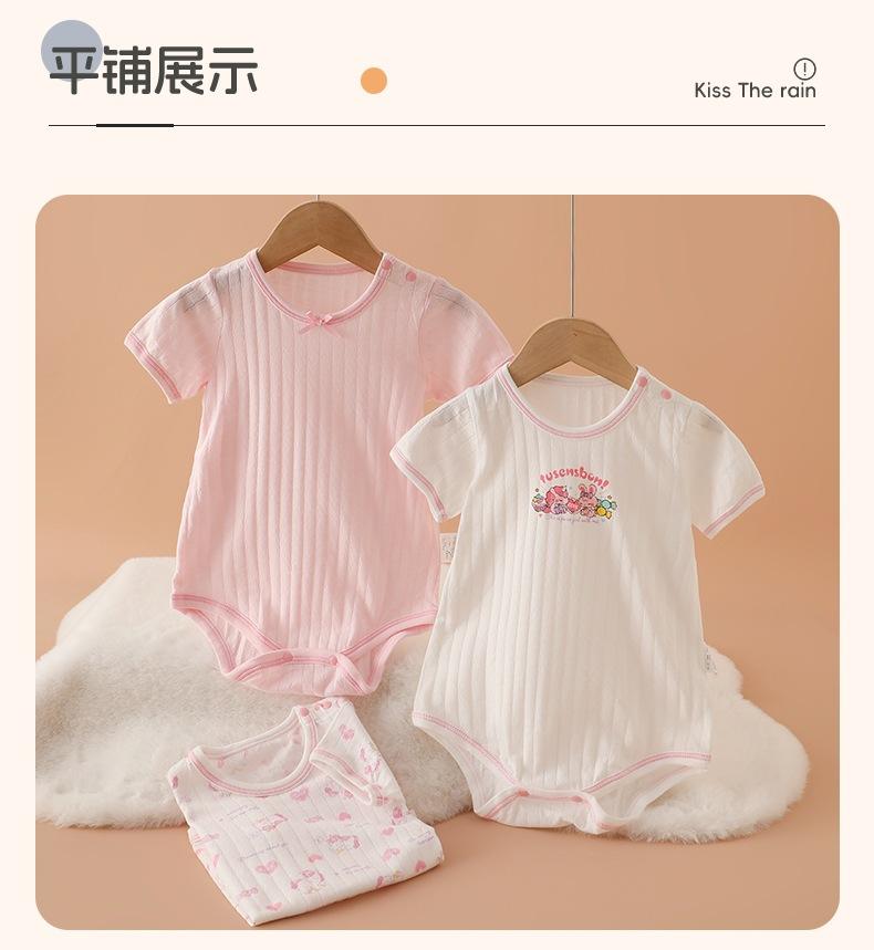 Ropa de Conejo Triángulo para Bebé Ropa de Verano Ropa de Manga Corta con Bolsa para Niña Ropa Gorda Ropa Delgada Transpirable Algodón para Bebé Ropa para Trepar