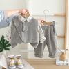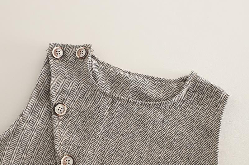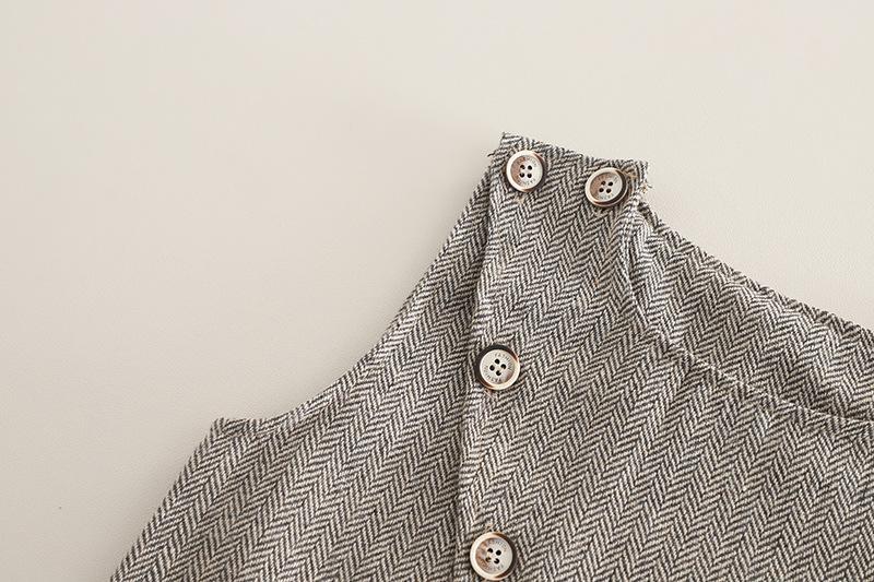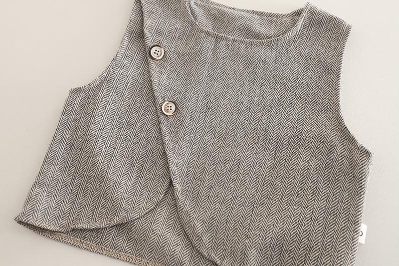 Gray tie shoulder button vest three-piece set, Black tie shoulder buckle vest three-piece set