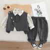 Conjunto de Ropa de Primavera y Otoño para Niños 2025 Nuevo Estilo Estilo Occidental Ropa para Niños Traje para Bebé Estilo Coreano Chaleco Conjunto de Tres Piezas