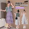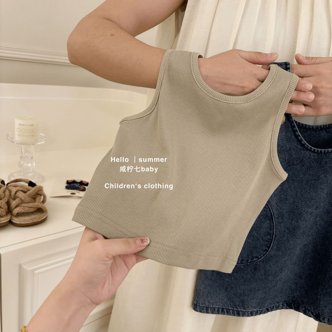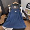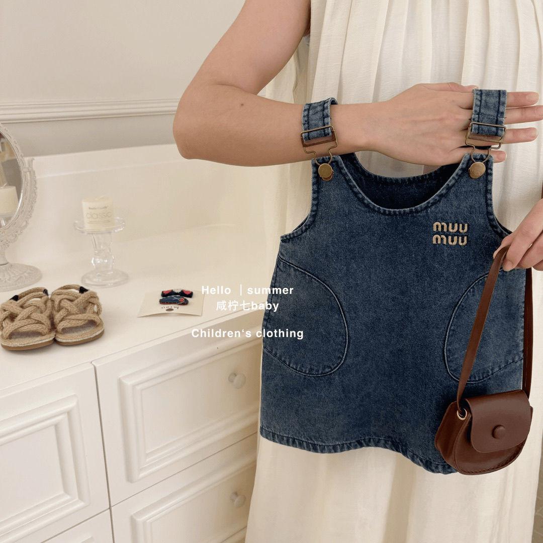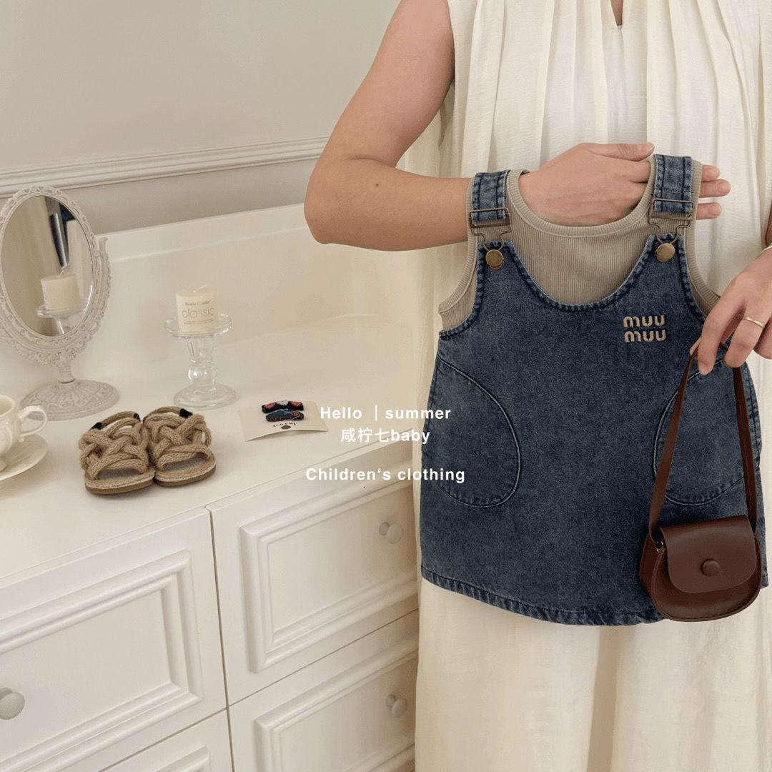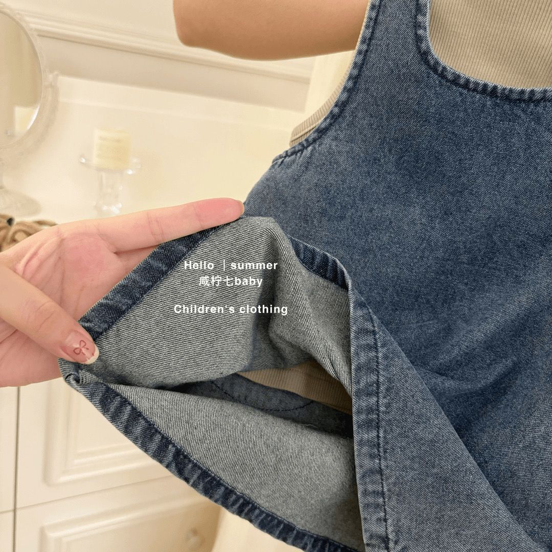 Traje de Verano para Niñas 2025 Nuevo Estilo Niña Retro Denim Falda de Tirantes Chaleco Casual Conjunto de Dos Piezas Moderno