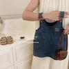 Retro denim suspender skirt + gray vest, Vintage denim suspender skirt, Gray vest