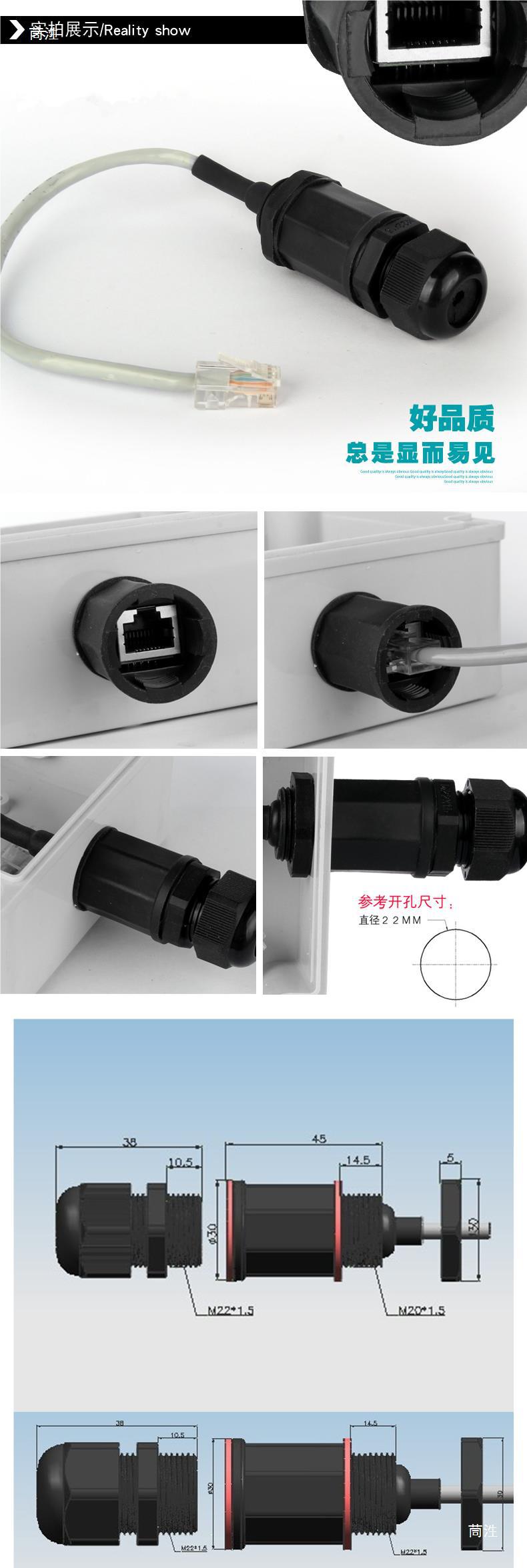 Tipo de Red Enchufe Conector RJ45 Conector de Cable de Red M22 con Cable con Cabeza de Cristal Fabricante