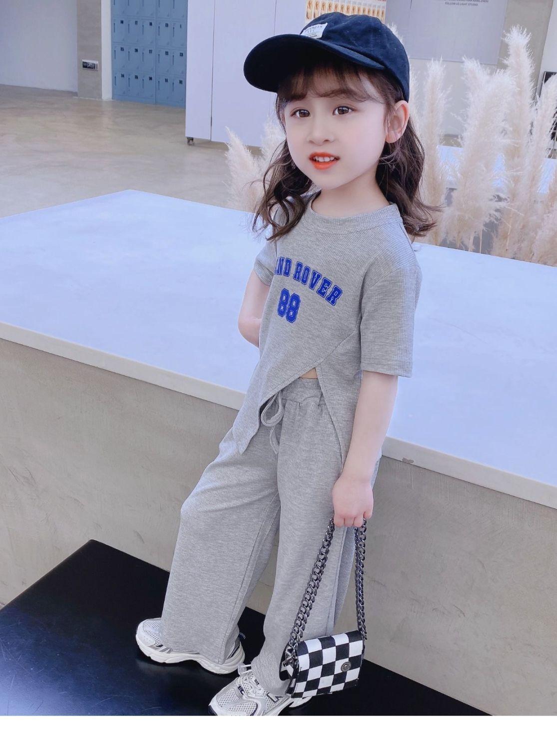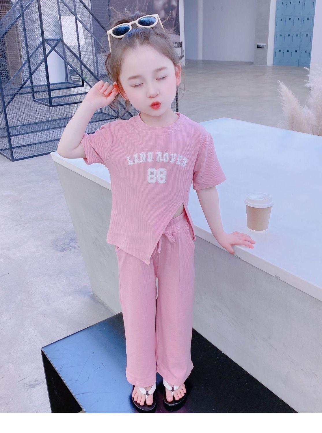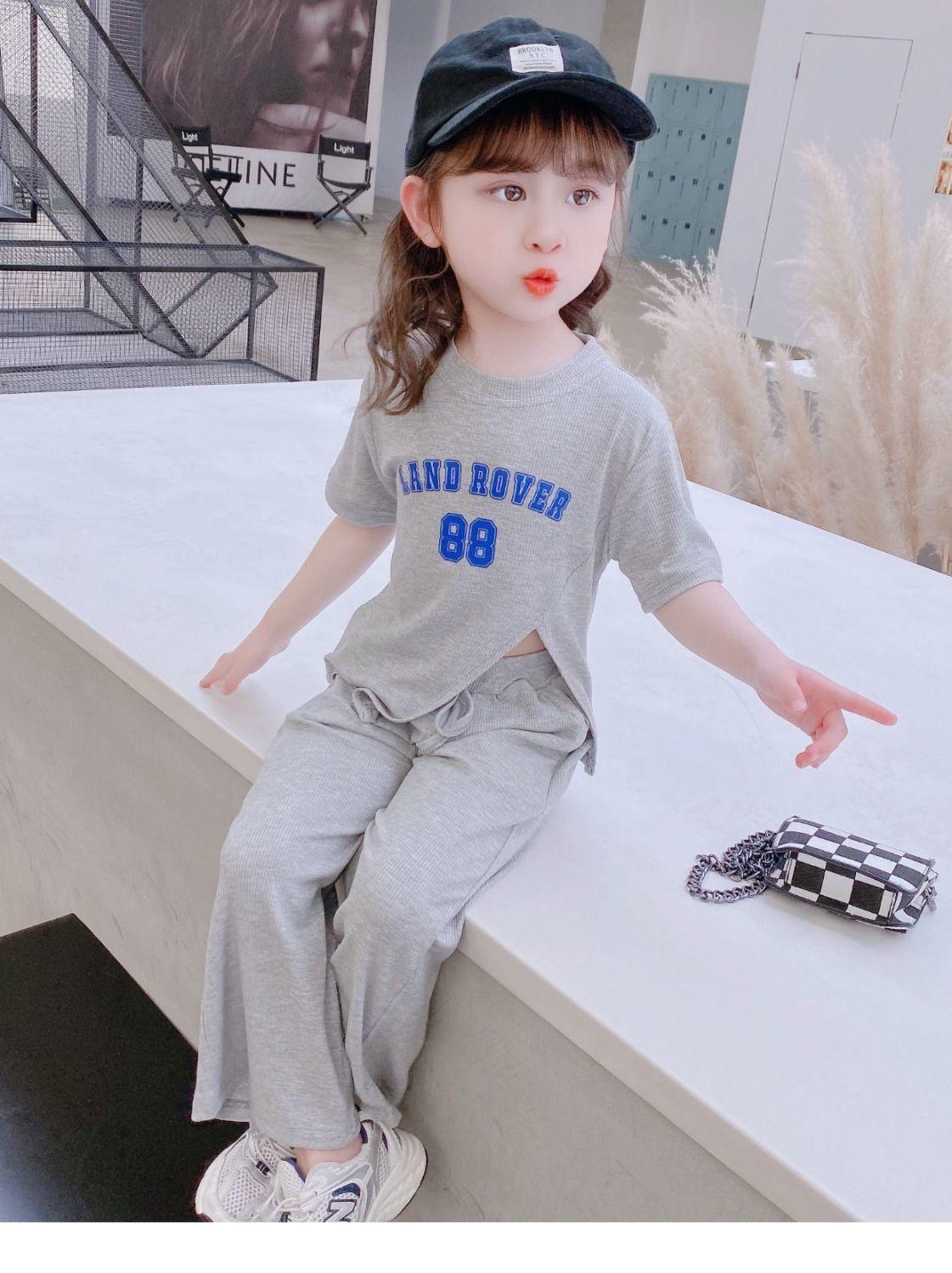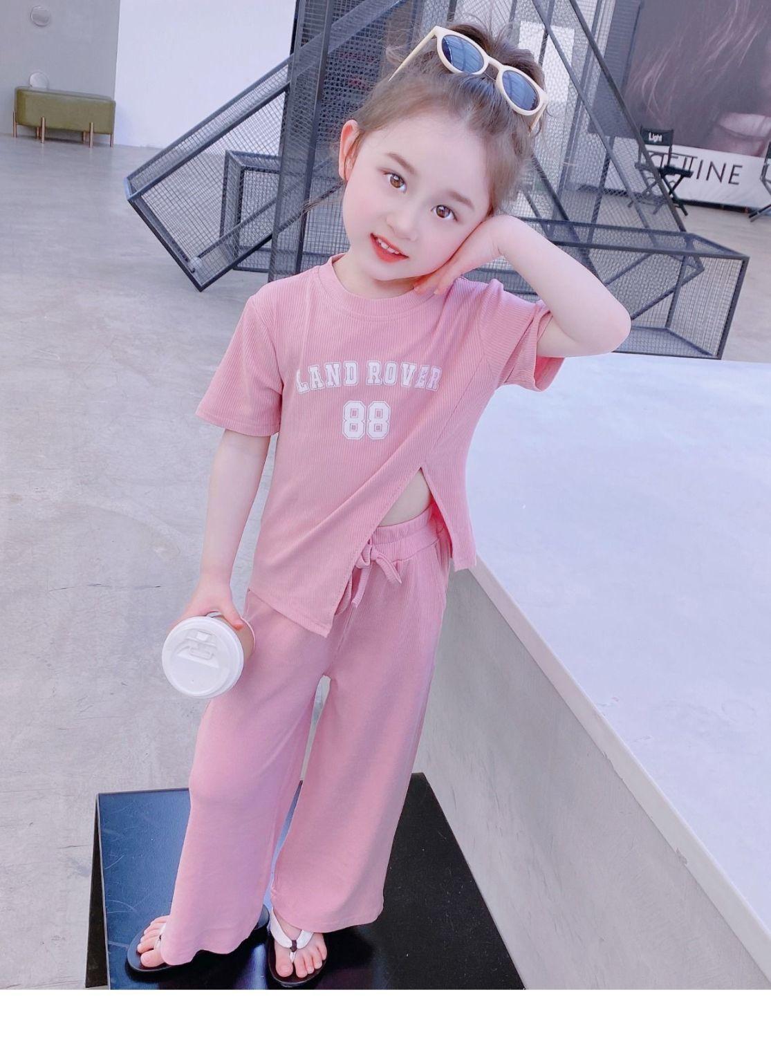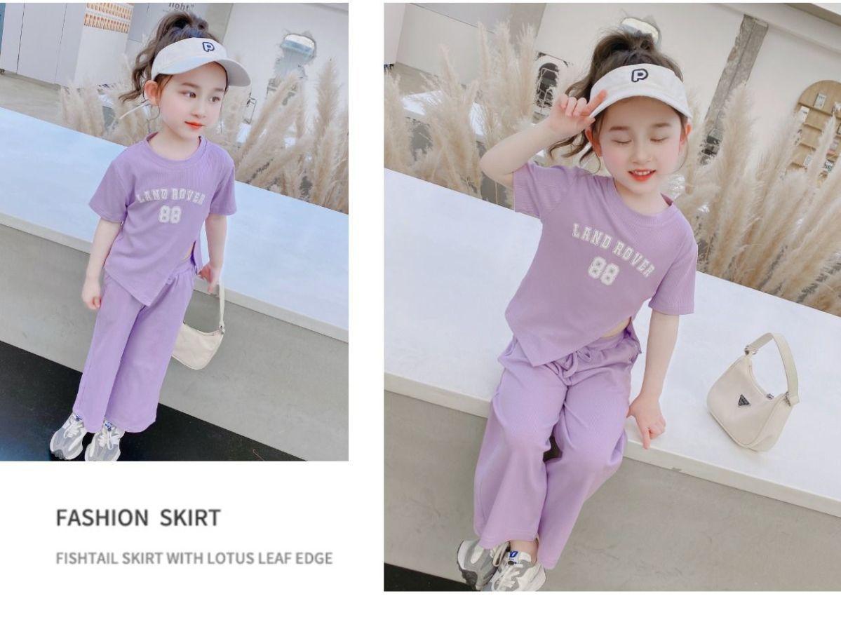 Ropa de verano para niñas estilo coreano ropa para niños nuevo estilo camisa de manga corta estilo occidental para bebés pantalones acampanados casuales traje de dos piezas moderno