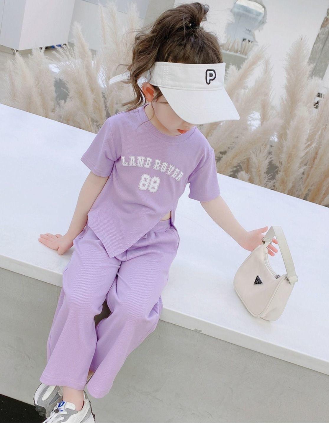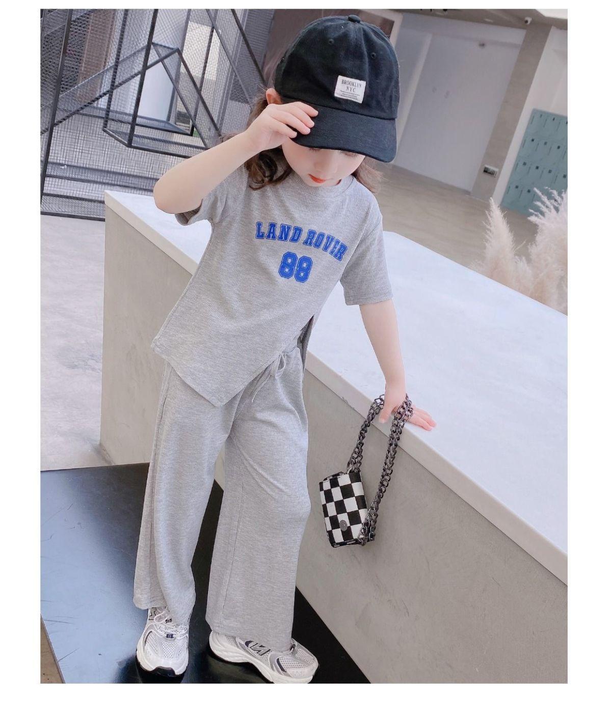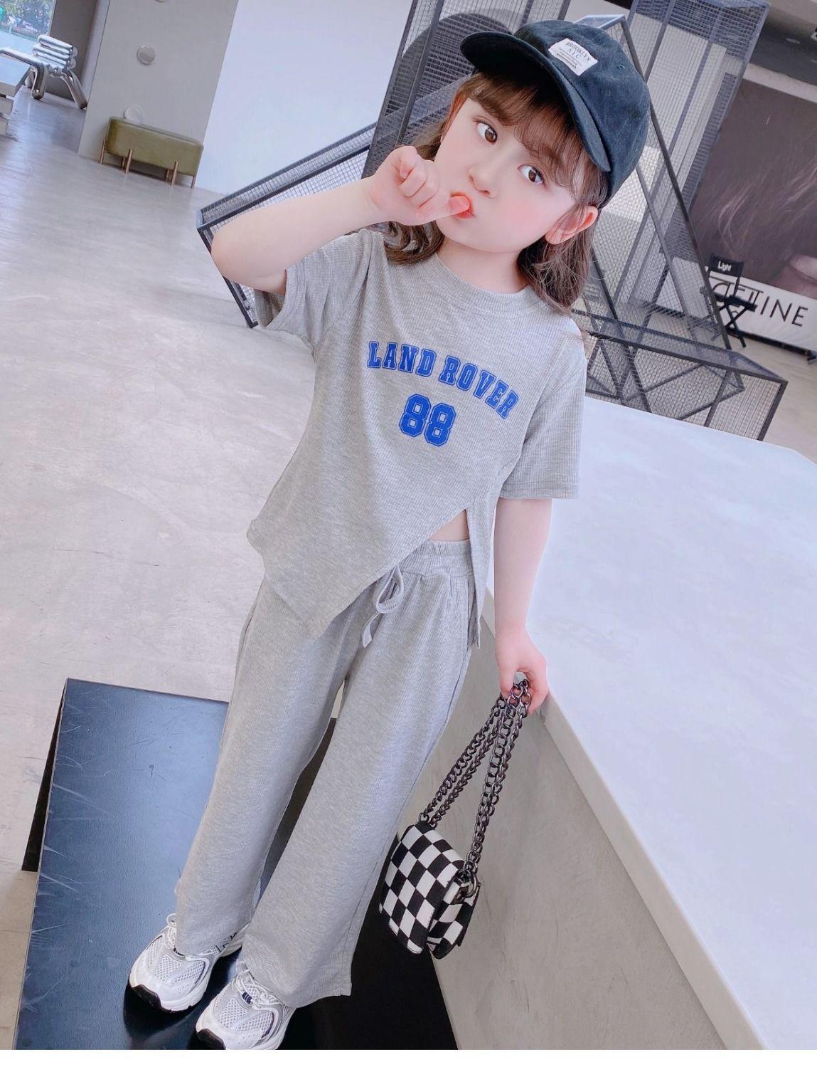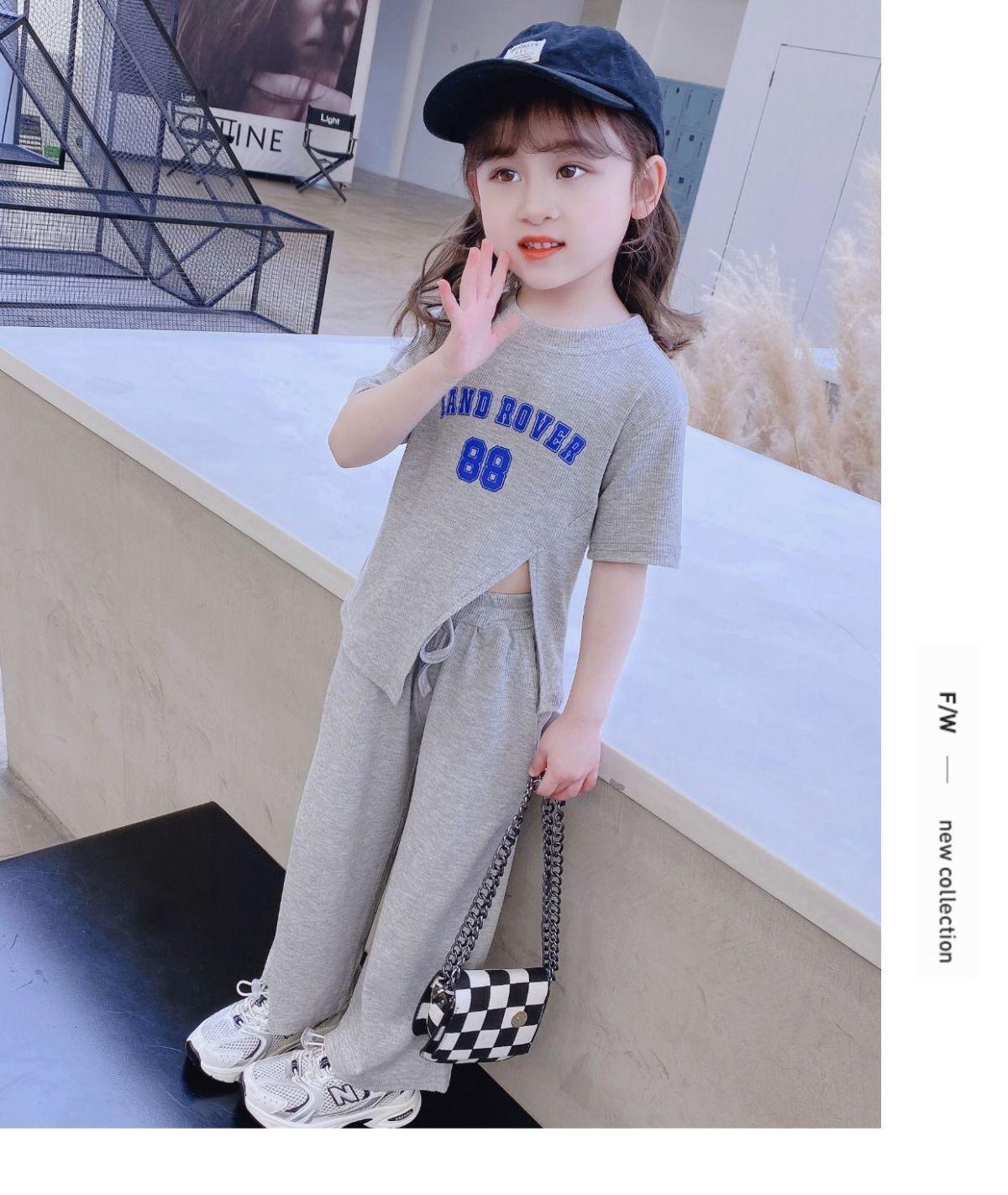 Ropa de verano para niñas estilo coreano ropa para niños nuevo estilo camisa de manga corta estilo occidental para bebés pantalones acampanados casuales traje de dos piezas moderno