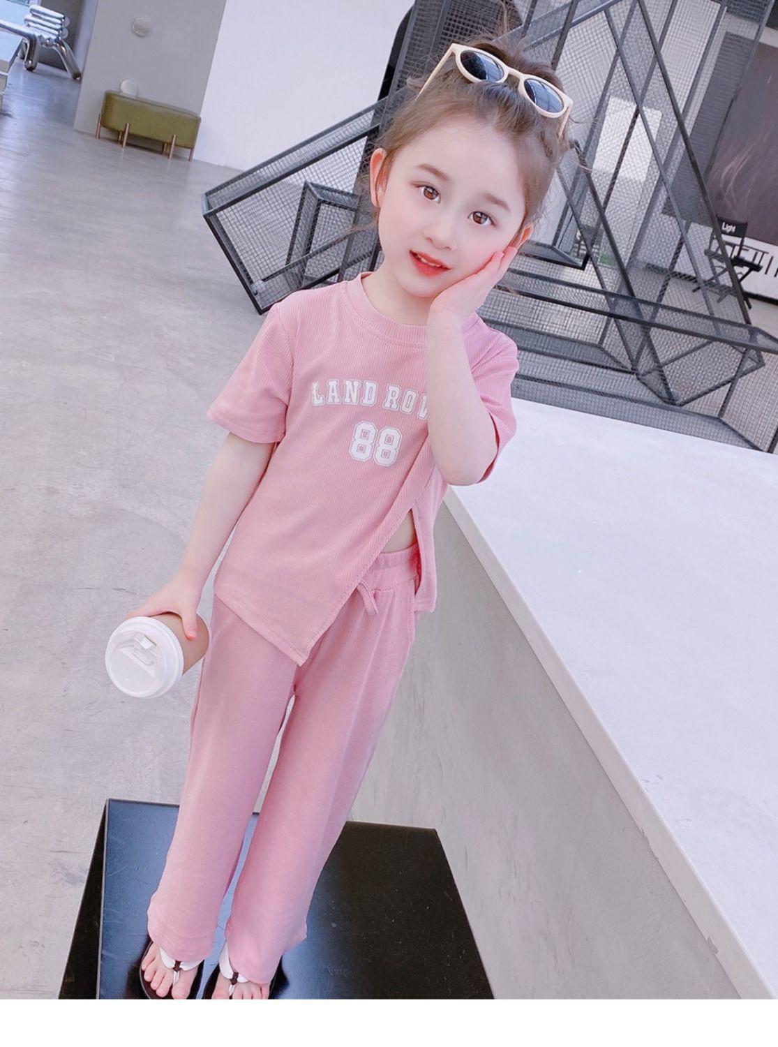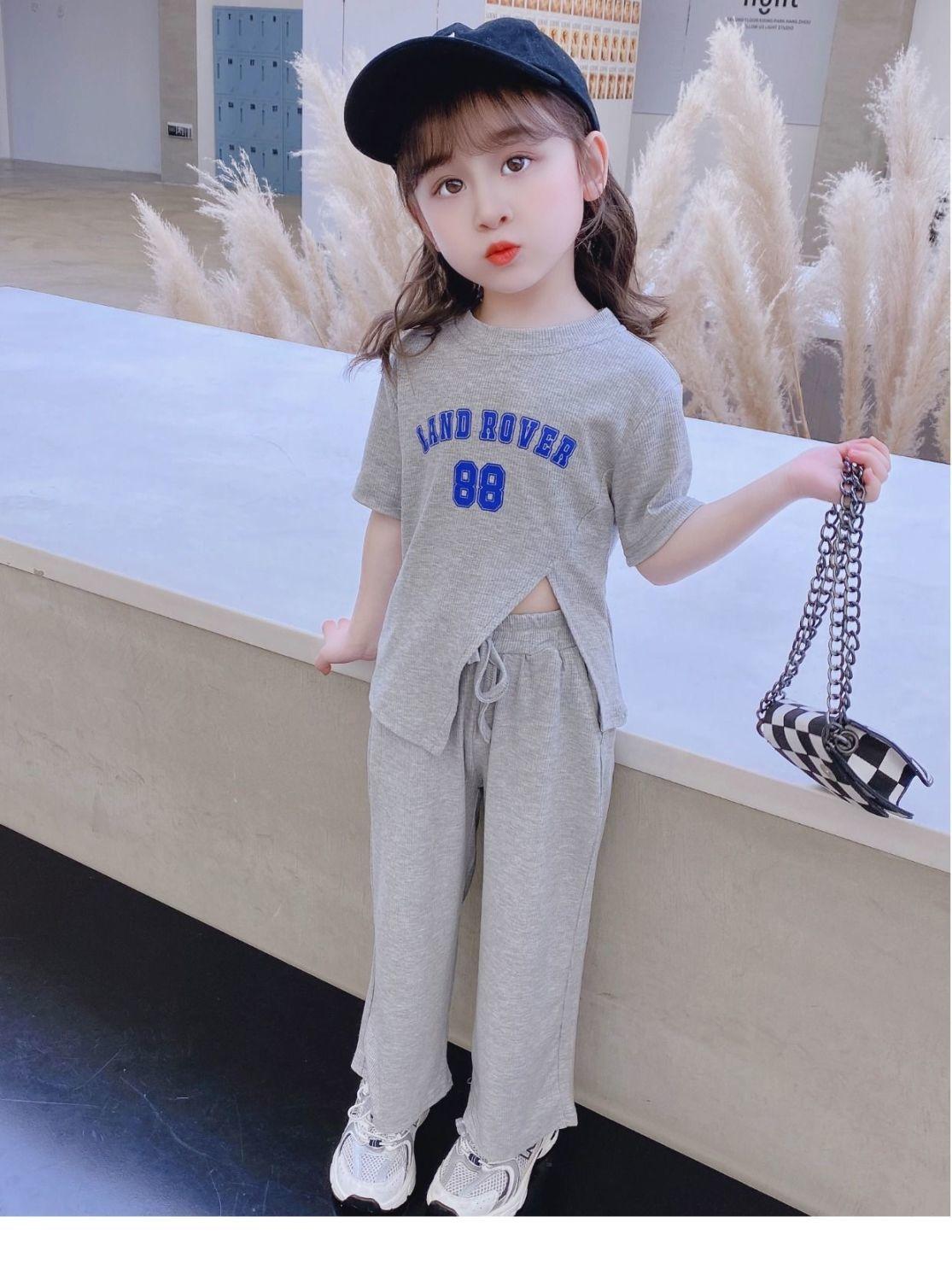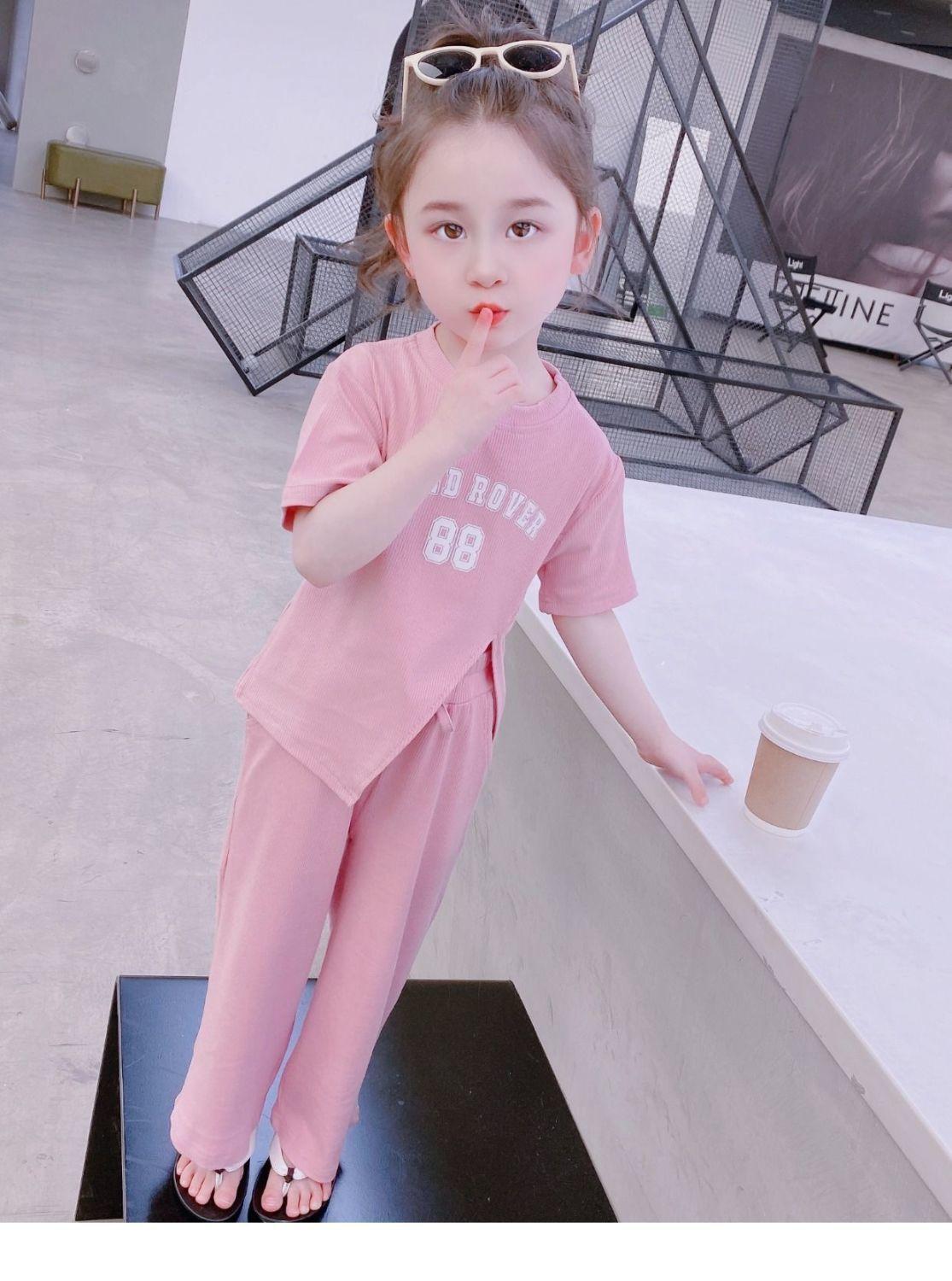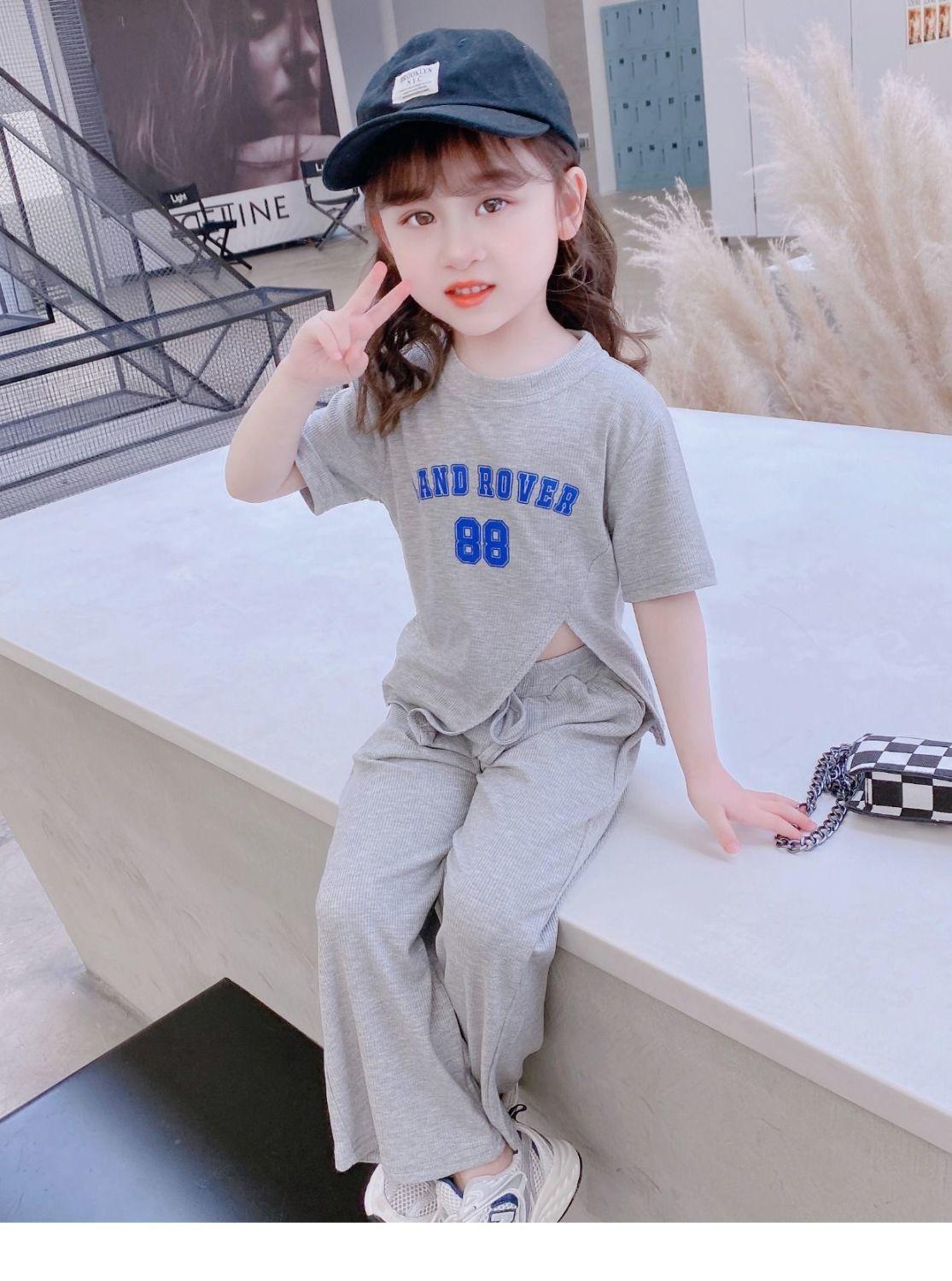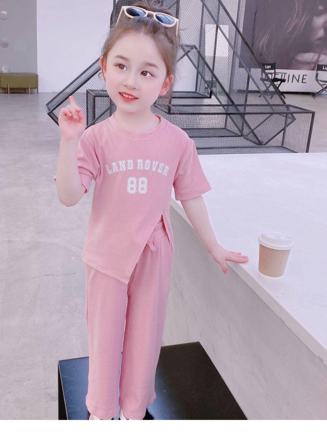 Ropa de verano para niñas estilo coreano ropa para niños nuevo estilo camisa de manga corta estilo occidental para bebés pantalones acampanados casuales traje de dos piezas moderno