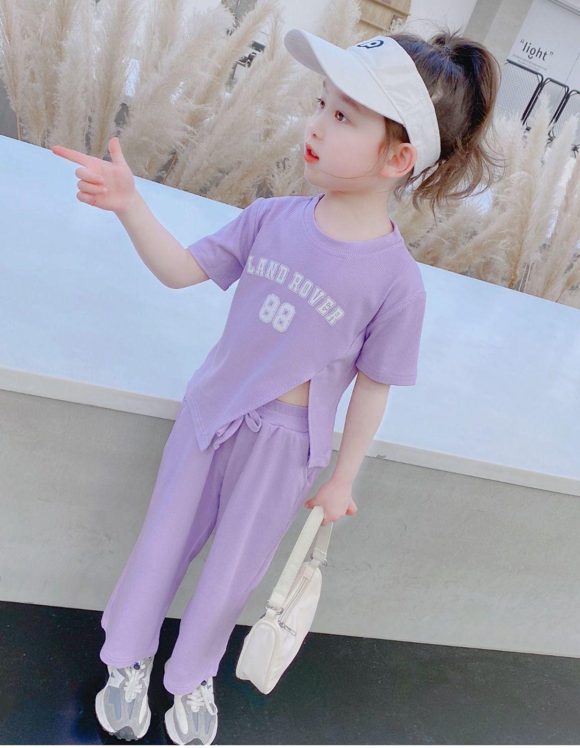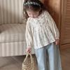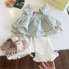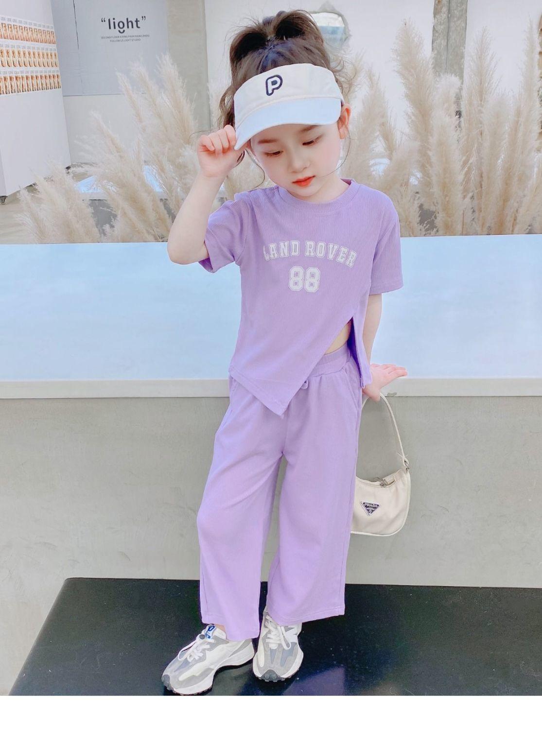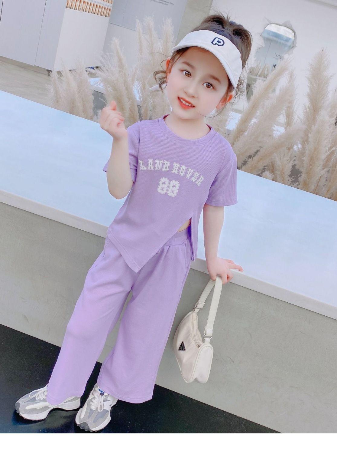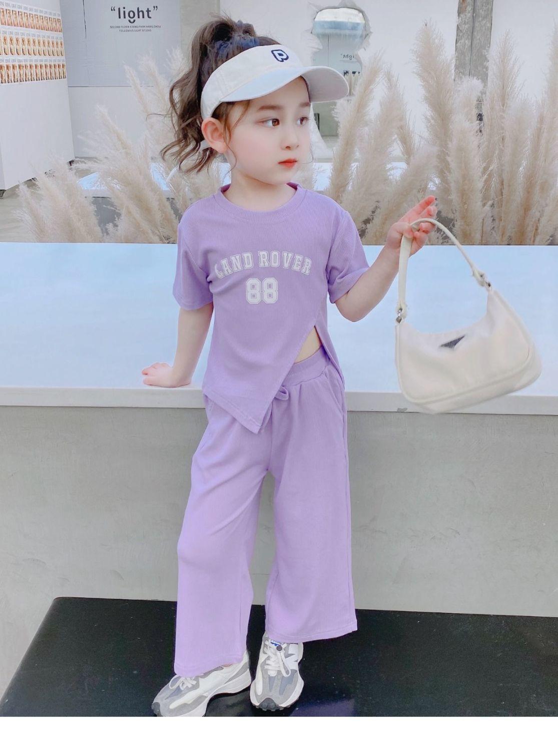 Ropa de verano para niñas estilo coreano ropa para niños nuevo estilo camisa de manga corta estilo occidental para bebés pantalones acampanados casuales traje de dos piezas moderno