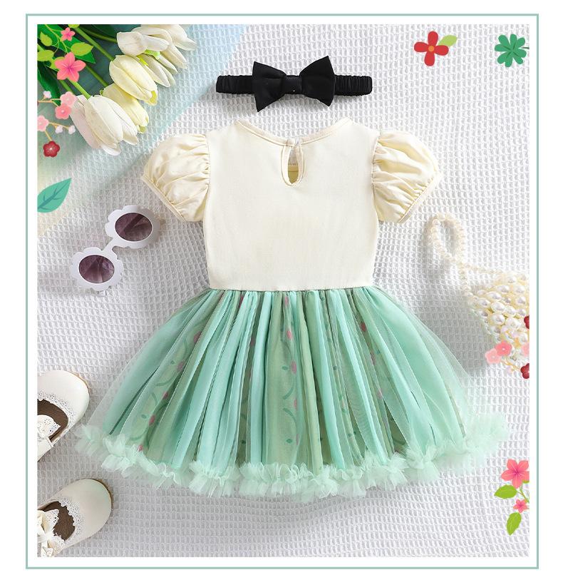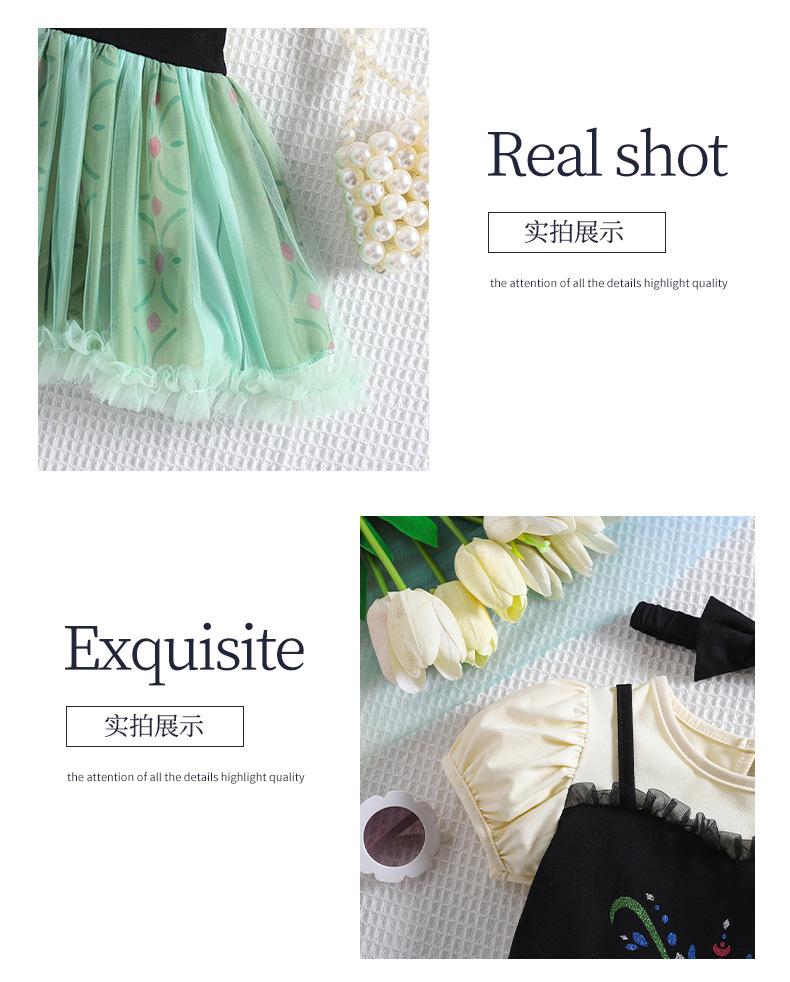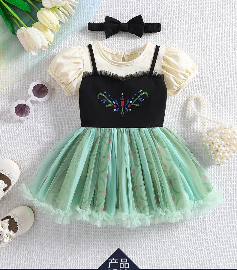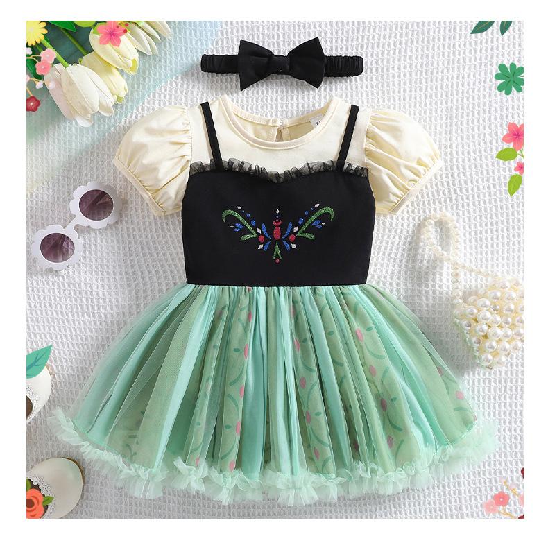 Vestido de Princesa Anna Congelada de Comercio Exterior Europeo y Americano para Niñas, Estilo Dulce y Cool, Falda Abullonada con Traje para Gatear de Entrepierna Abierta