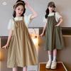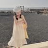 Vestido de Tirantes para Niñas Verano 2025 Nuevo Estilo Niños Medianos y Grandes Niña Francesa Falda Larga Vestido de Verano Vestido de Vacaciones en la Playa