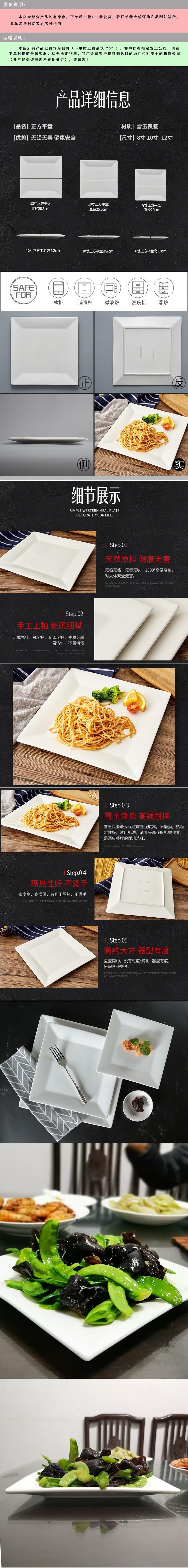 Plato de Restaurante Occidental al por Mayor Plato para Bistec Plato de Forma Especial Plato para Hotel Plato para Buffet Cerámica Blanca Pura Cuadrado Plano