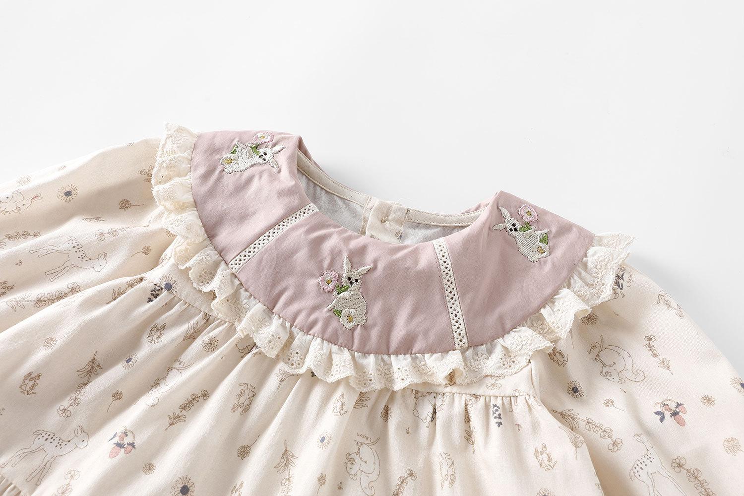 Vestido de Conejita para Niñas 2025 Nuevo Otoño Estilo Bebé Falda de Dibujos Animados Completa Vestido de Princesa Coreano para Niños