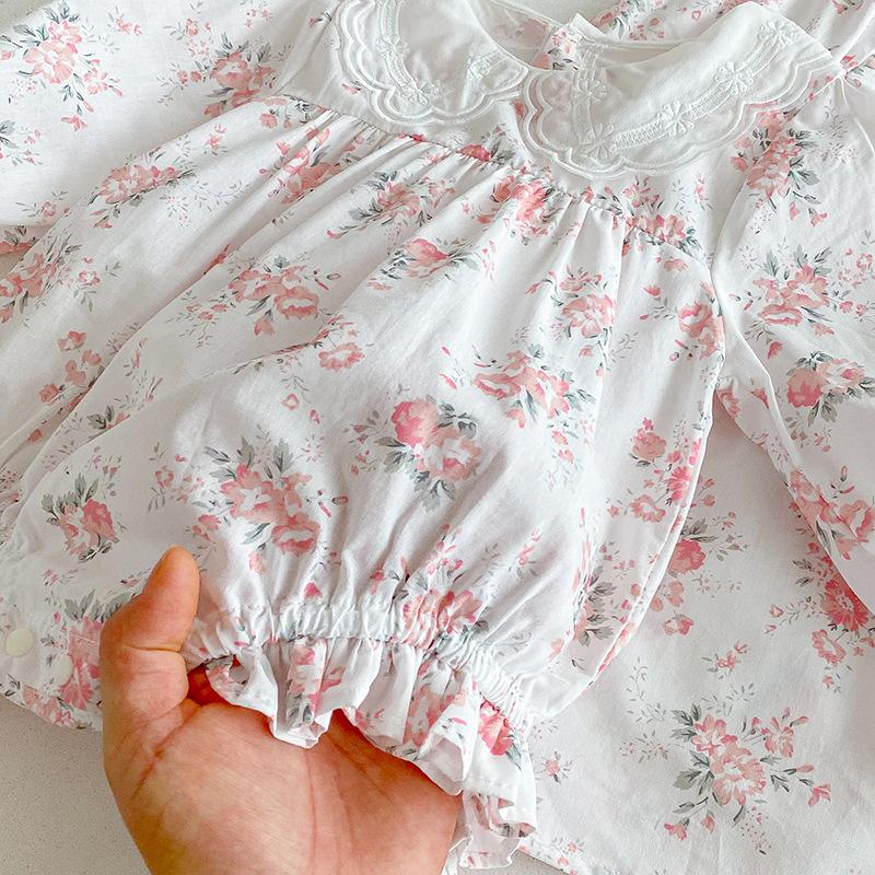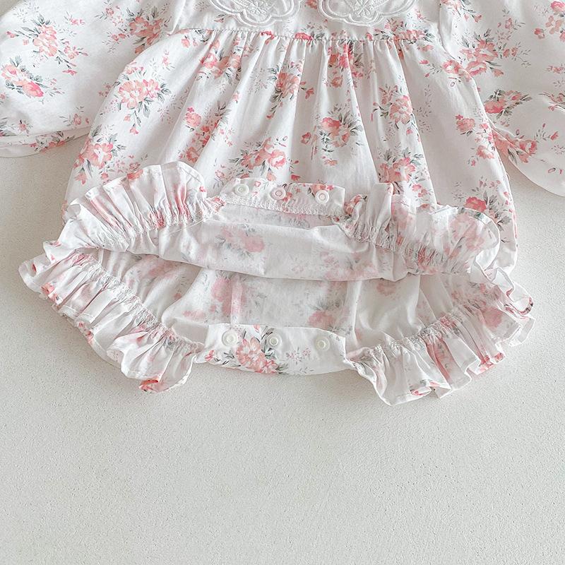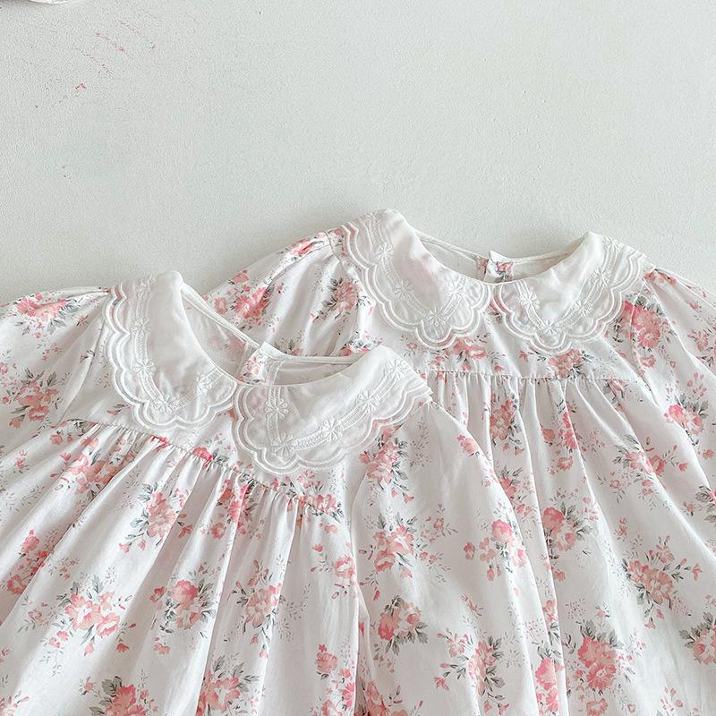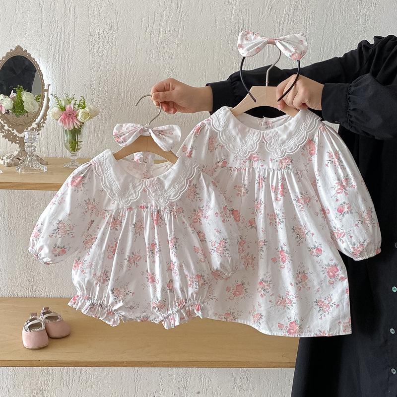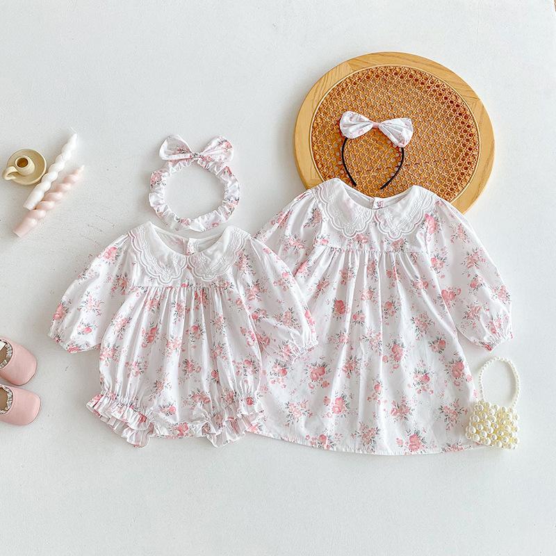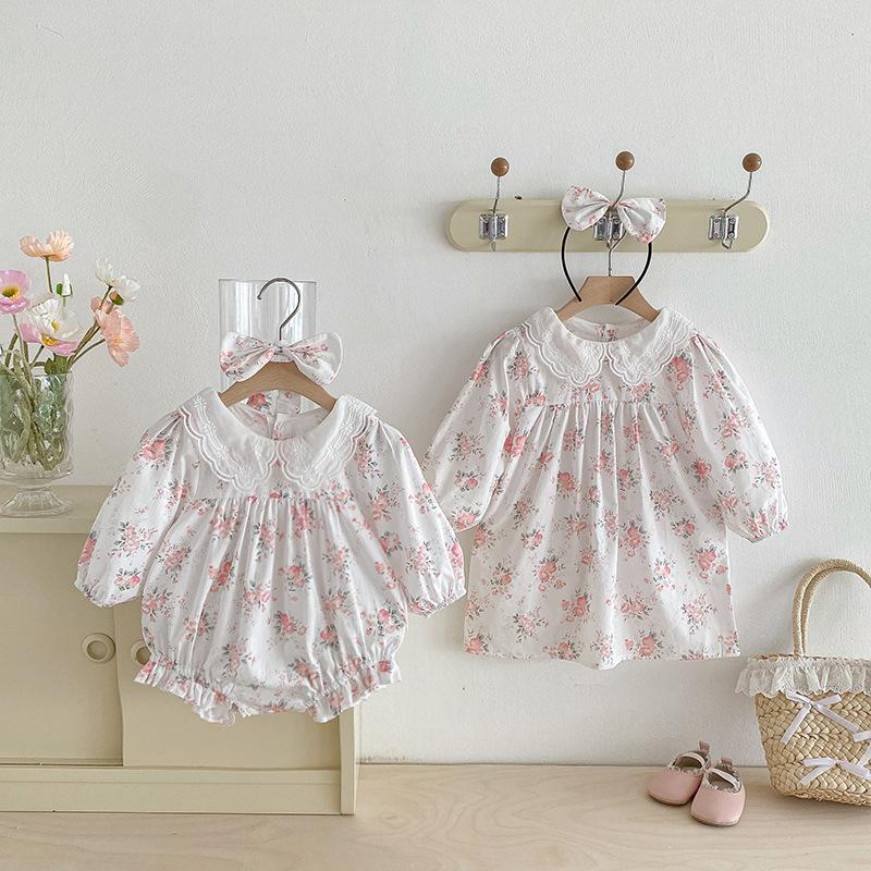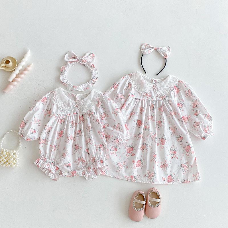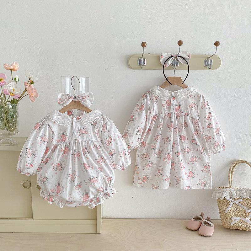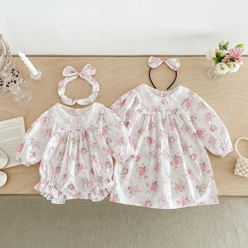 25 Ropa de Otoño para Bebé para Niñas: Mameluco Floral, Nuevo Vestido de Manga Larga con Cuello de Muñeca, Atuendo de Hermana Princesa