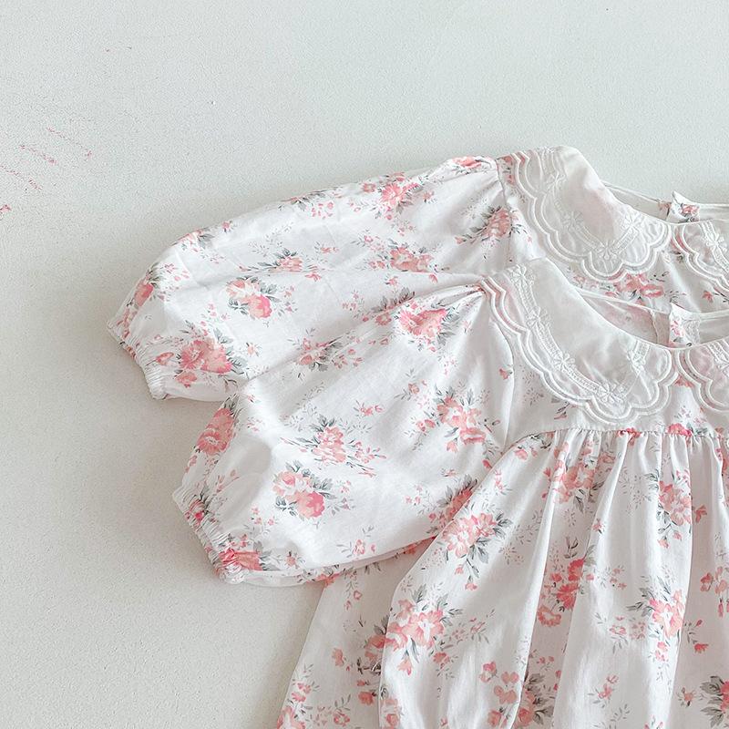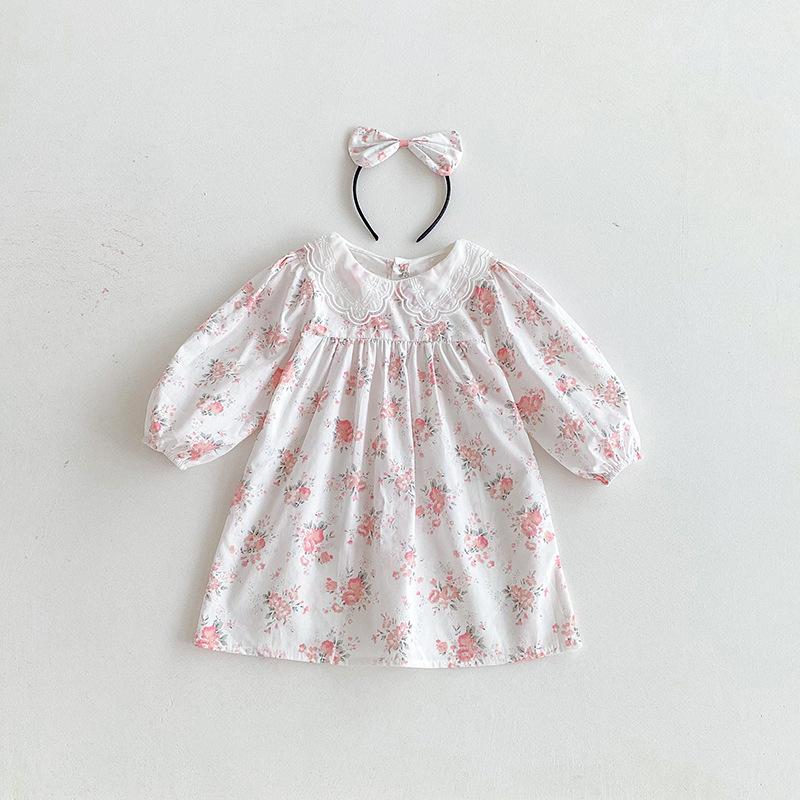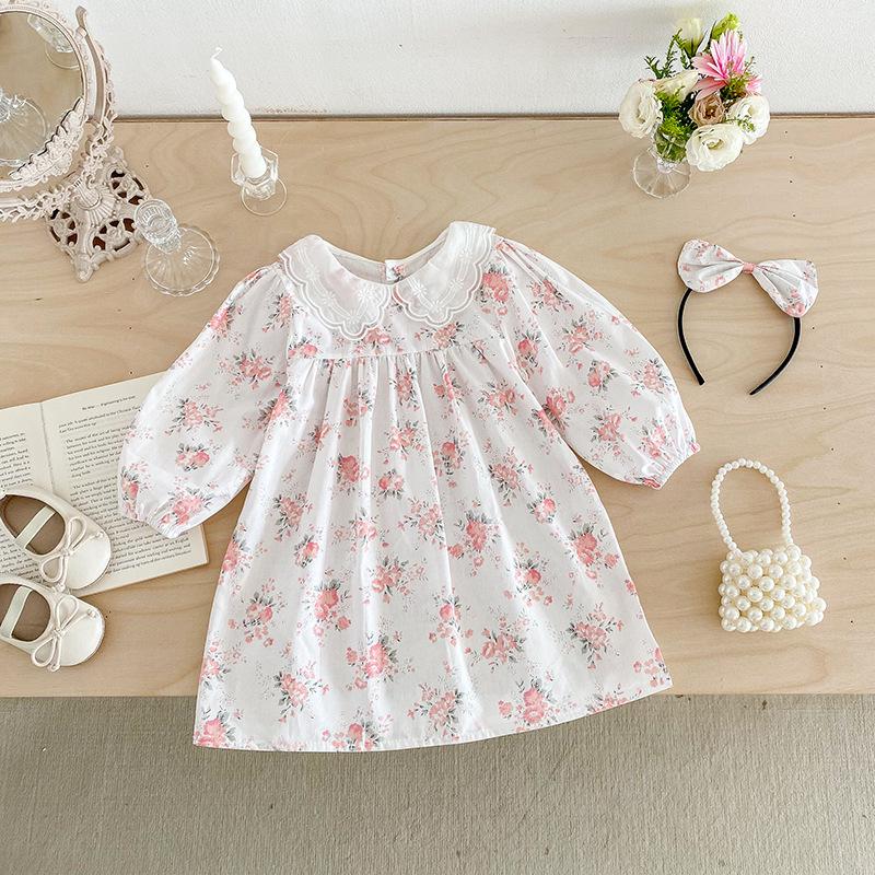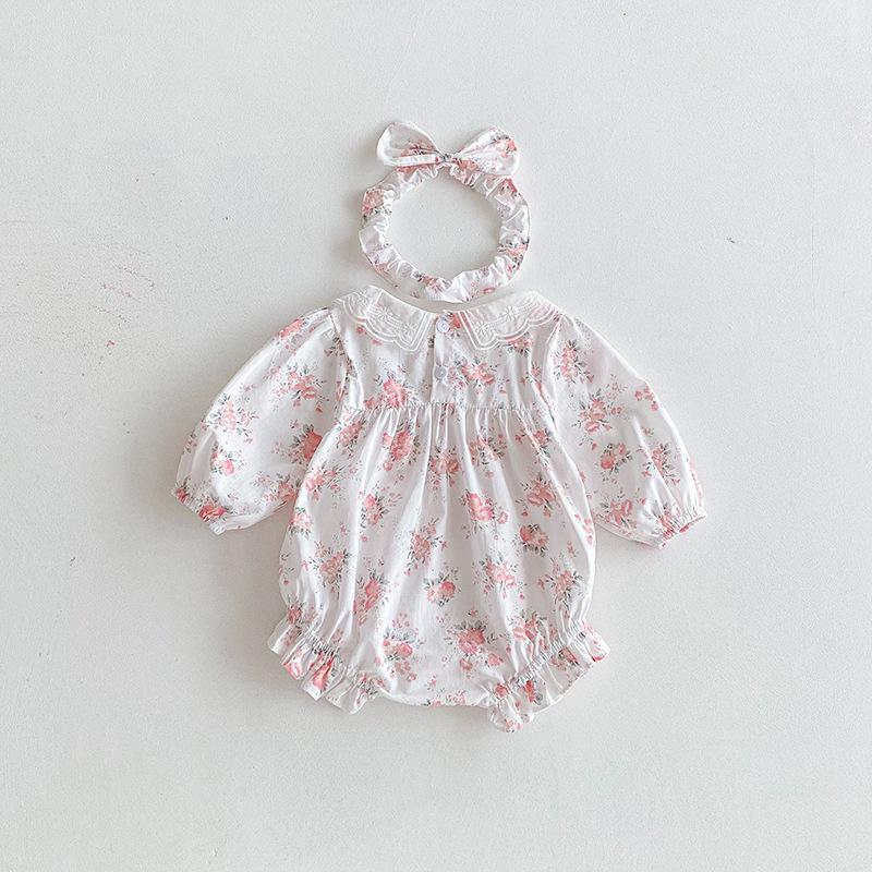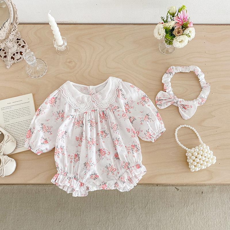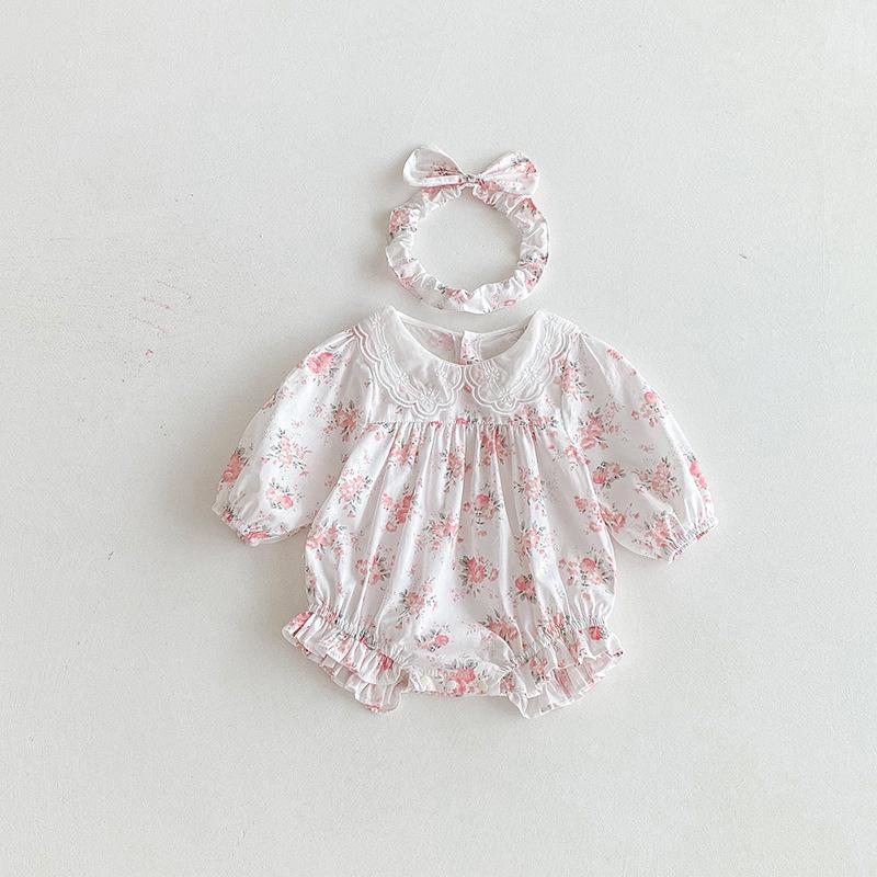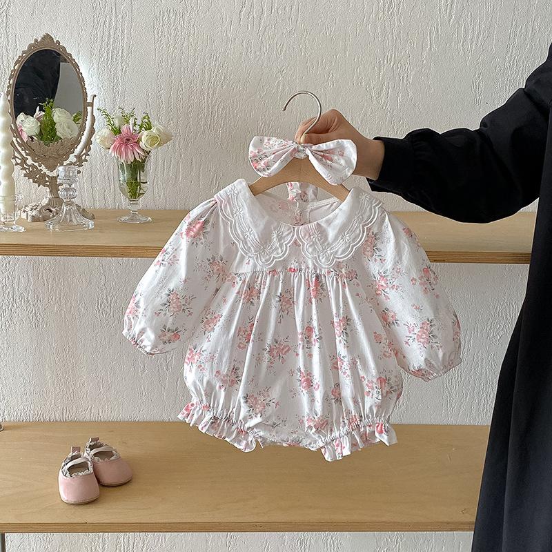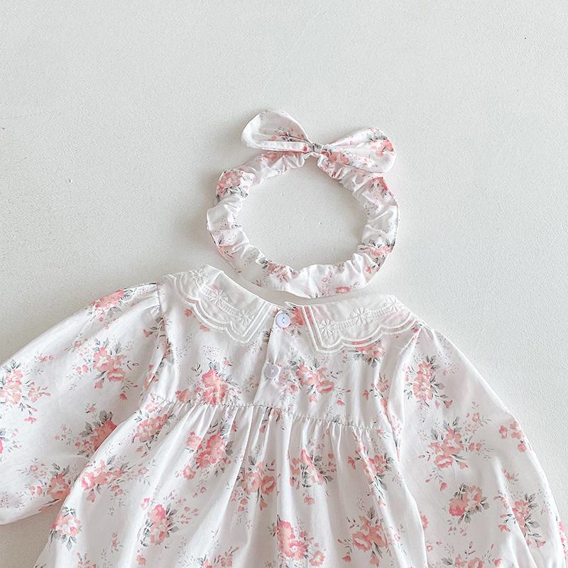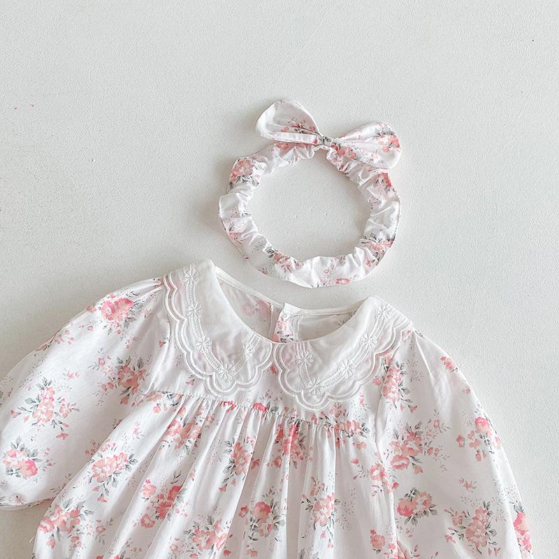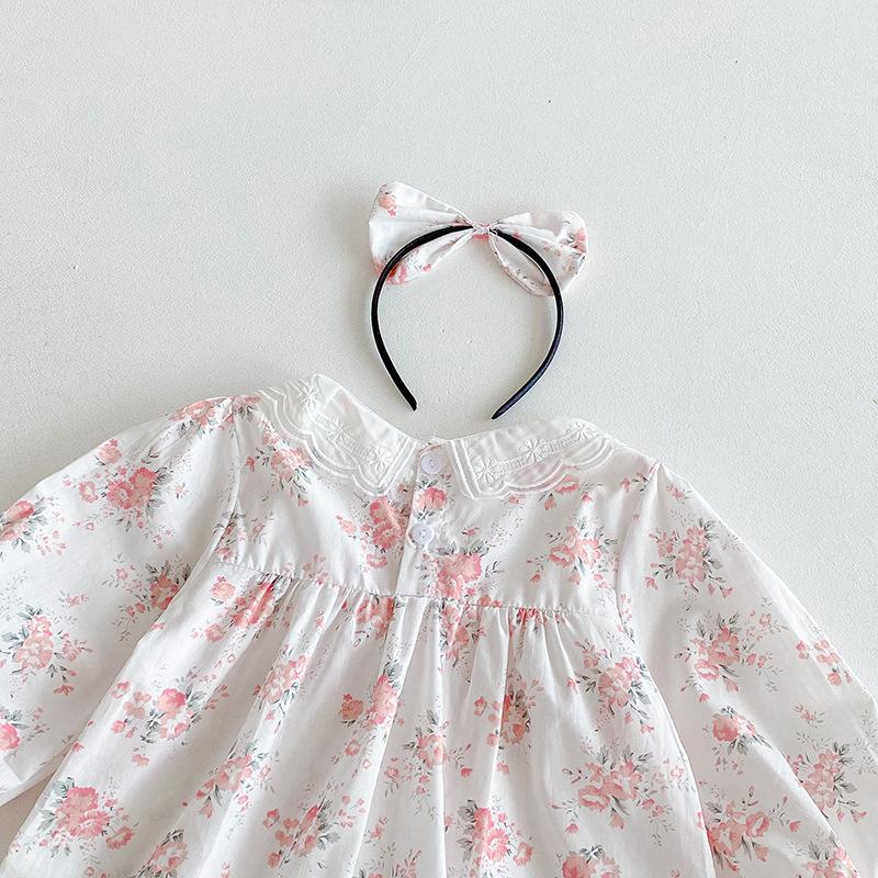 25 Ropa de Otoño para Bebé para Niñas: Mameluco Floral, Nuevo Vestido de Manga Larga con Cuello de Muñeca, Atuendo de Hermana Princesa