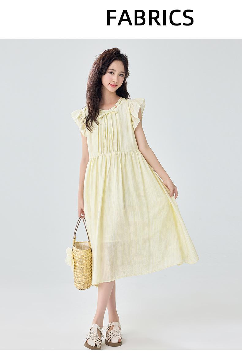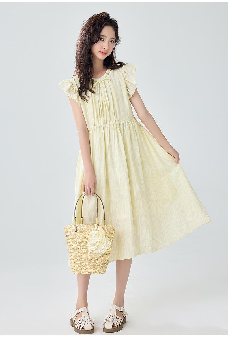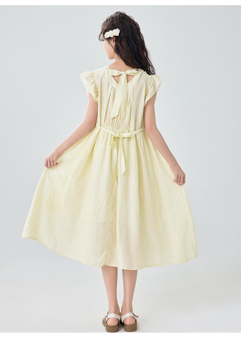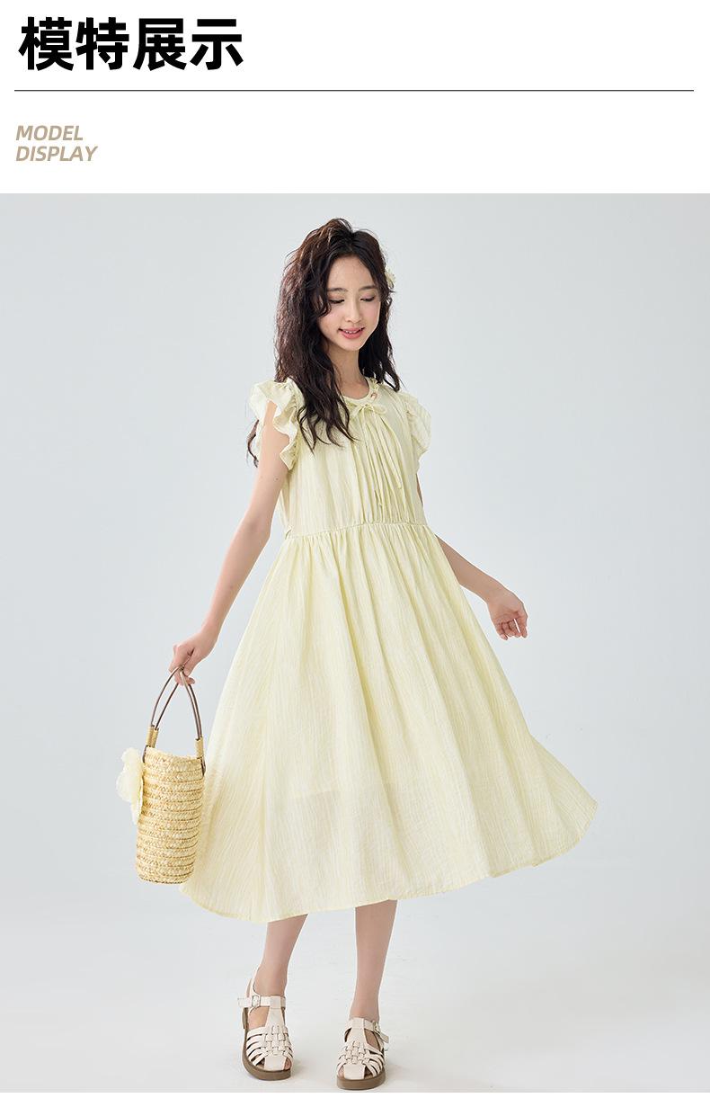 Vestido de manga corta con vuelo para niñas Verano 2025 Nuevo Vestido de hada único y hermoso para niñas de secundaria Vestido para niñas grandes