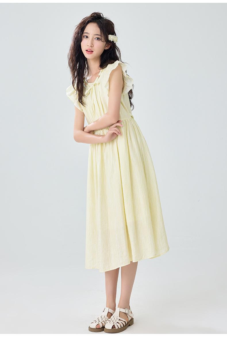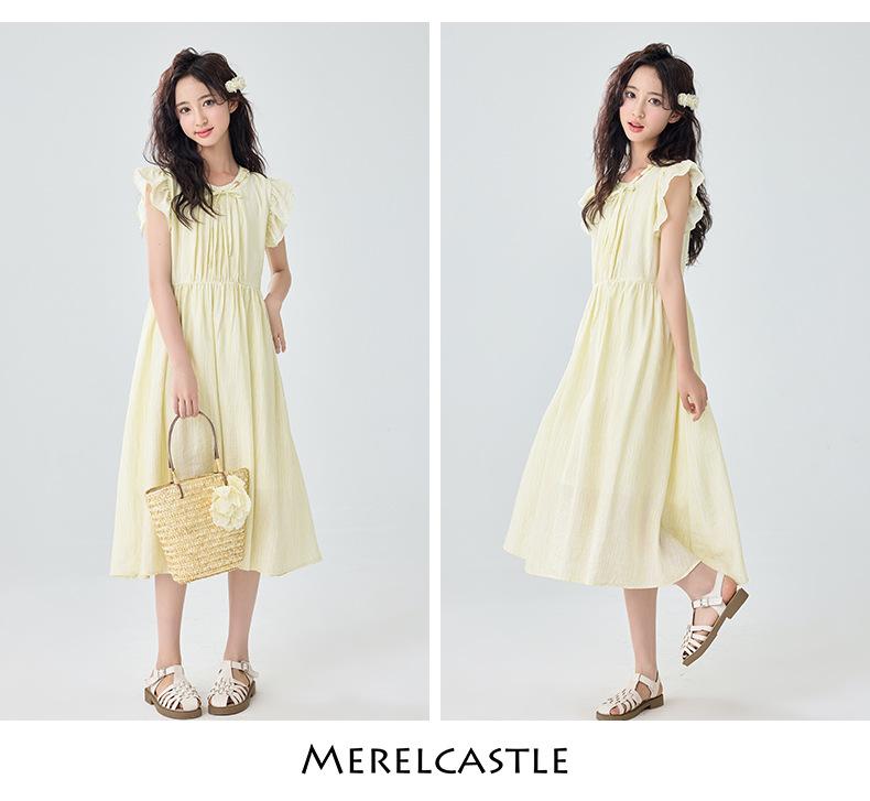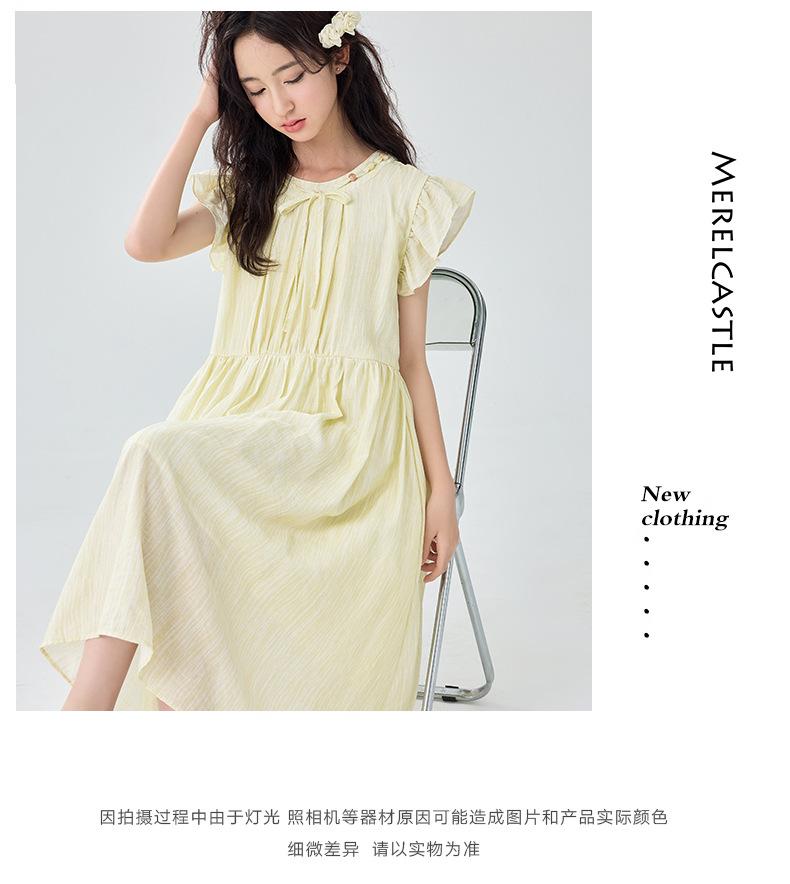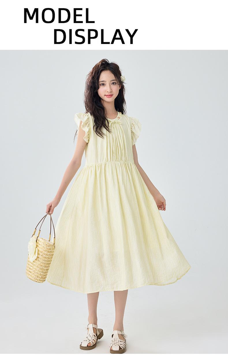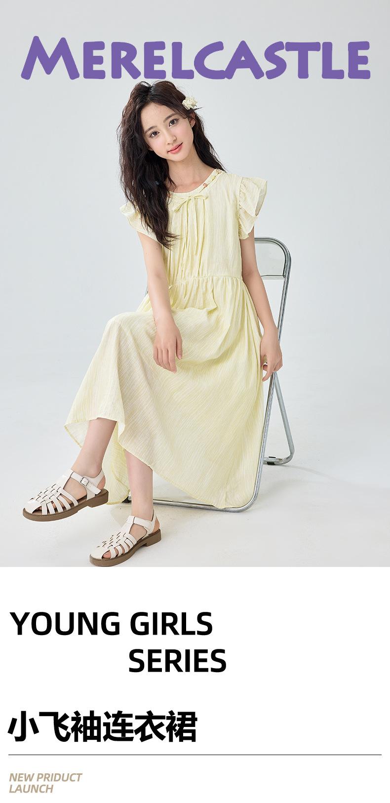 Vestido de manga corta con vuelo para niñas Verano 2025 Nuevo Vestido de hada único y hermoso para niñas de secundaria Vestido para niñas grandes
