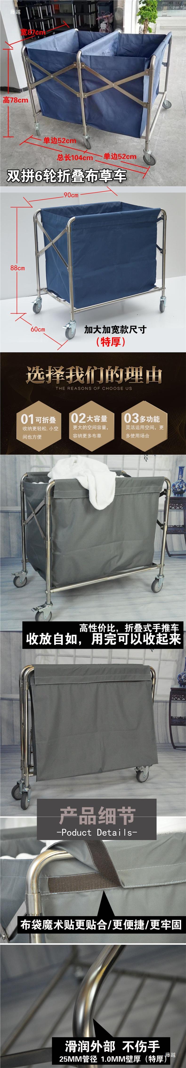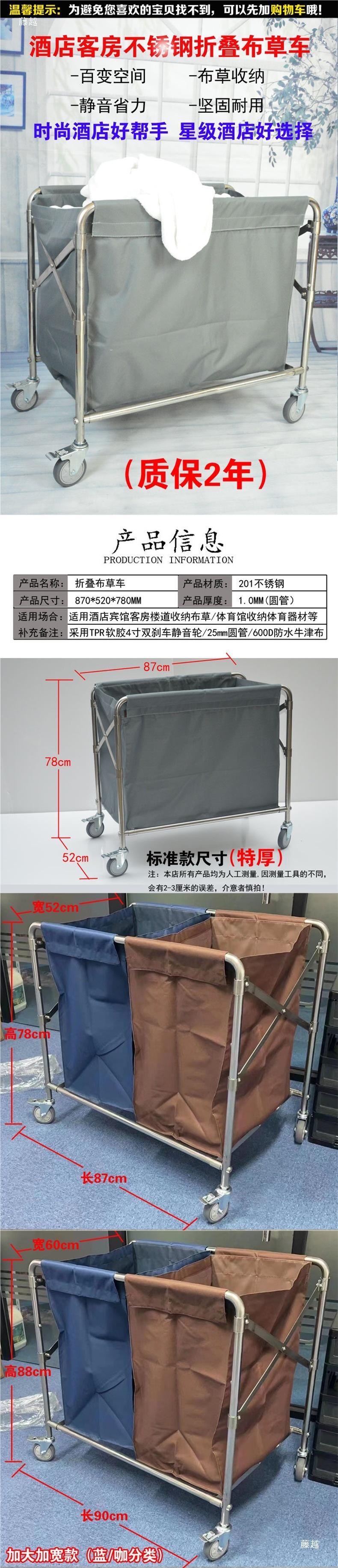 Carro de tela plegable de acero inoxidable para recogida de coches, limpieza de caravanas, hoteles, servicio de habitaciones de hotel, coches de trabajo