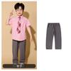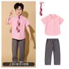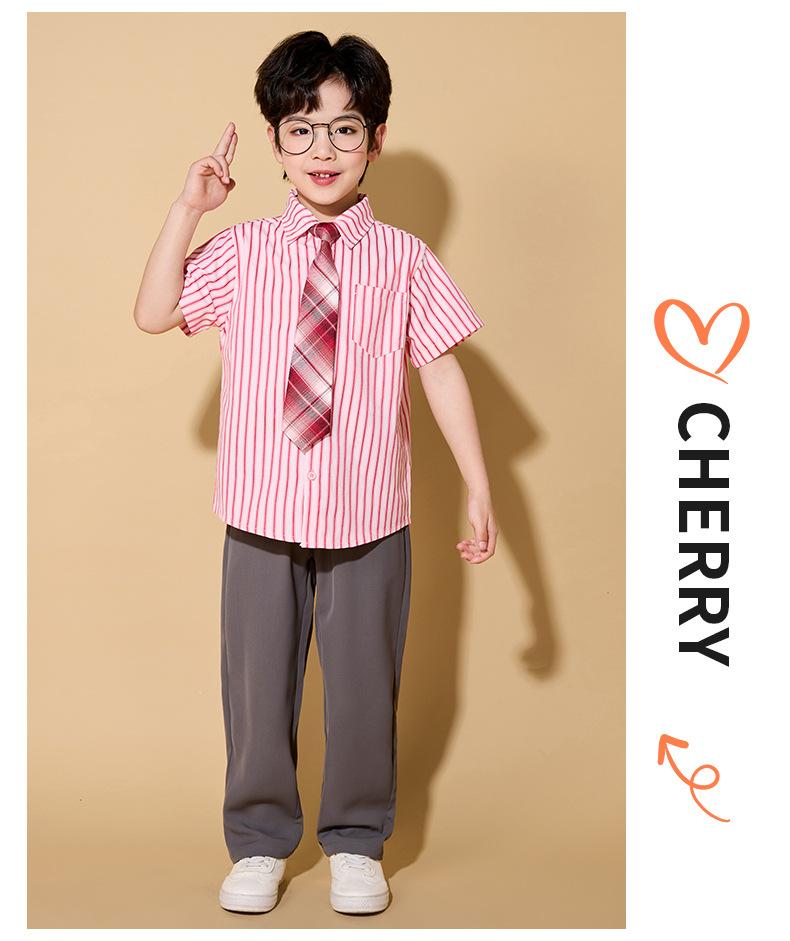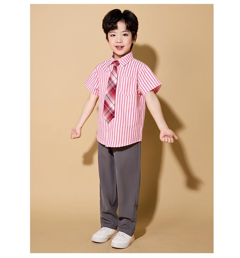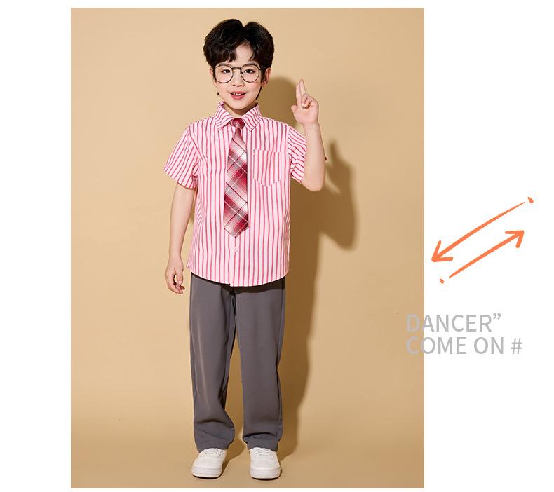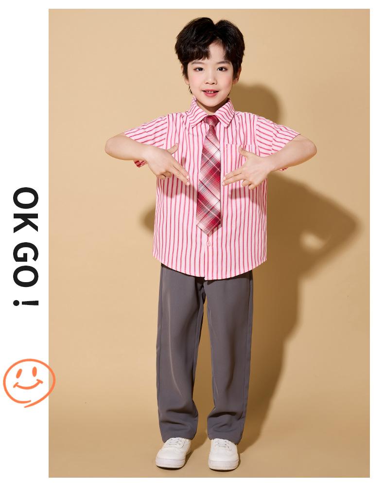 A23 rose red striped shirt + b10 gray trousers + color matching burgundy plaid tie, A23 rose red striped shirt...