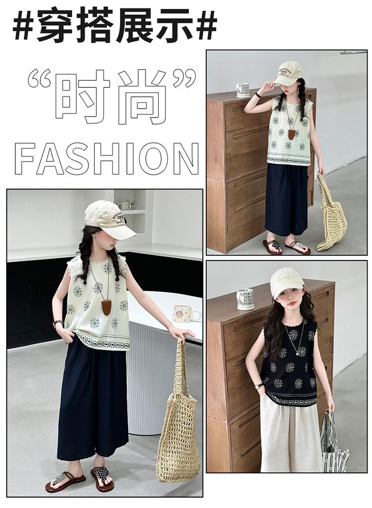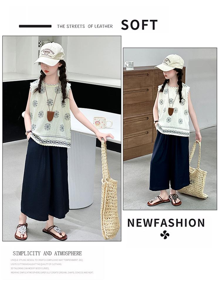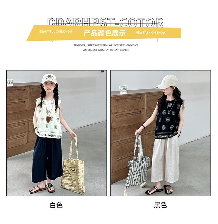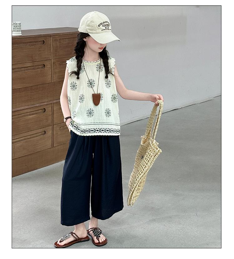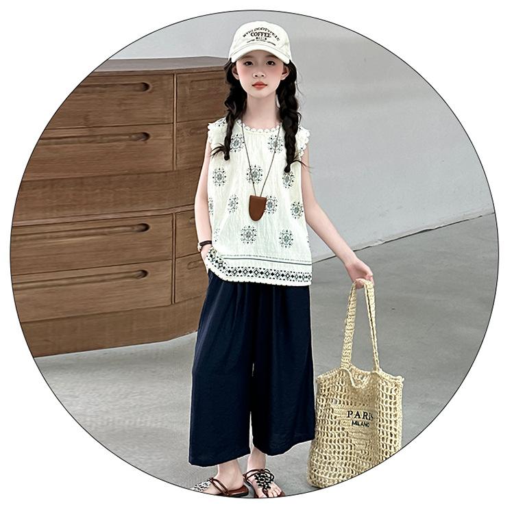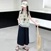 Traje de Verano sin Mangas para Niñas 2025 Nuevo Niños Grandes Verano Top Chaleco Coreano Pantalones de Pierna Ancha para Niños Conjunto de Dos Piezas