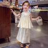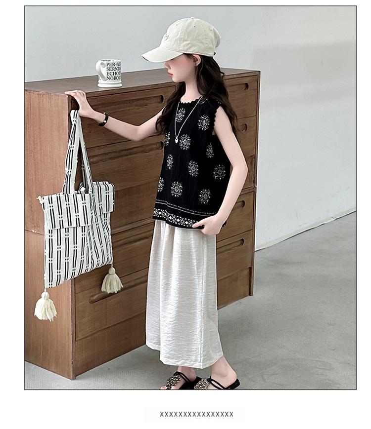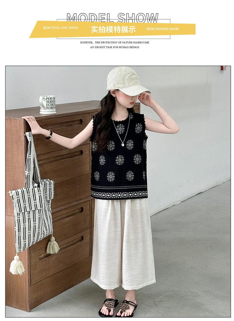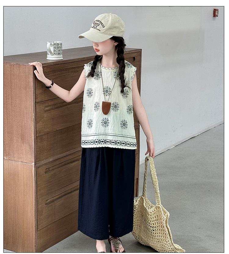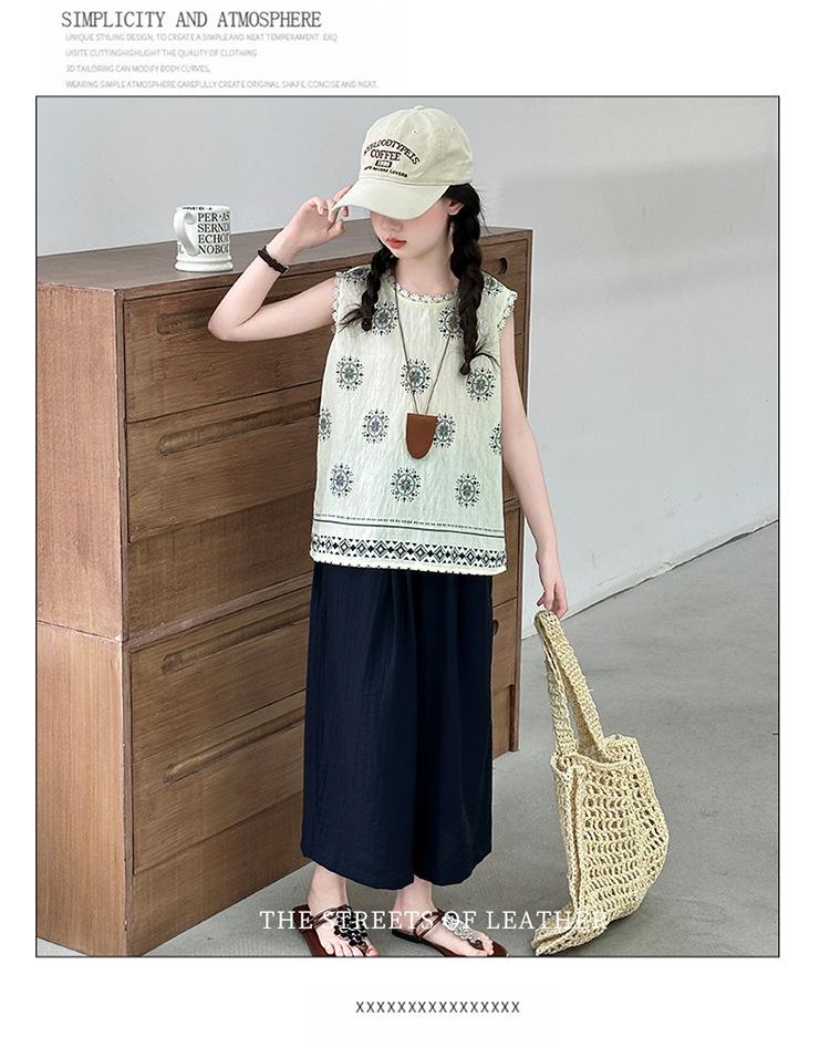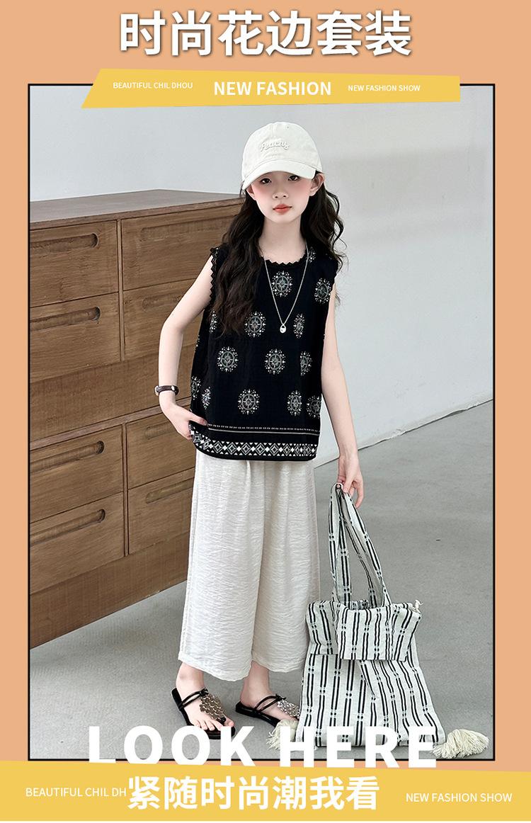 Traje de Verano sin Mangas para Niñas 2025 Nuevo Niños Grandes Verano Top Chaleco Coreano Pantalones de Pierna Ancha para Niños Conjunto de Dos Piezas