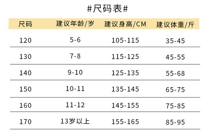 120cm, 130cm, 140cm, 150cm, 160cm, 170cm