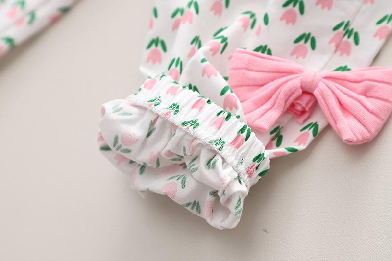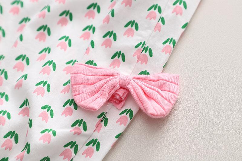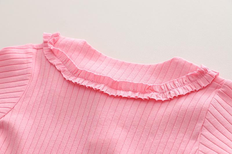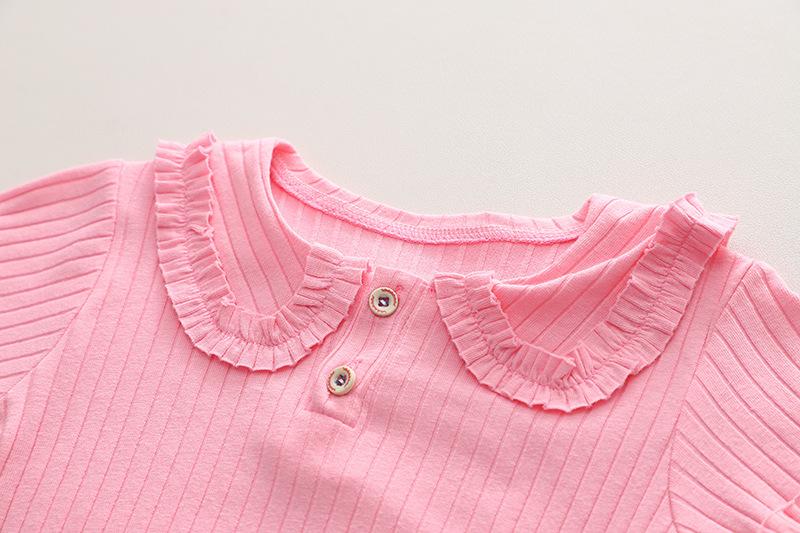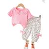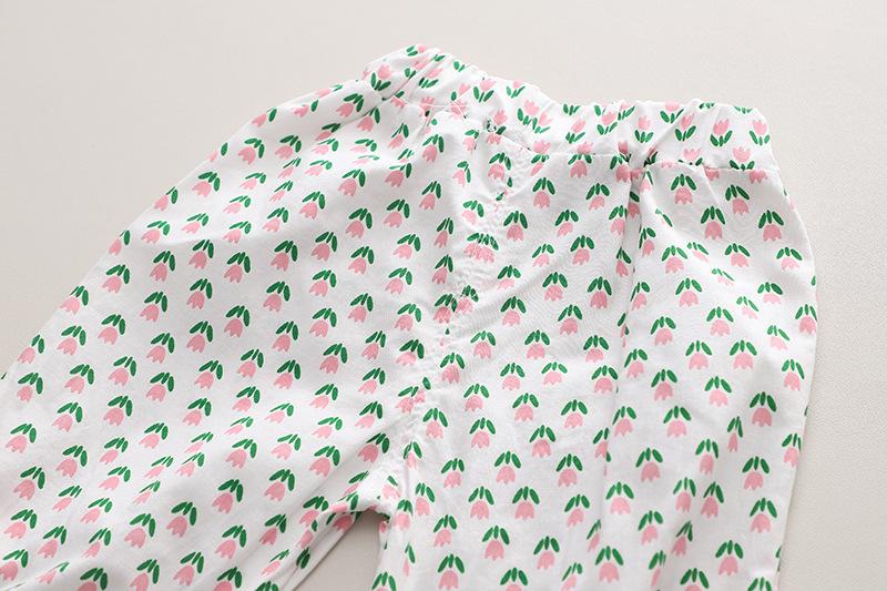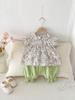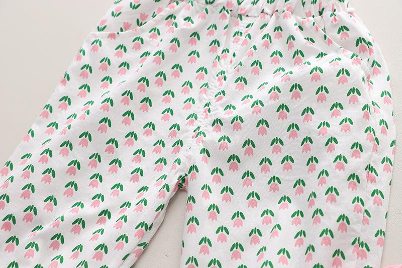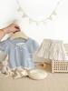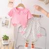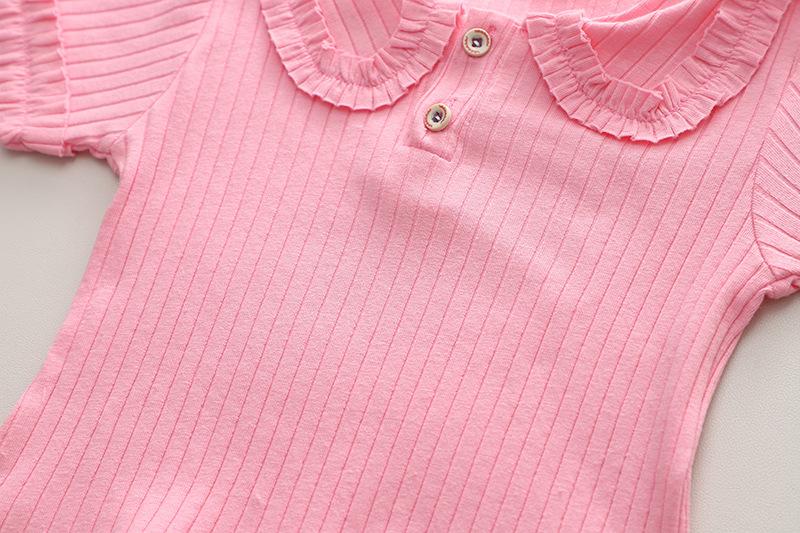 Traje de Manga Corta para Bebé Niña 2025 Verano Nuevo Estilo Niñas Estilo Coreano Color Puro Encaje Manga Corta Pantalón con Flores Pequeñas Conjunto de Dos Piezas