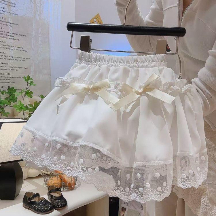 Falda Coreana de Encaje para Niñas 2025 Verano Nueva Falda Casual Estilo Occidental con Lazo para Niños a la Moda