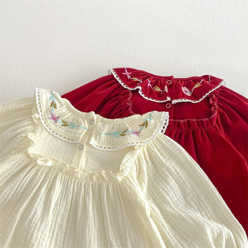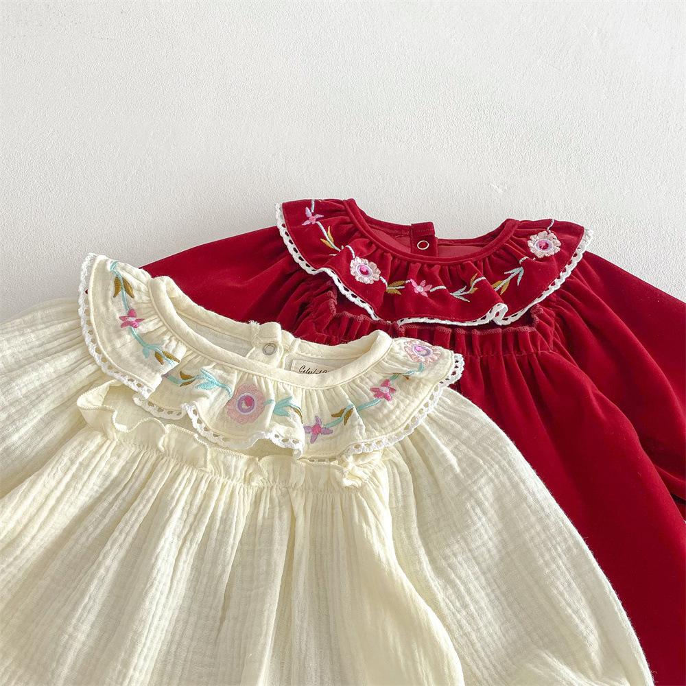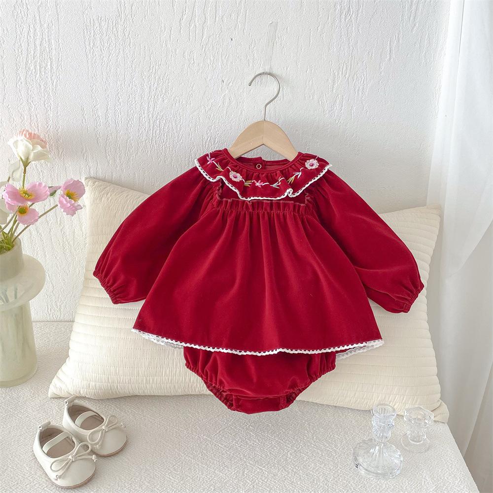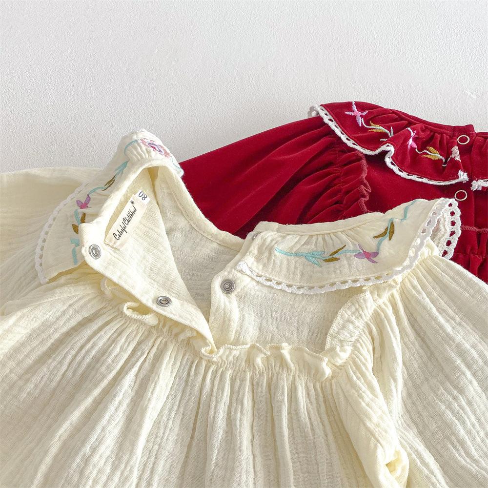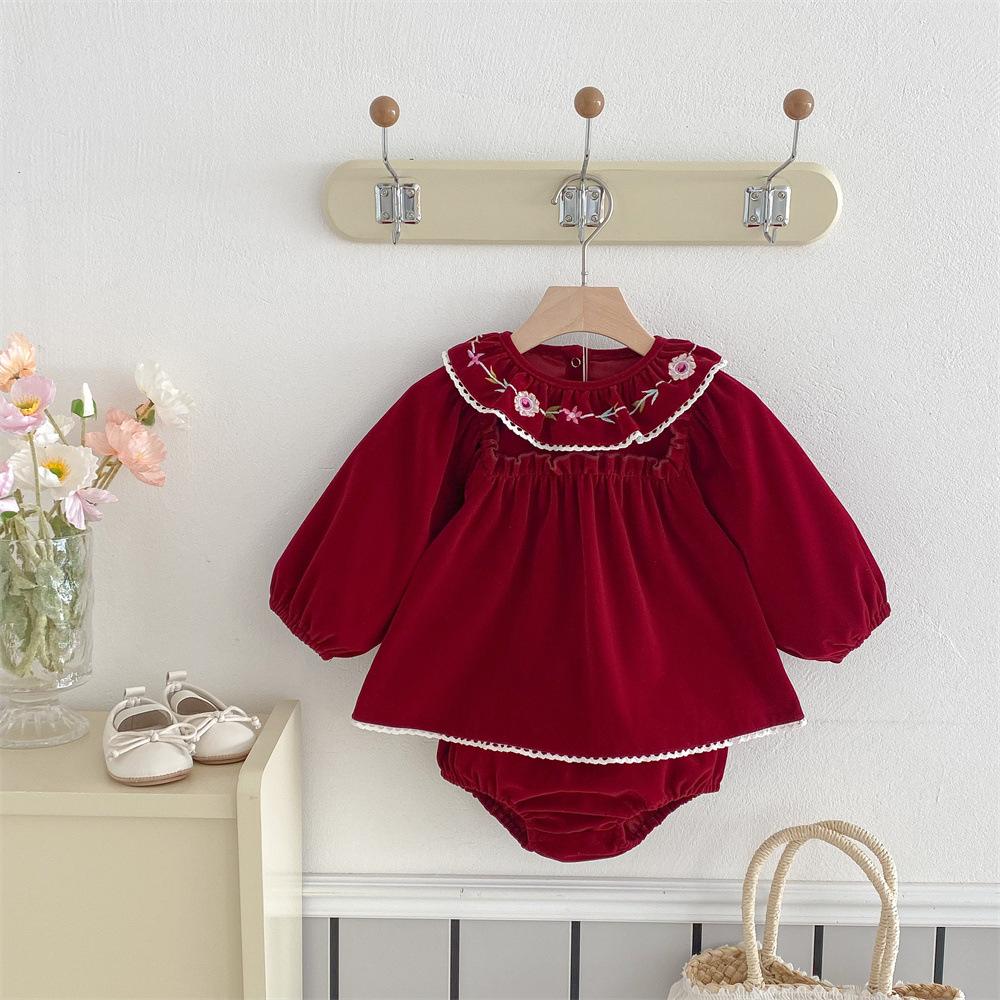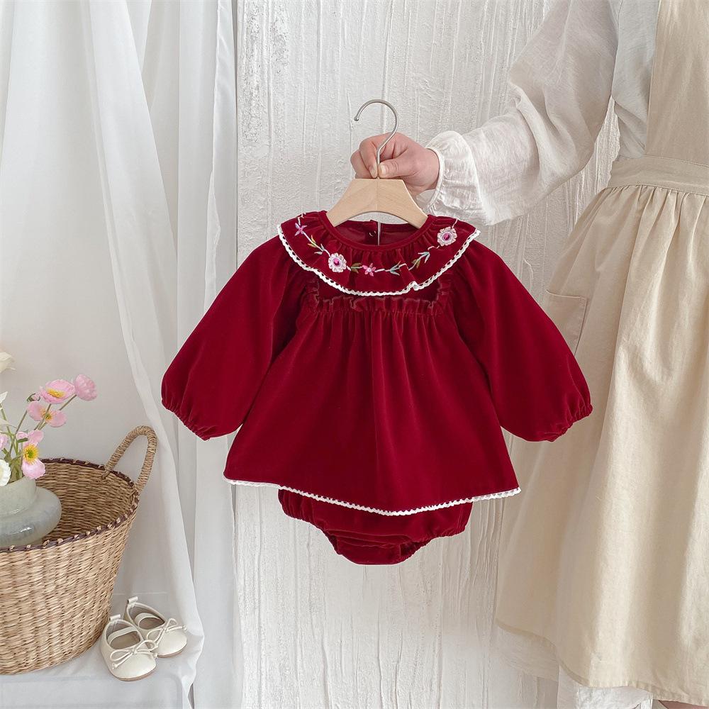 Traje para niñas estilo coreano Ins Primavera Bebé Manga Larga Camisa de Muñeca Bordada Pantalones Pan Dos Piezas Ropa de Bebé