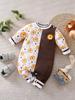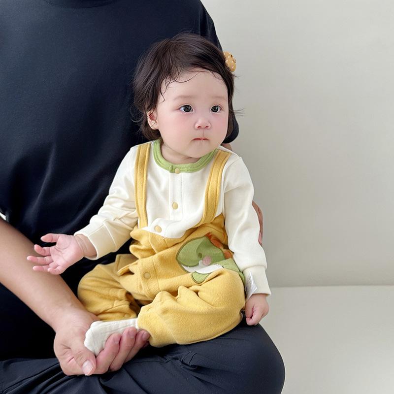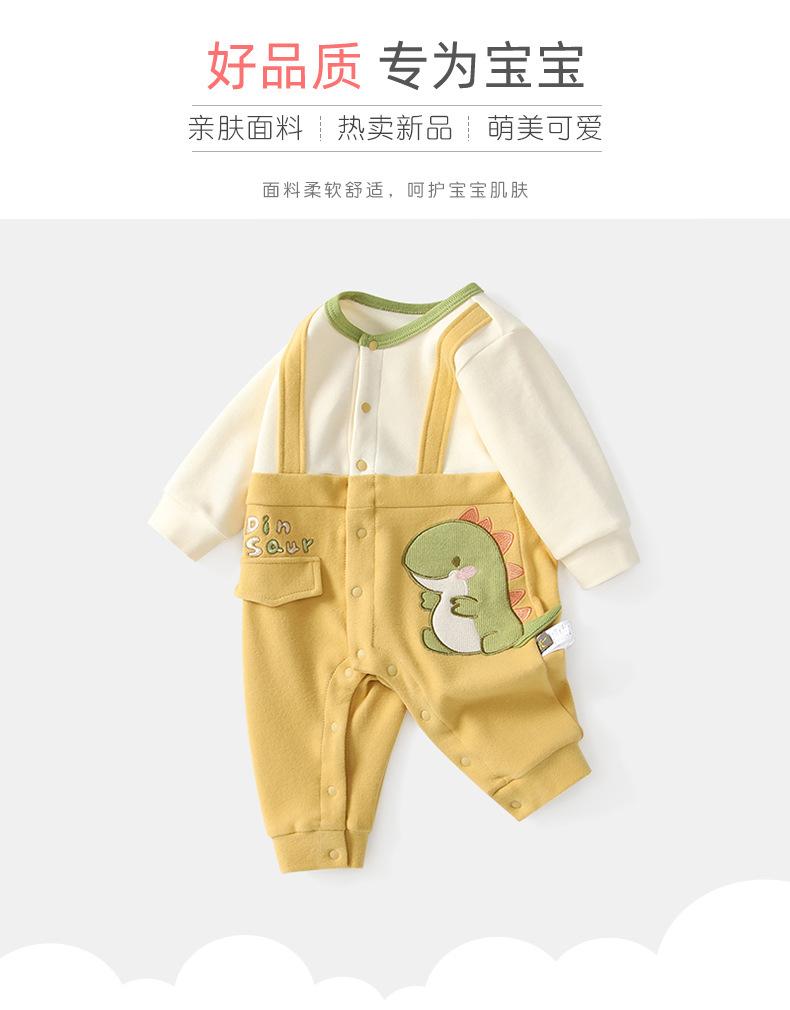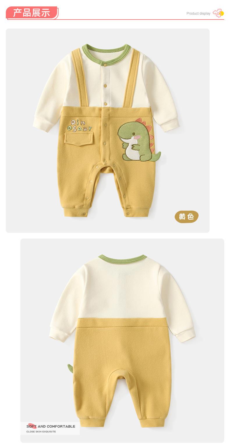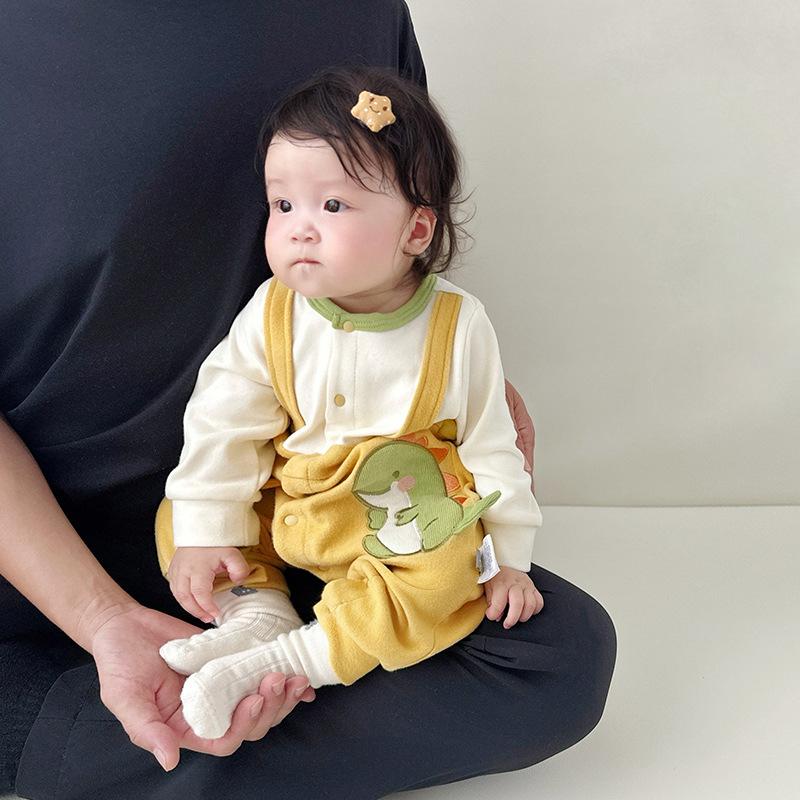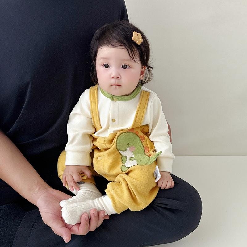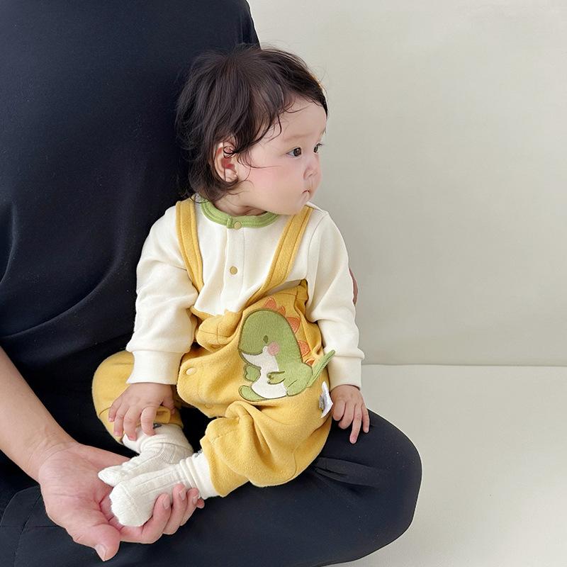Mameluco para Bebé Recién Nacido Bebé Otoño Manga Larga Dinosaurio Botones Frontales Traje de Gateo Falso de Dos Piezas 0-3 Años Ropa de Bebé