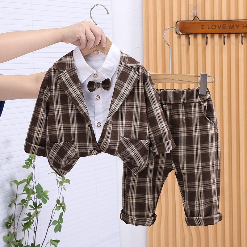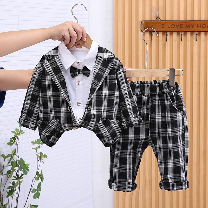 Ropa para niños Traje de primavera y otoño para niños Nuevo Traje para bebé para primavera y otoño Estilo occidental Estilo coreano Vestido Traje para bebé de tres piezas