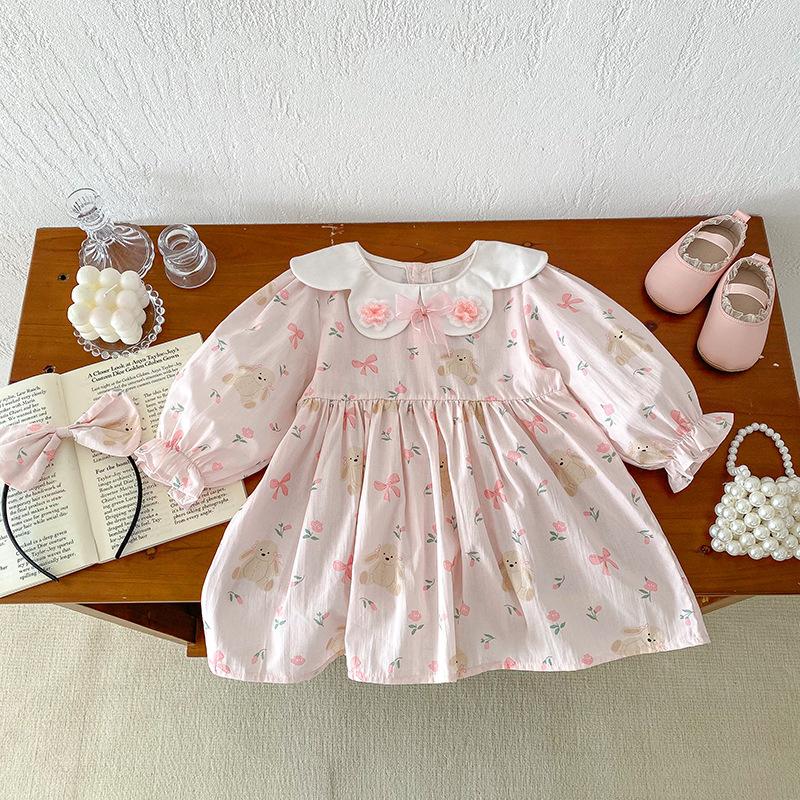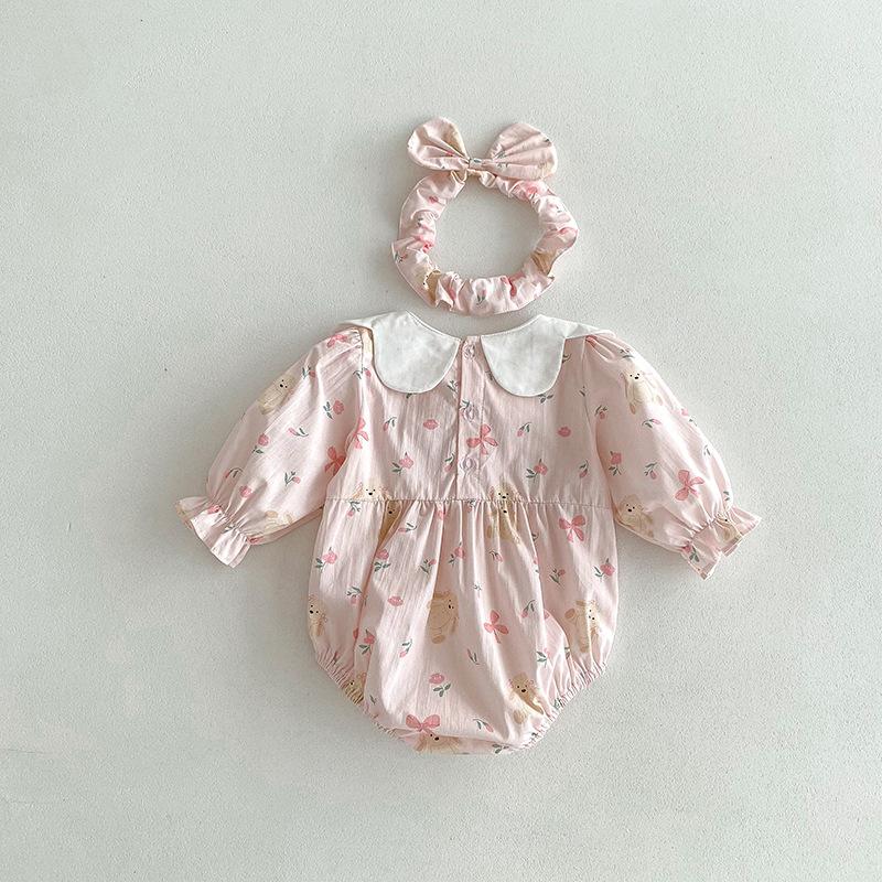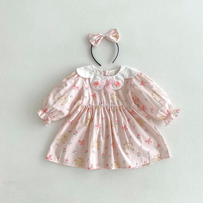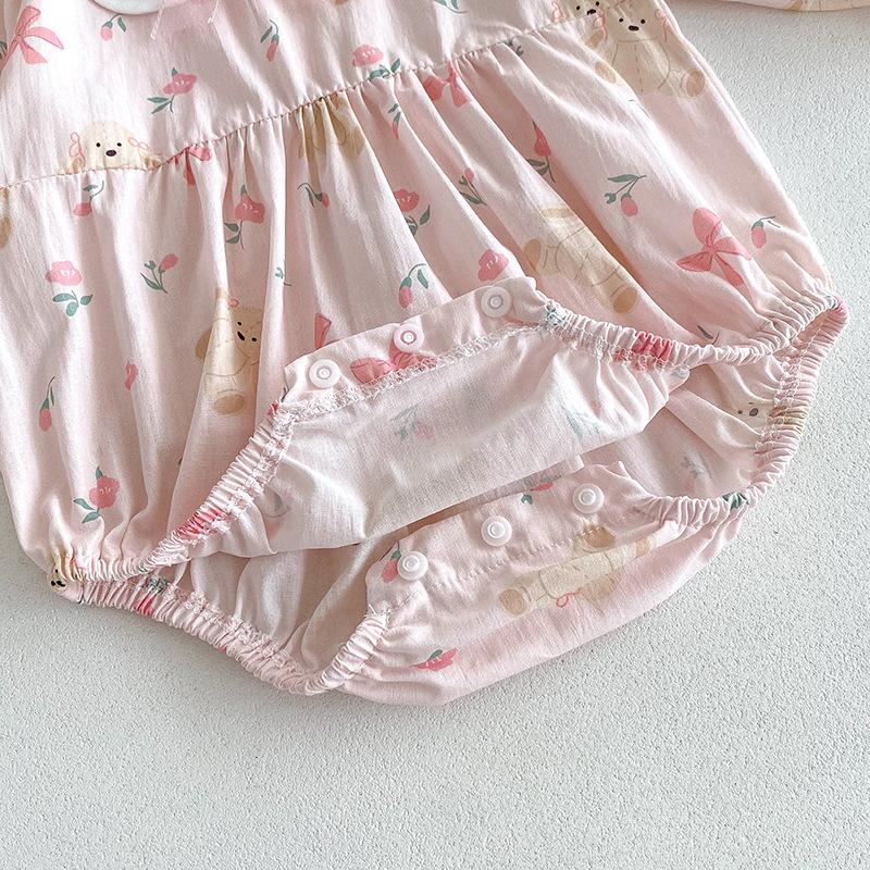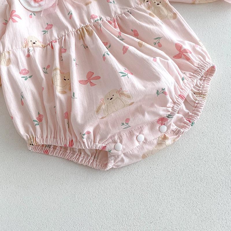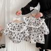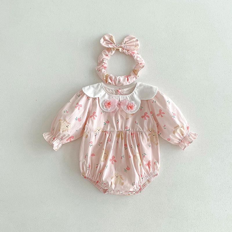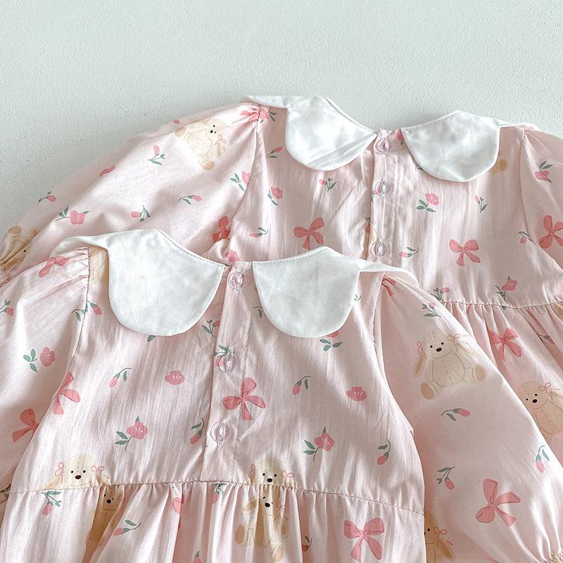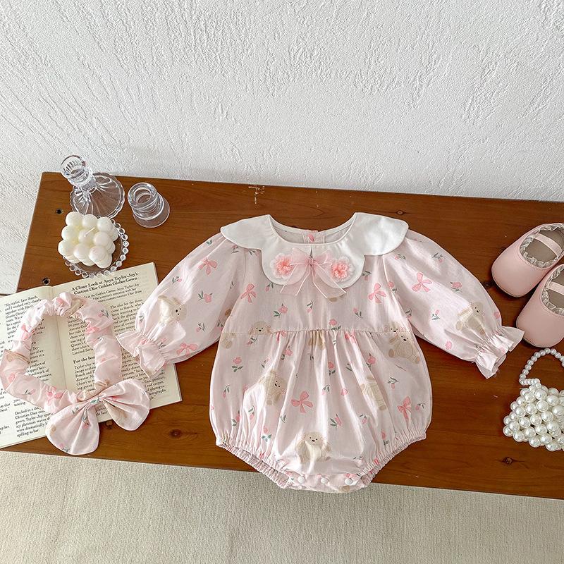 25 Ropa de Otoño para Bebé Pelele Rosa Bebé con Lazo Vestido de Flores Tridimensionales Estilo Coreano para Niñas Traje de Hermana