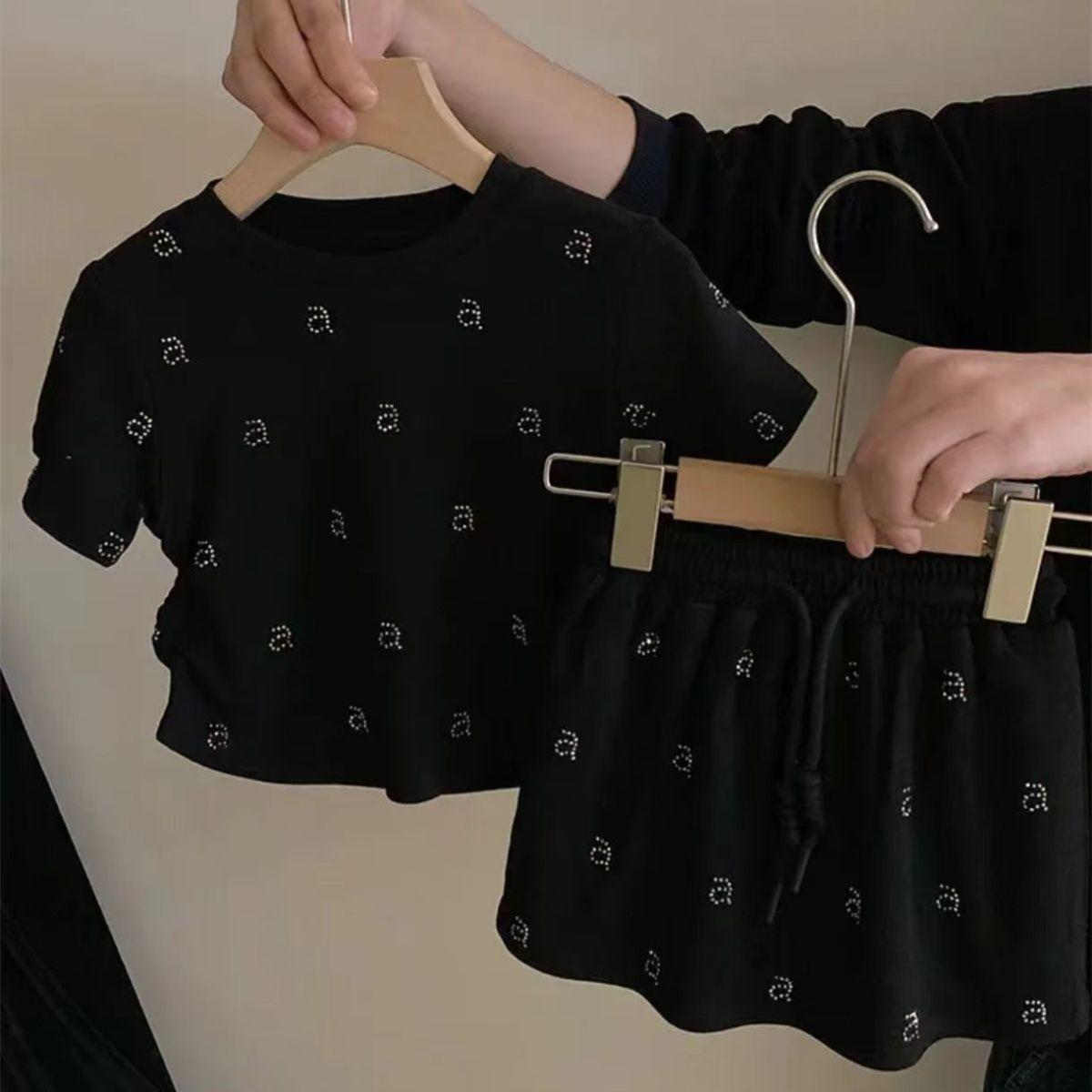 Traje de Verano para Niñas Niña Manga Corta 2024 Nuevo Conjunto de Dos Piezas Estilo Coreano para Niños Ropa de Moda para Bebés