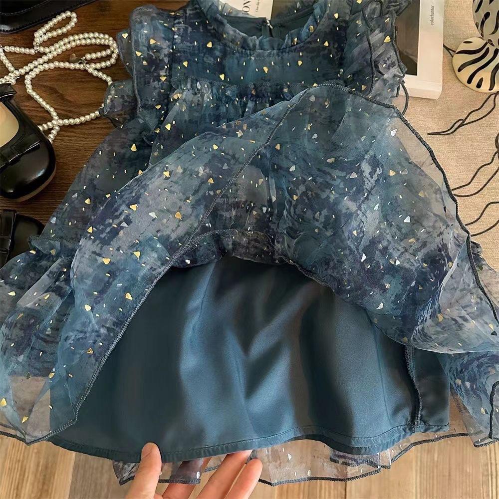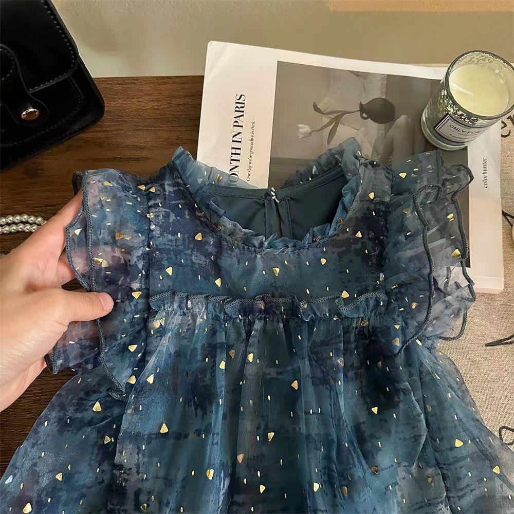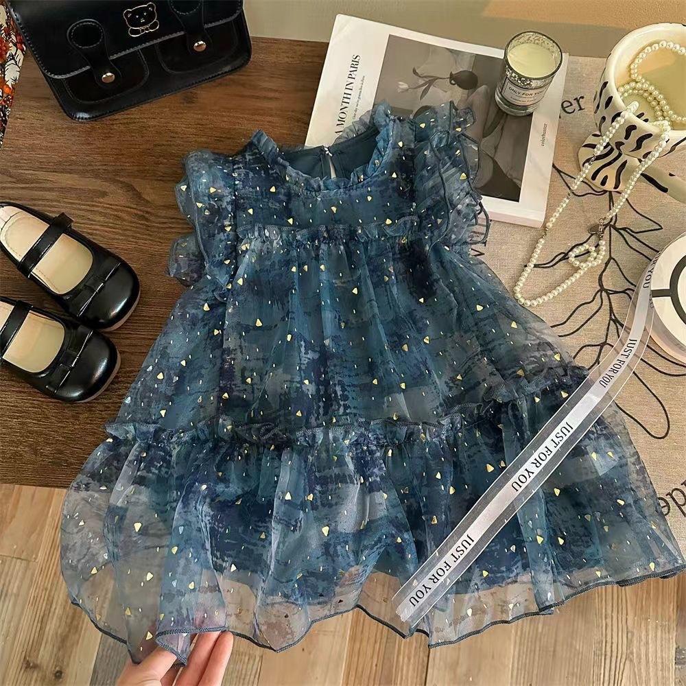 Vestido de Niña Verano 2025 Nuevo Vestido Chaleco de Lentejuelas Vestido de Cielo Estrellado a la Moda para Niña Envío Gratis
