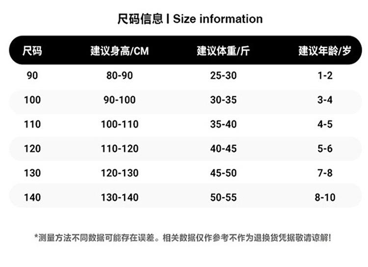 Children (3~8 years old, 100~140cm)