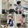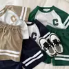 Traje de pantalones cortos de manga corta para niños 2025 Verano Nuevo estilo Niños y niñas Empalme Bebé Coreano Deportivo Camiseta Conjunto de dos piezas