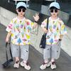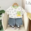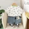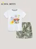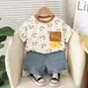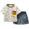 Traje de verano para niño 2025 Nuevo traje para niños Conjunto de dos piezas de manga corta con estampado tridimensional de dibujos animados de verano para niños