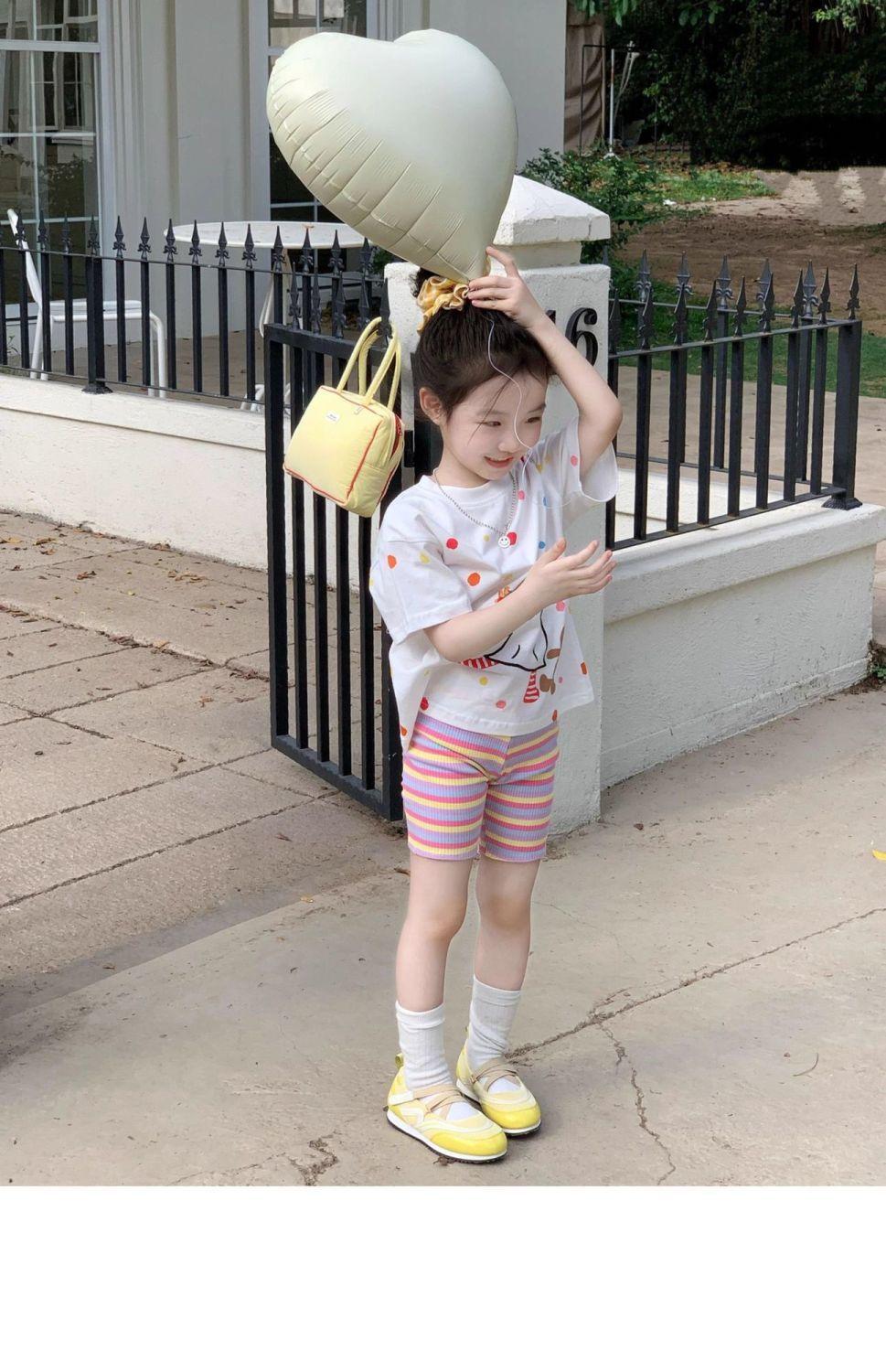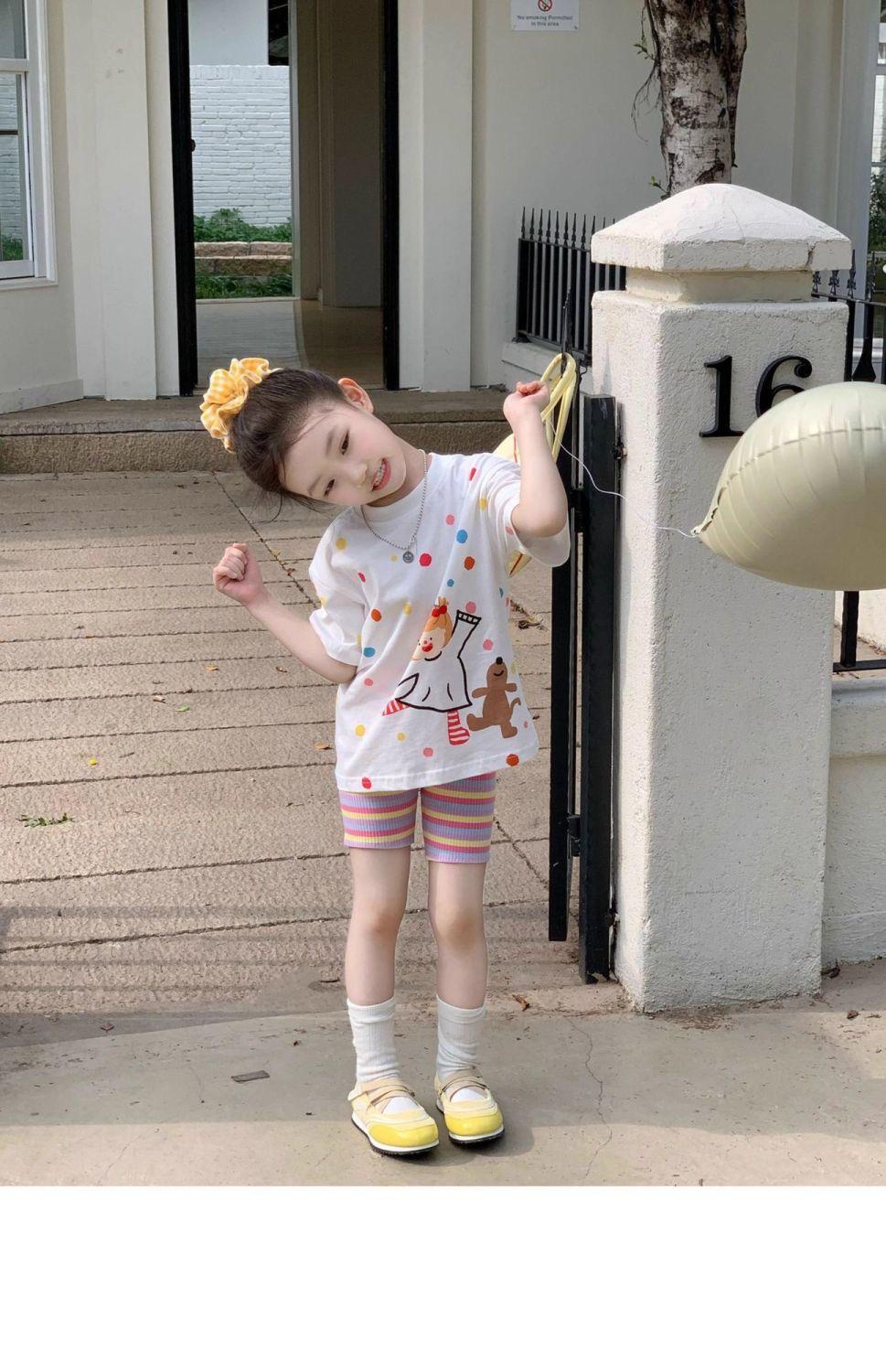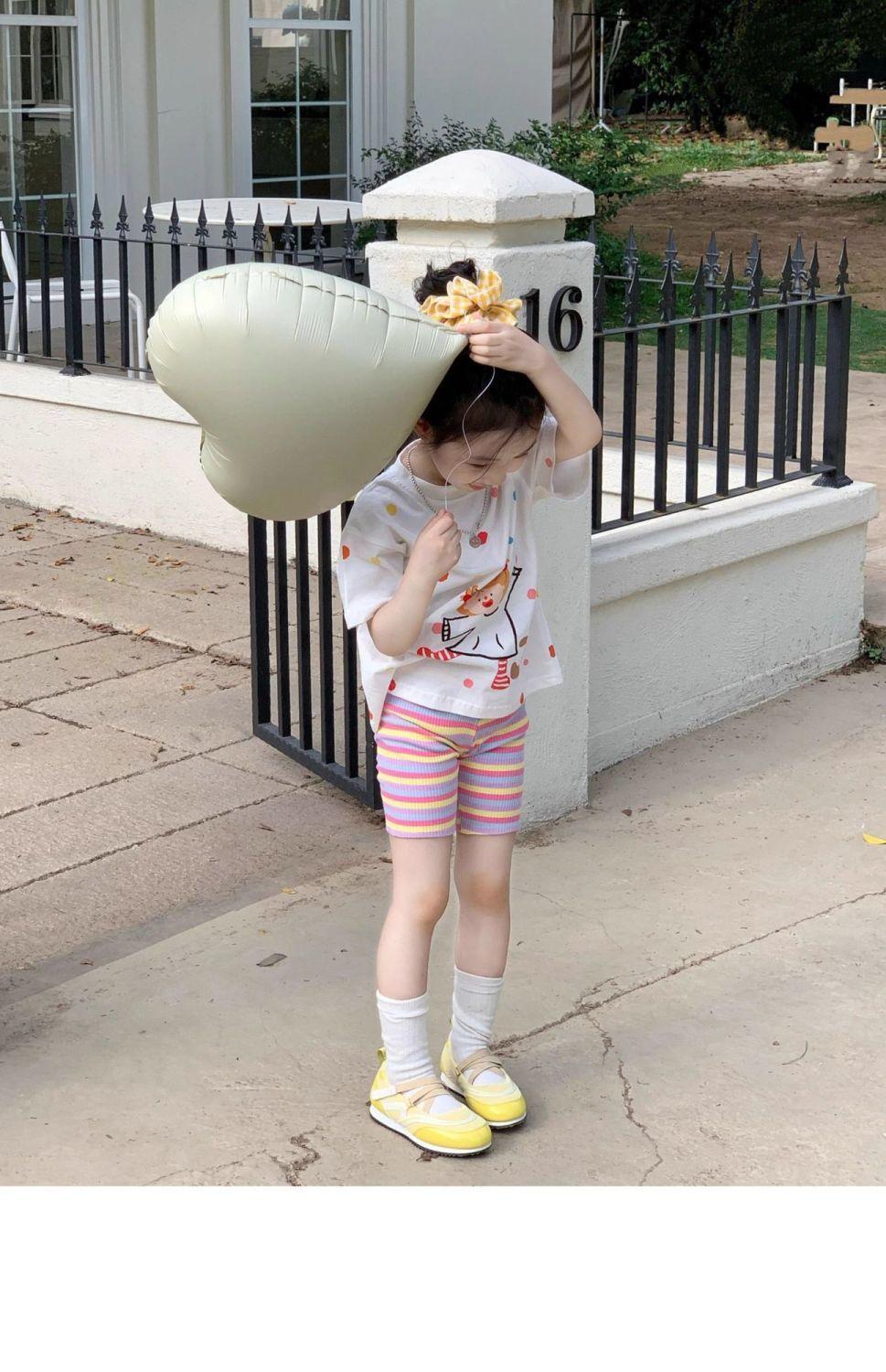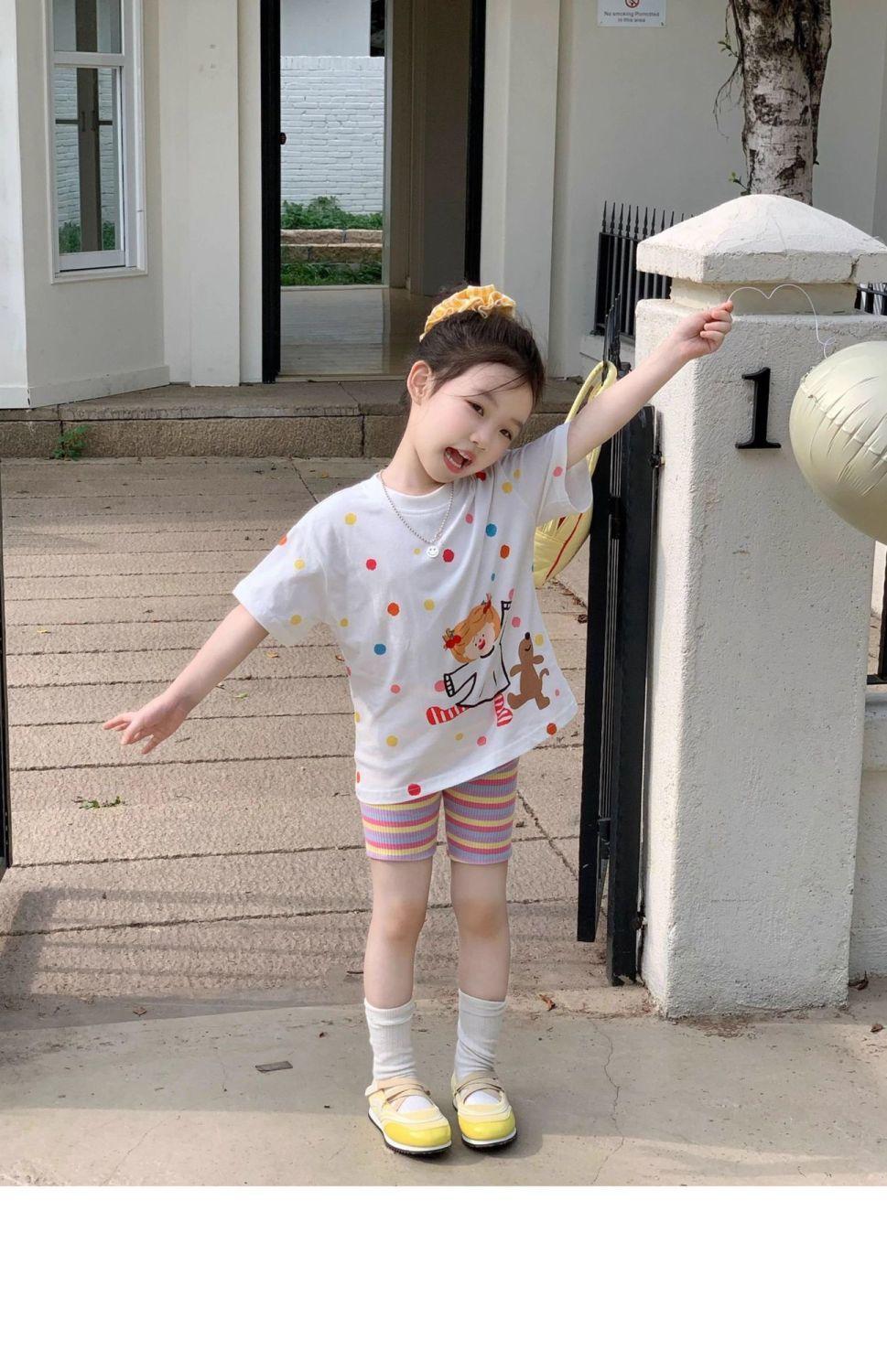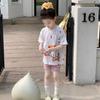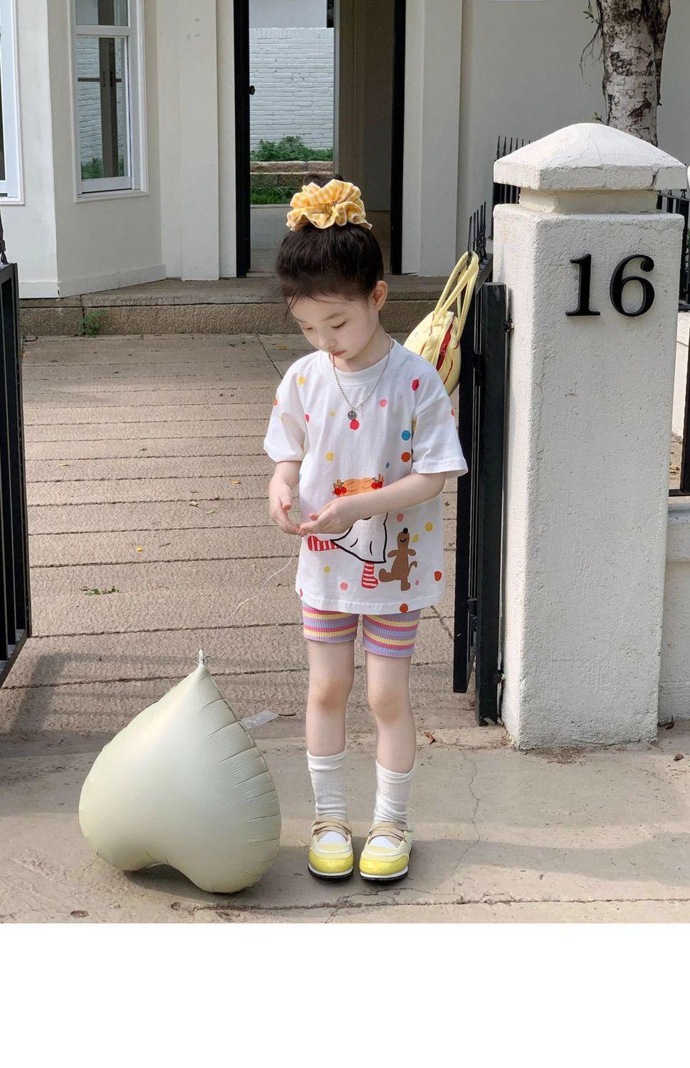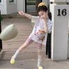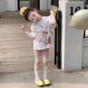 Niñas 2025 Nuevo Estilo de Verano Dulce Dibujo Animado Estampado Delgado Manga Corta Traje de Shorts Estilo Coreano Estilo Casual Camiseta