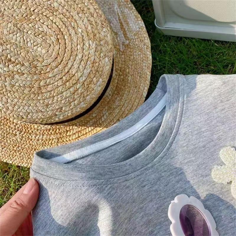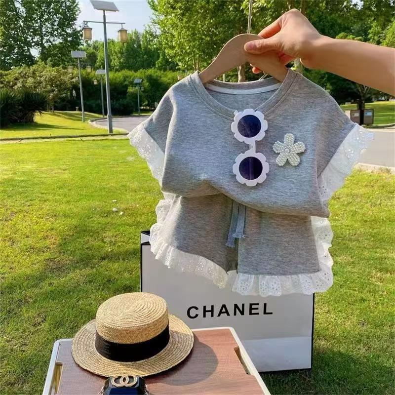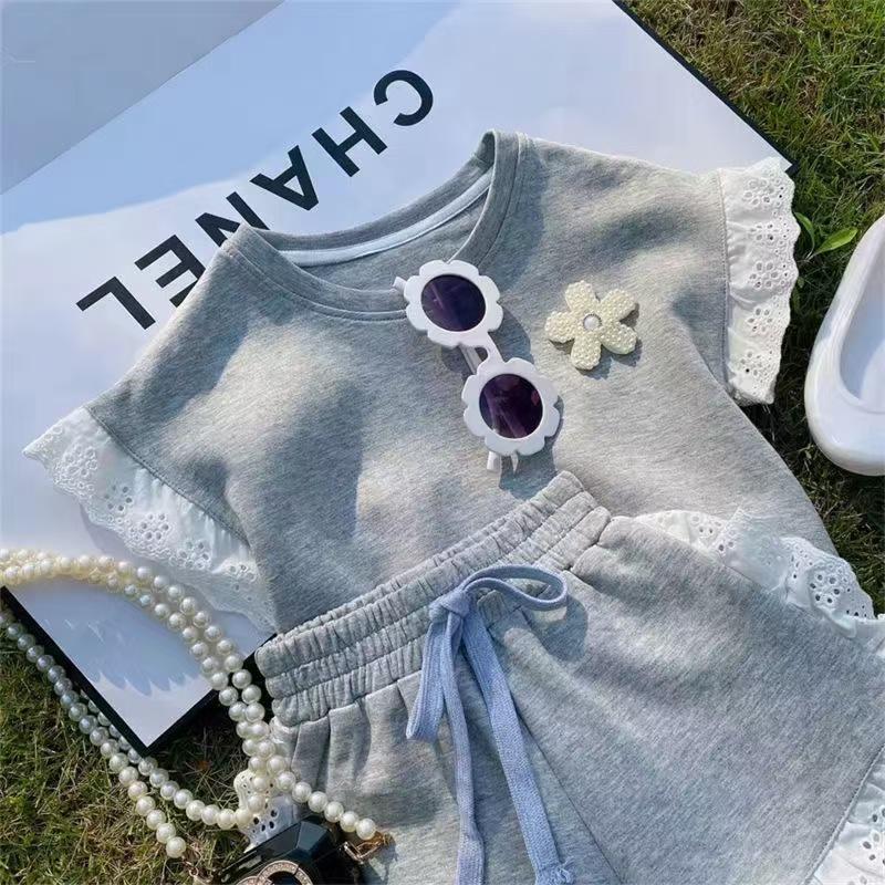 Traje de Verano para Niñas Bebé Estilo Coreano Casual Encaje Camiseta de Manga Corta Shorts para Niños Pequeños y Medianos Conjunto de Dos Piezas Estilo Occidental