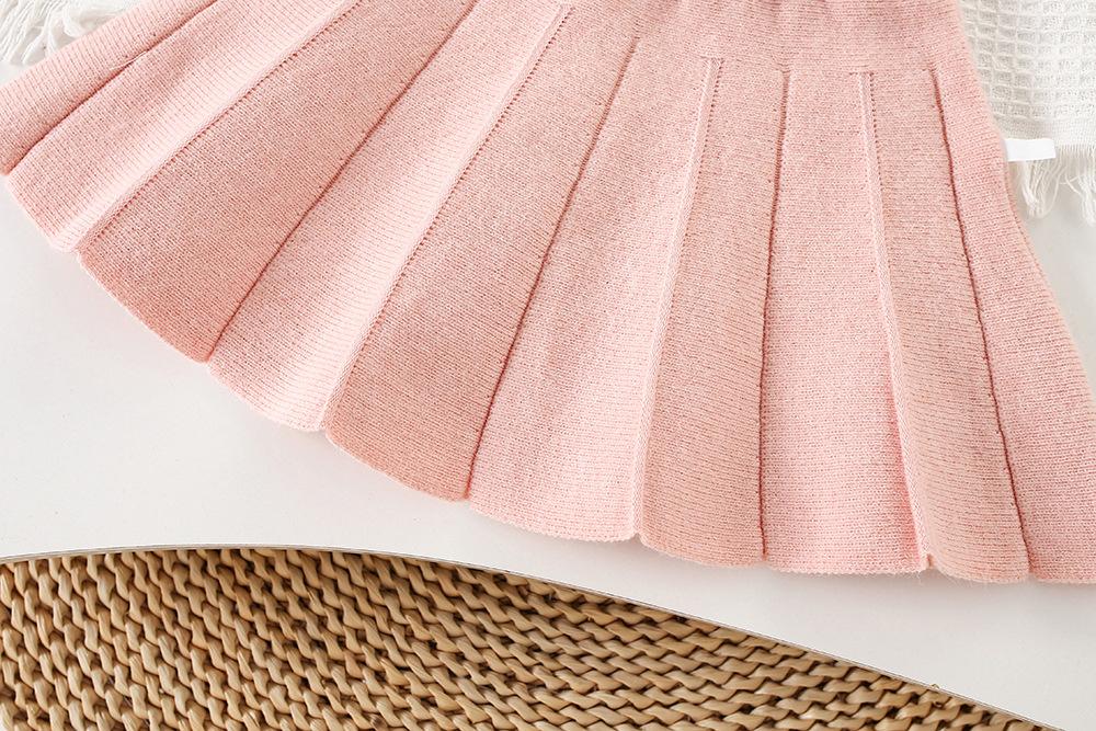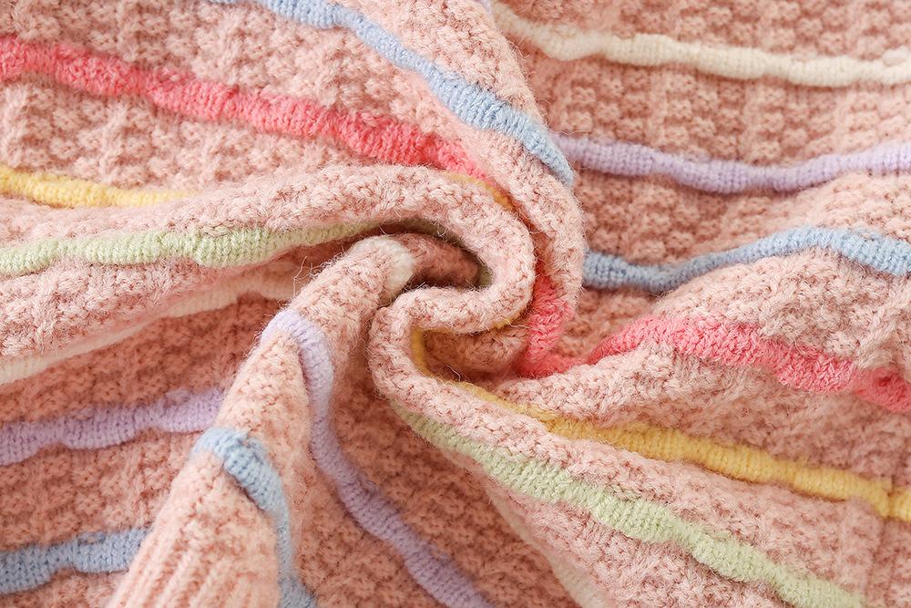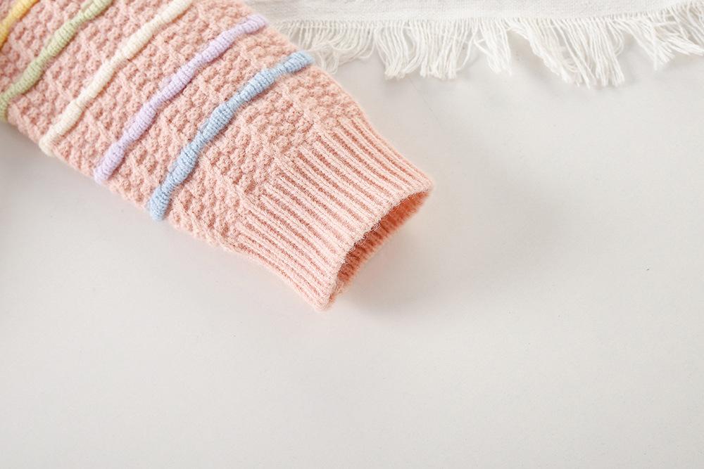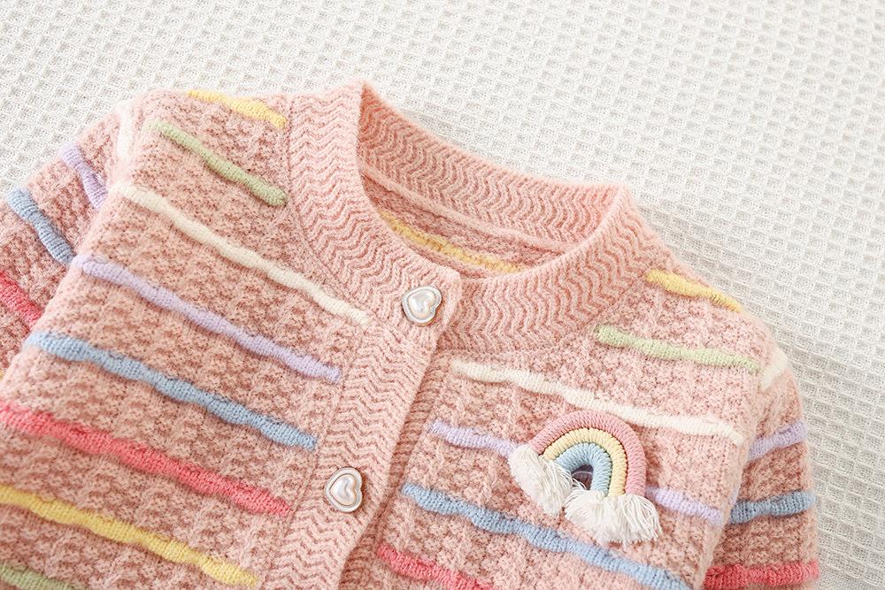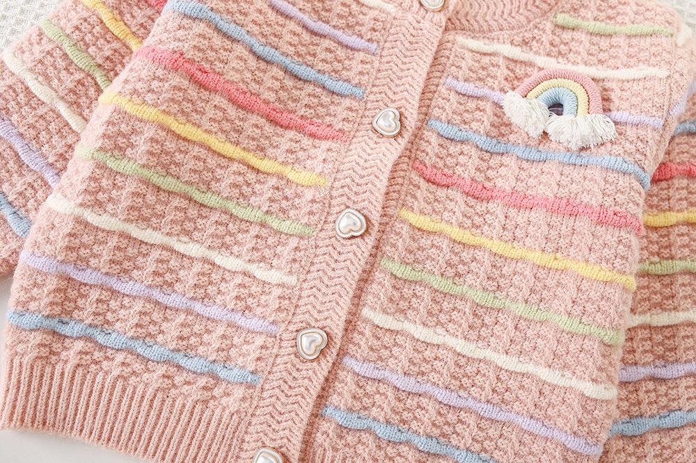 Conjunto de Suéter para Niña Otoño e Invierno Nuevo Bebé Niña Rayas Arcoíris Falda de Punto Estilo Coreano Suéter Chaqueta de Moda Trendy