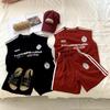 Nuevo Conjunto Deportivo de Verano para Niños de Manga Corta y Pantalones Cortos, Estilo Coreano Casual Delgado de Dos Piezas con Letras Estampadas Completas