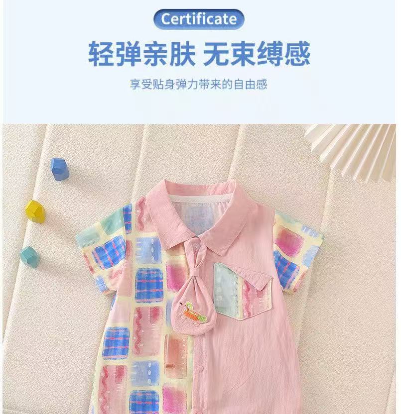 Compra Mameluco de Verano de Manga Corta para Bebé Camisa Fina Estilo Nuevo 2025 Estilo Infantil Lazo de Moño Sudadera con Capucha al por mayor en Joom.pro