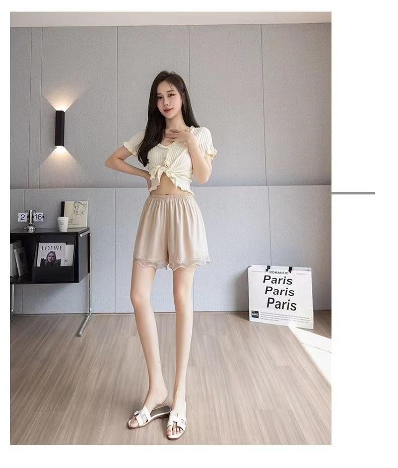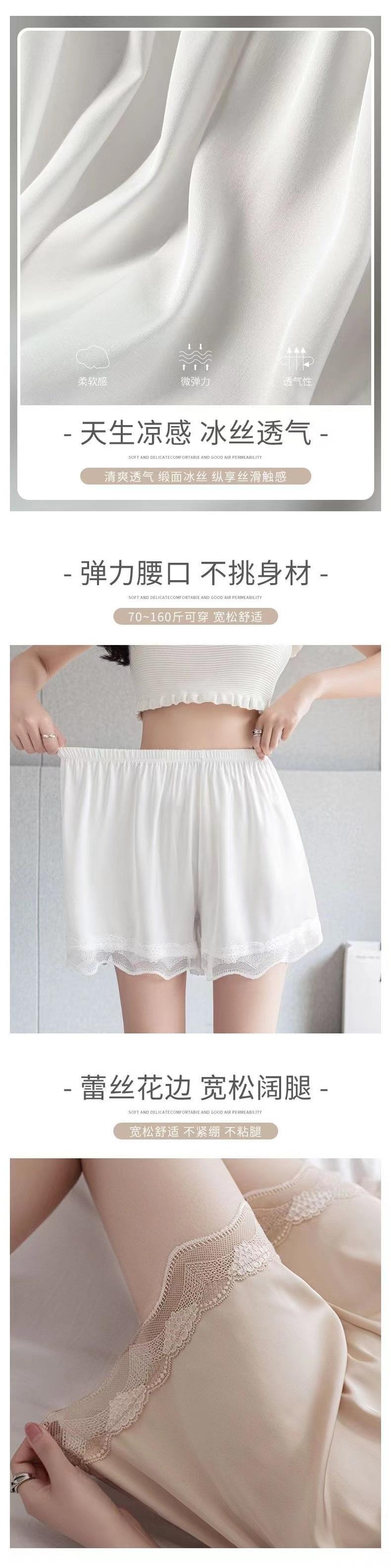 Shorts de Seguridad de Seda de Hielo Sin Costuras para Mujer, Anti-Exposición, Delgados de Verano, No se Enrollan, Caseros Sueltos, Encaje Base, Shorts de Seguro