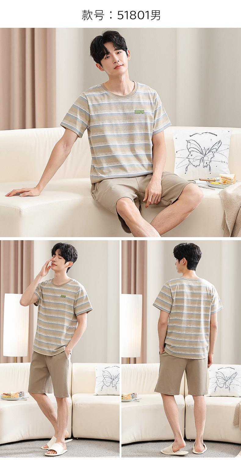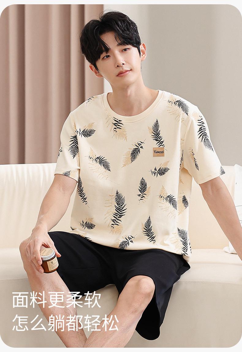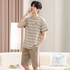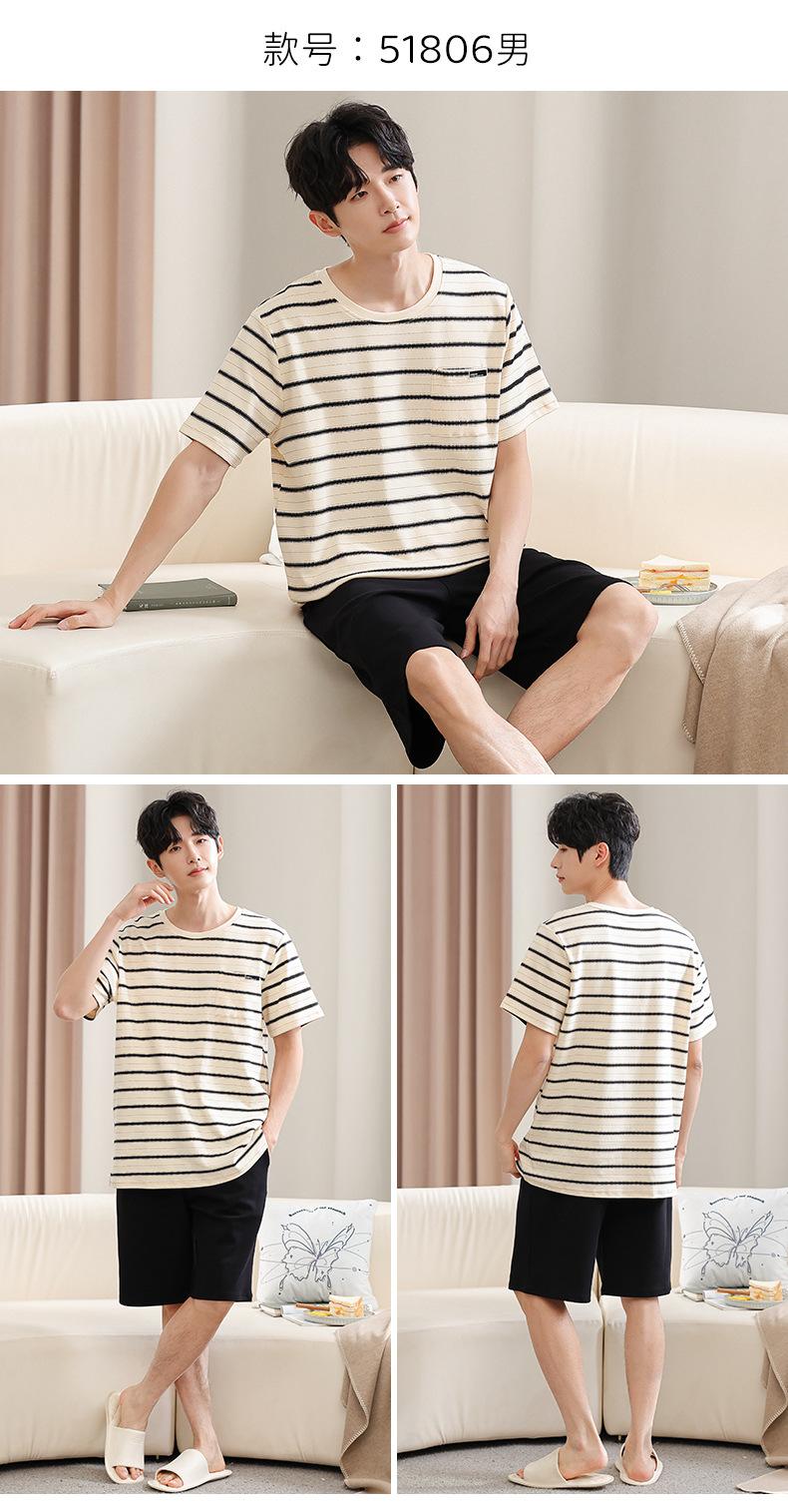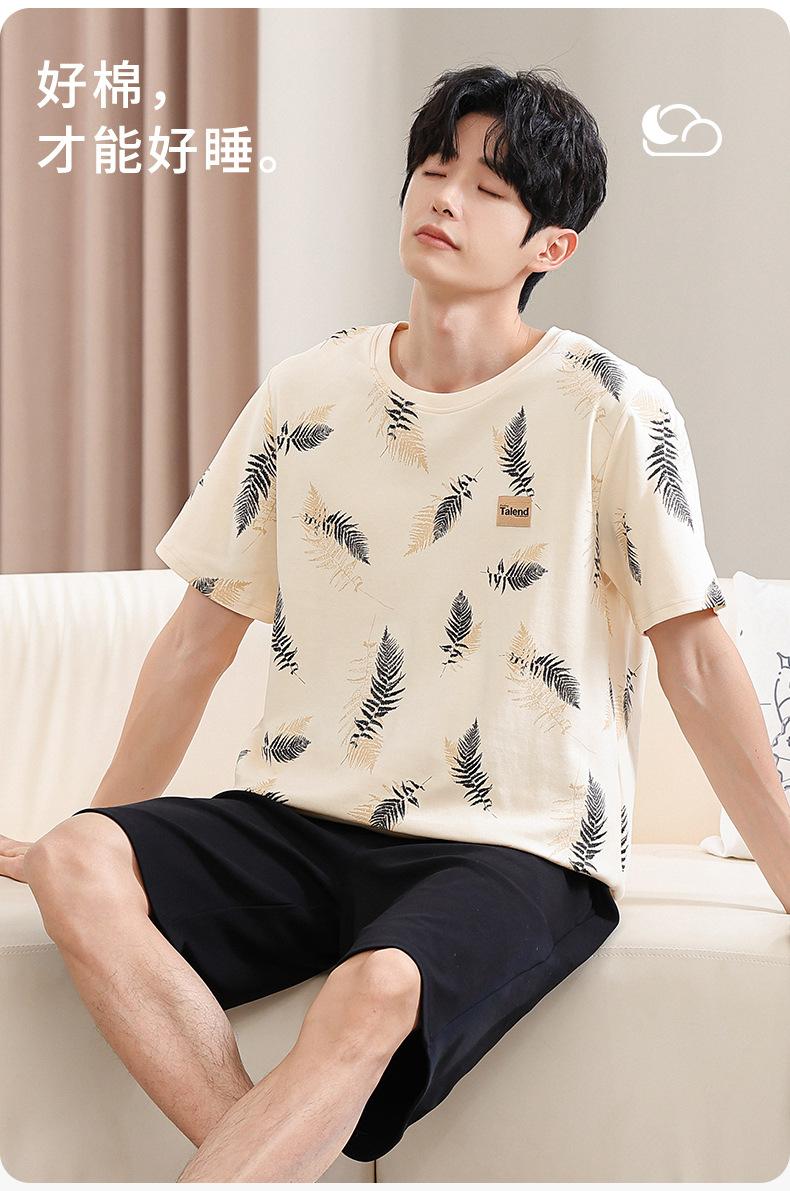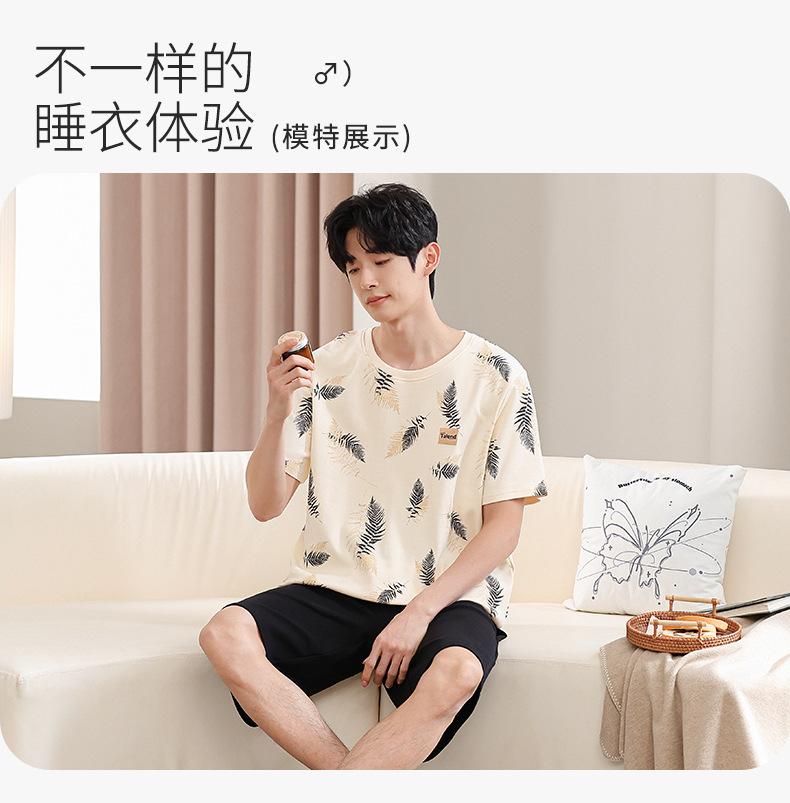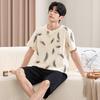 Pijama de Verano para Hombre Algodón Puro Manga Corta Pantalón Cinco Puntos Juventud Delgado Verano Conjunto de Ropa para el Hogar para Hombre