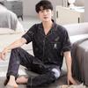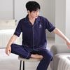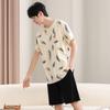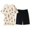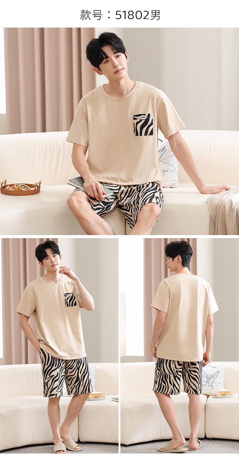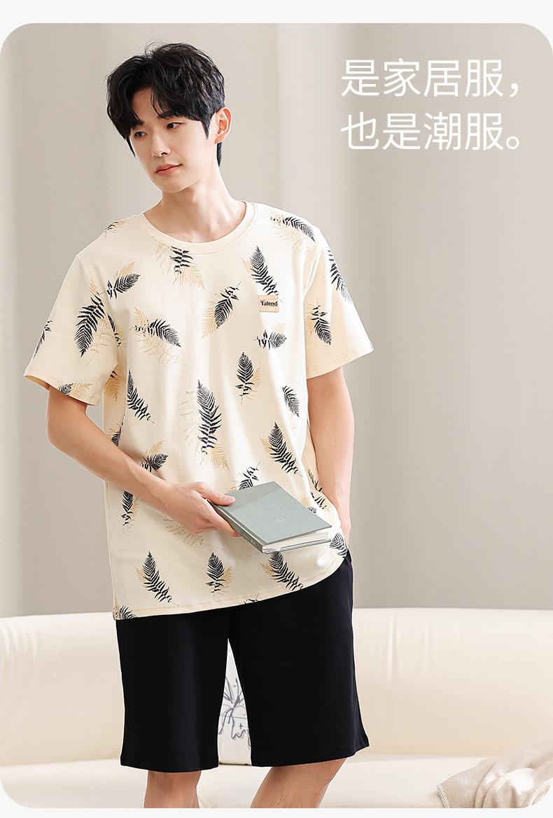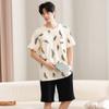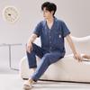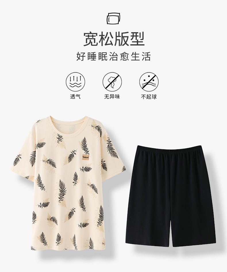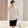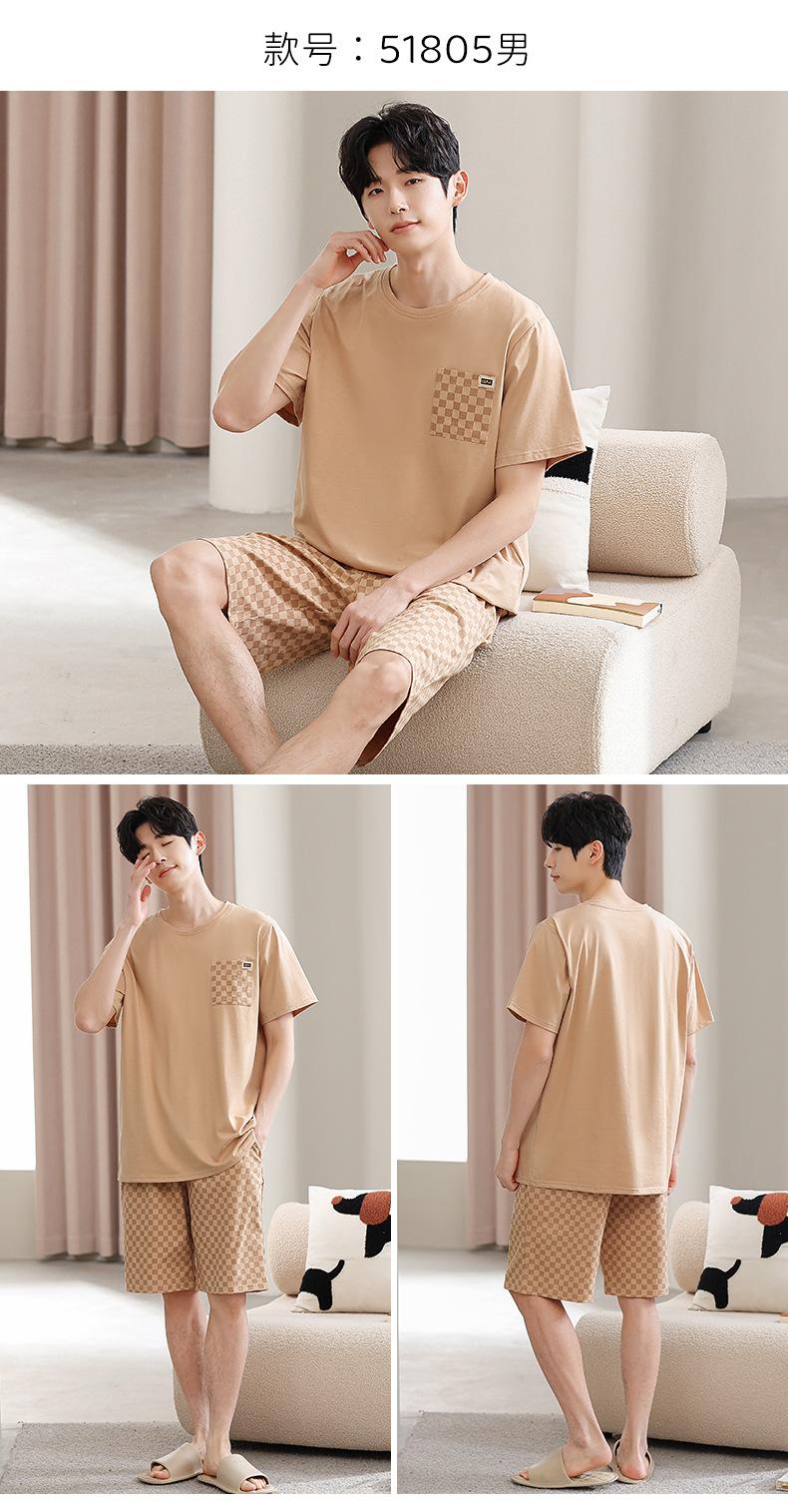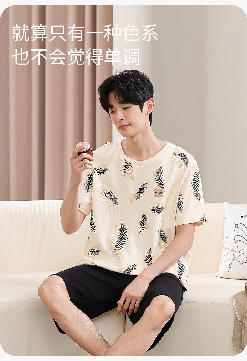 Pijama de Verano para Hombre Algodón Puro Manga Corta Pantalón Cinco Puntos Juventud Delgado Verano Conjunto de Ropa para el Hogar para Hombre