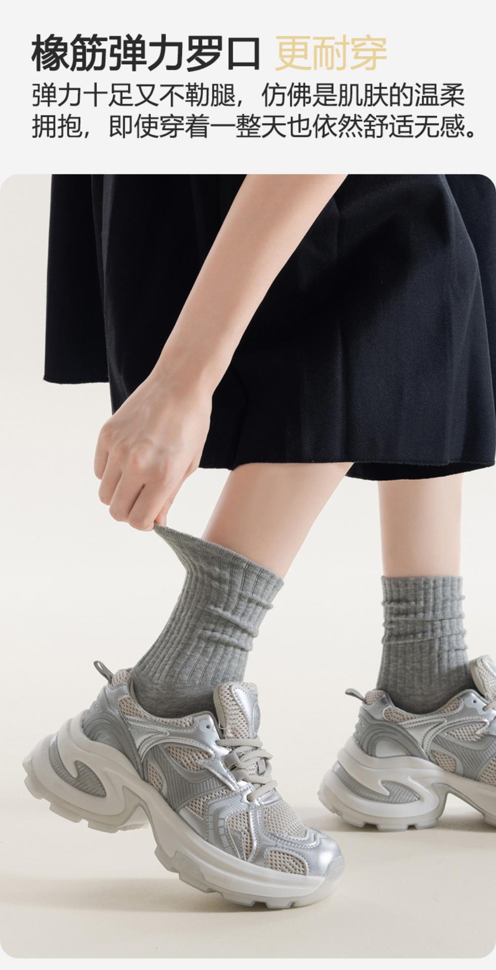 Calcetines de Rizo Grises para Mujer Calcetines de Algodón Puro hasta la Media Pantorrilla Primavera y Otoño Calcetines de Algodón sin Costuras para Mujer Antibacterianos Transpirables Calcetines Deportivos al Mayoreo