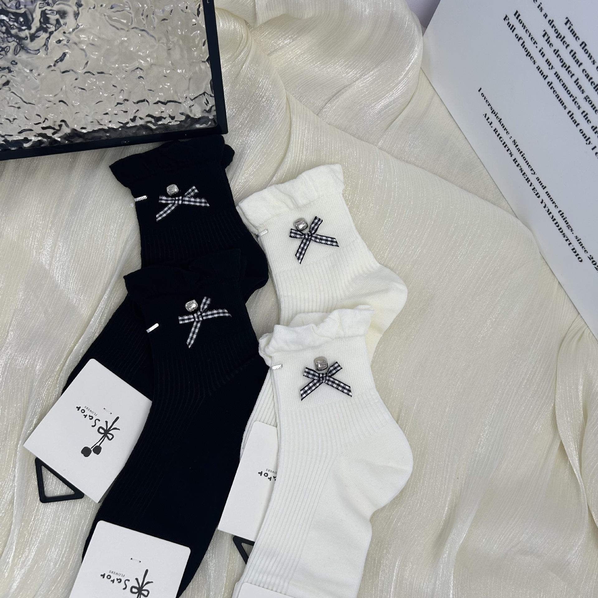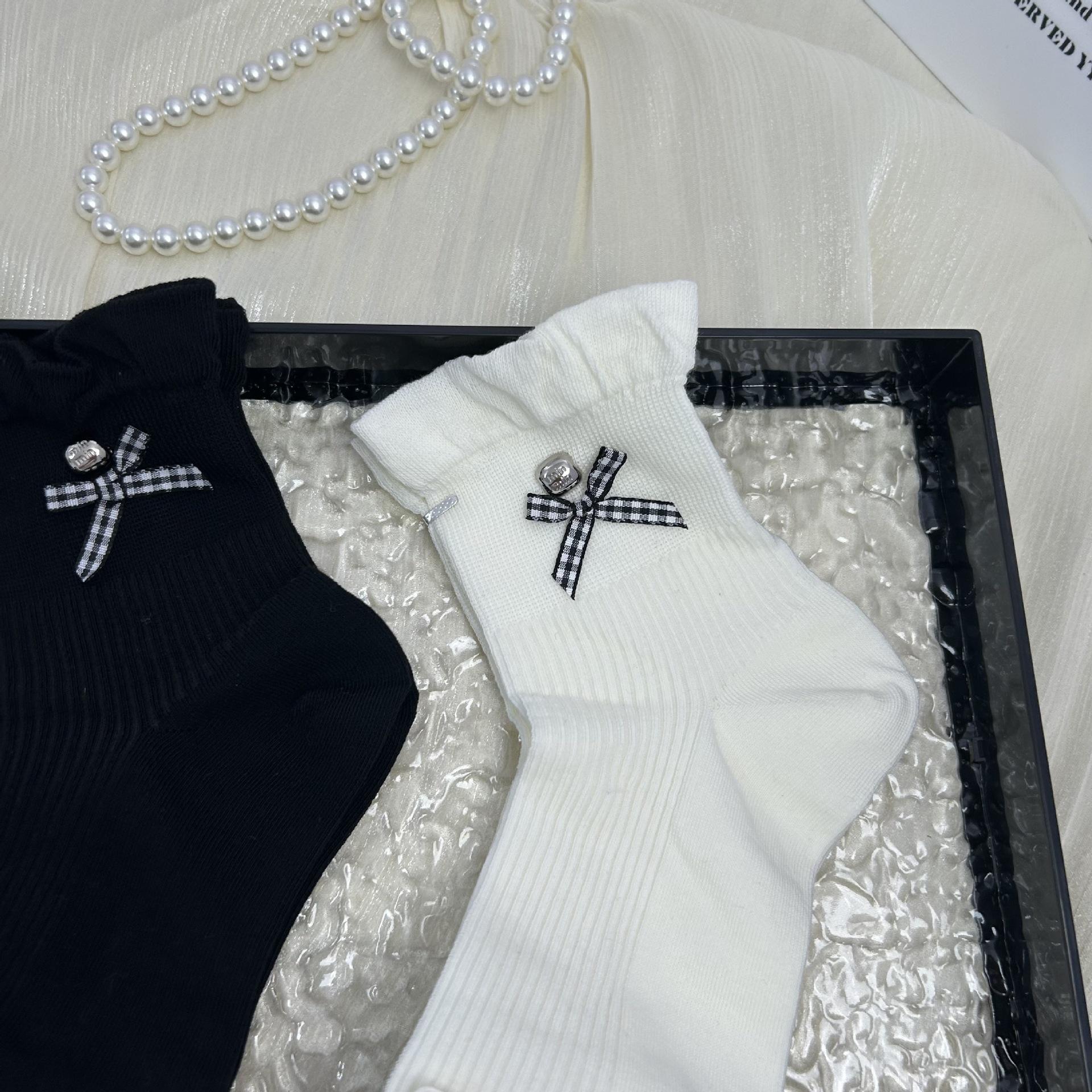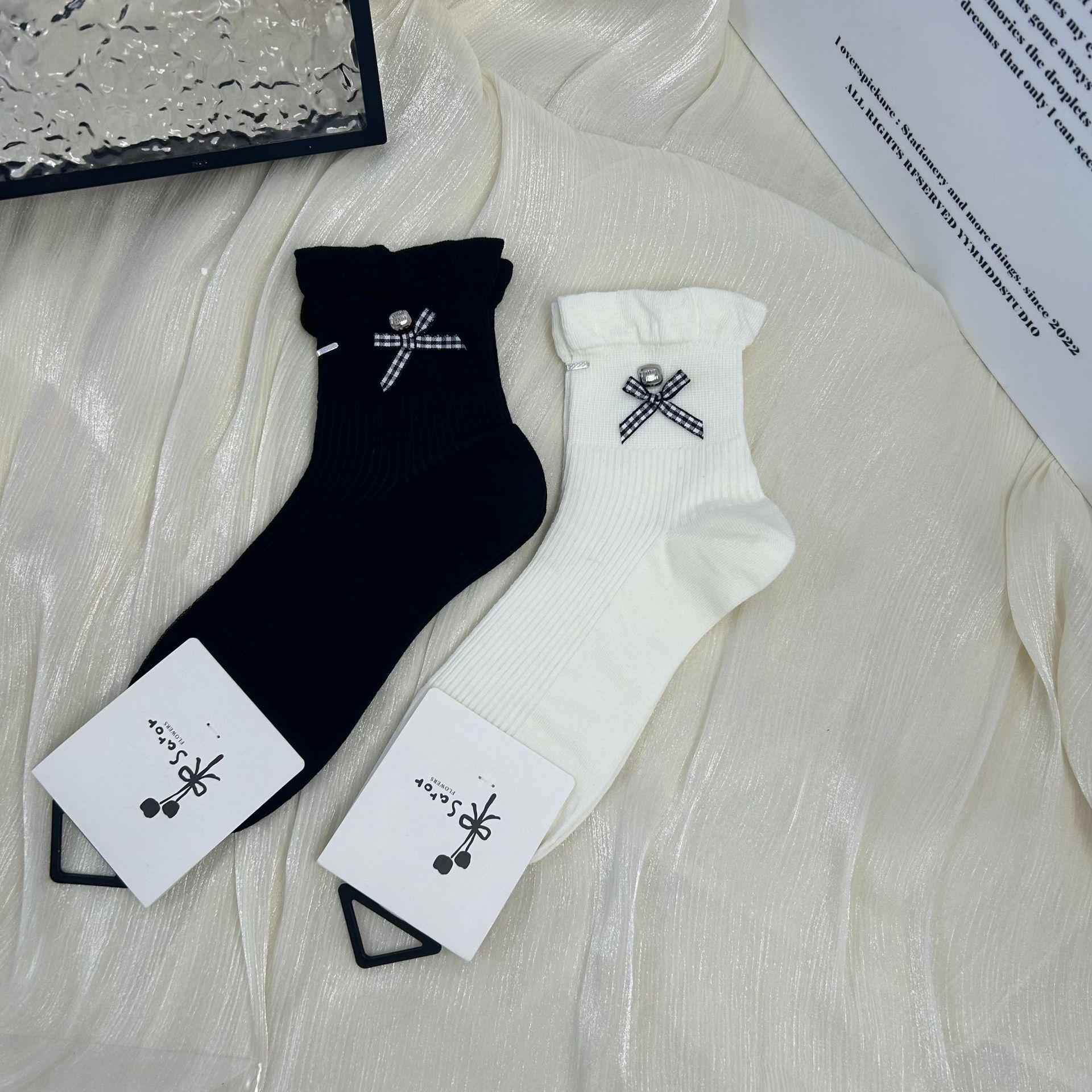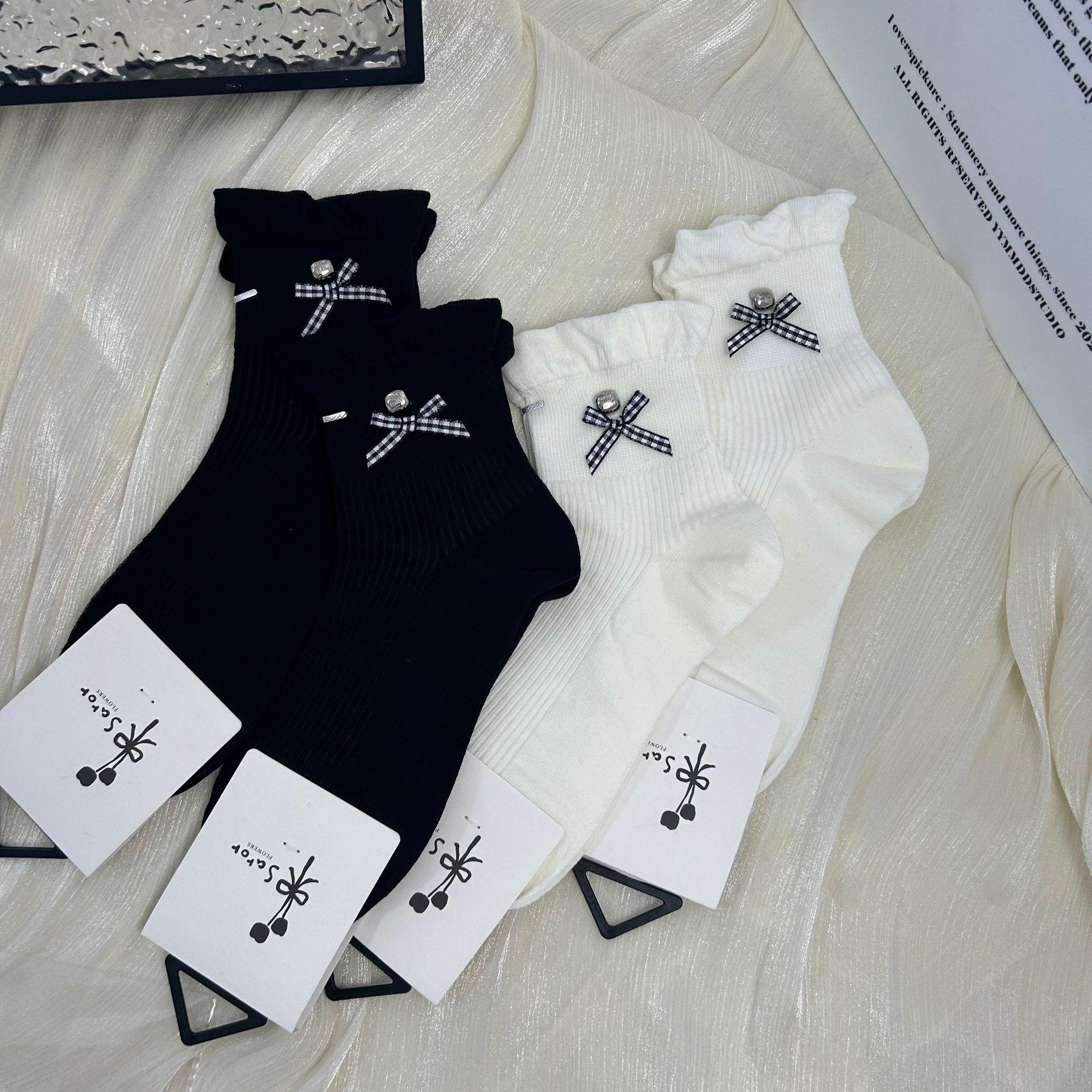 Calcetines con Lazo Calcetines de Media Caña para Mujer Algodón Puro Estilo Japonés Lindo Ins Trendy Versátil Calcetines Simples Calcetines de Mujer