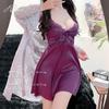 Dark purple two-piece suit (ice silk jacket), Dark purple two-piece suit (light purple lace jacket), Dark purp...