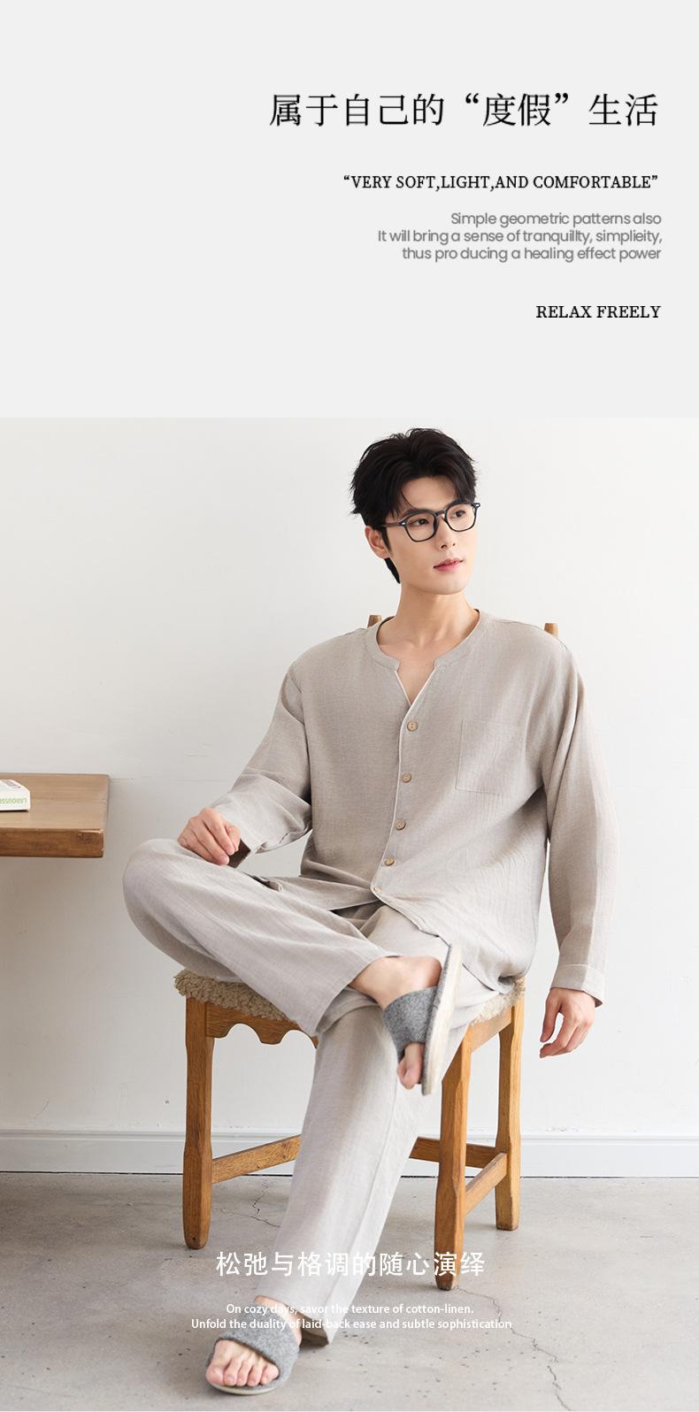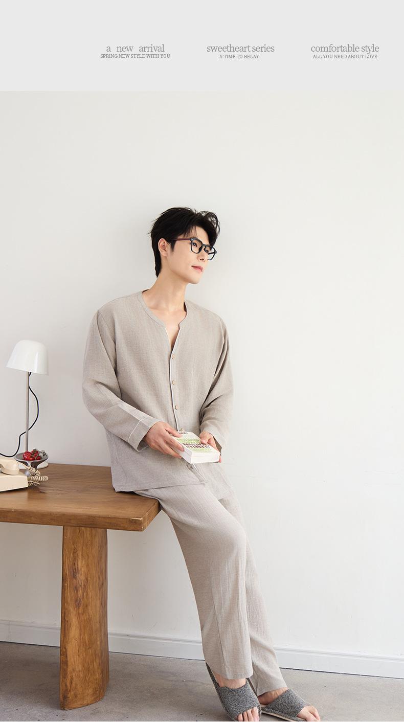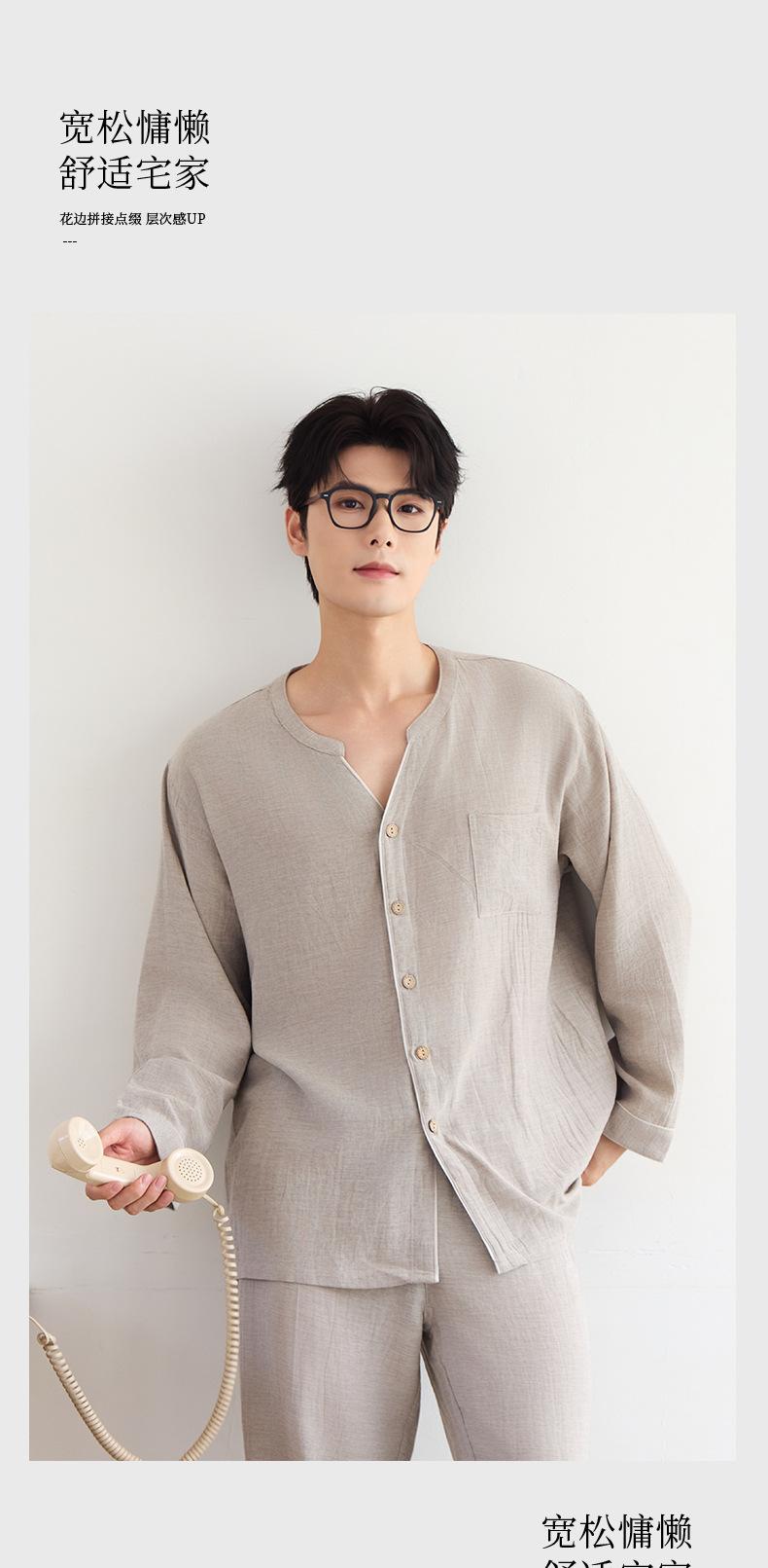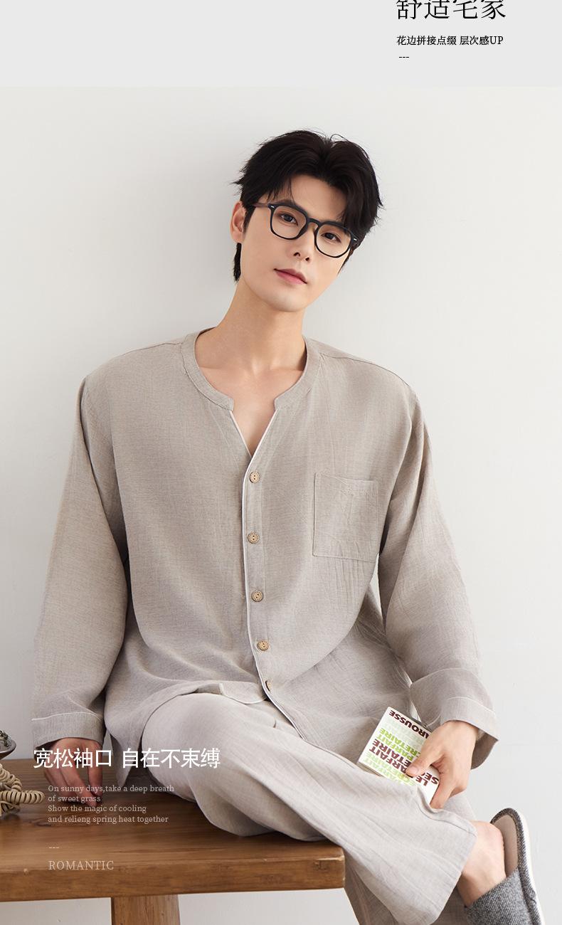 Compra Pijama de Lino Tencel Estilo Muji de Nuevo Estilo para Hombre, Color Puro, Ropa para el Hogar, Primavera, Otoño, Verano, Delgado, Conjunto de Pijama con Cárdigan, Se Puede Usar Afuera al por mayor en Joom.pro