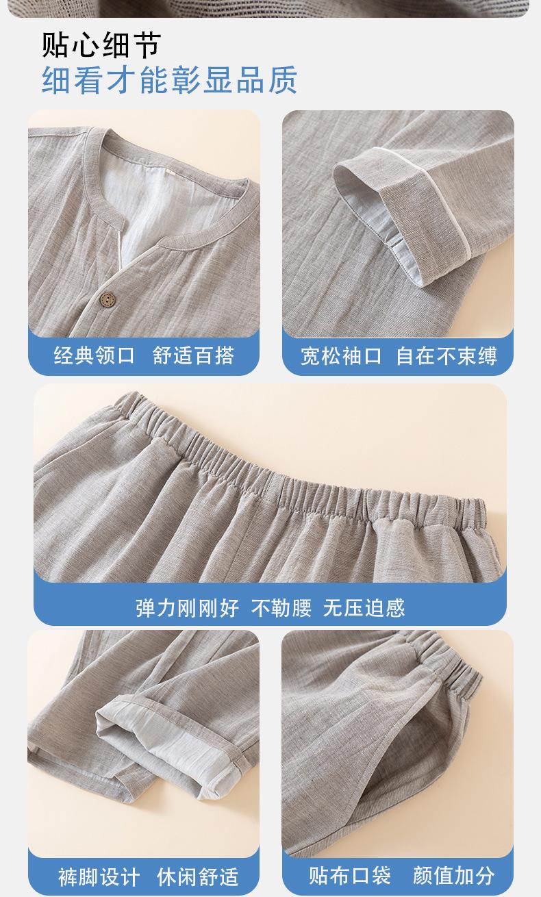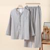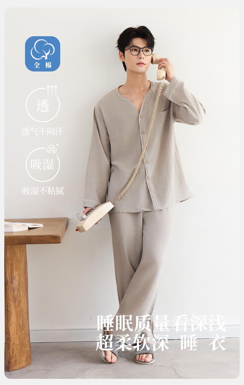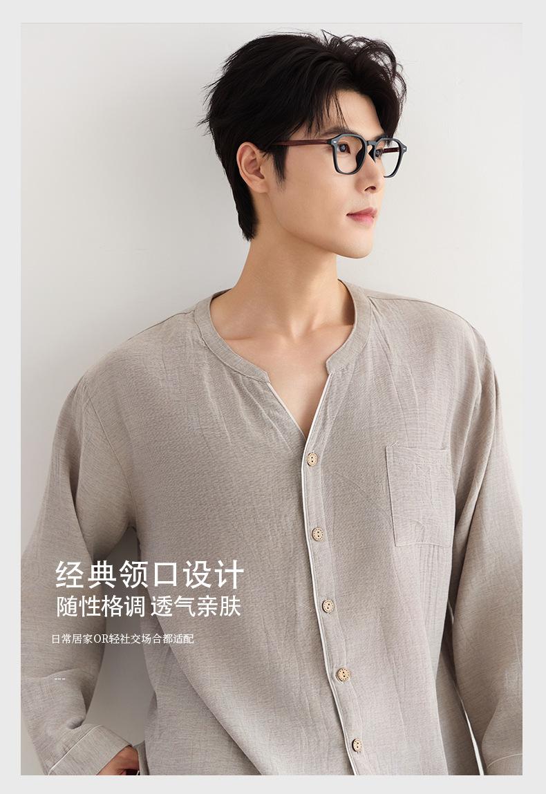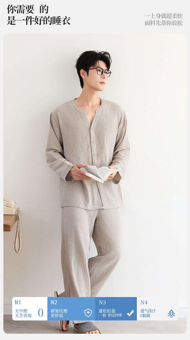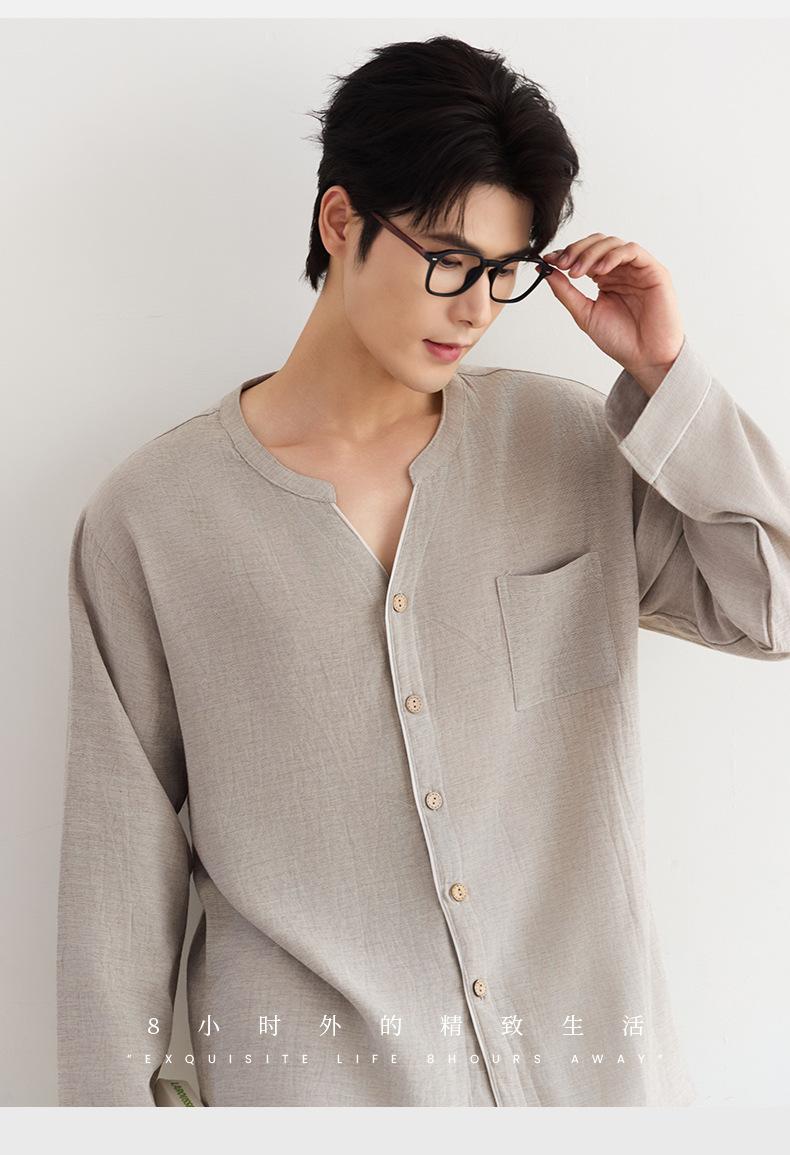 Compra Pijama de Lino Tencel Estilo Muji de Nuevo Estilo para Hombre, Color Puro, Ropa para el Hogar, Primavera, Otoño, Verano, Delgado, Conjunto de Pijama con Cárdigan, Se Puede Usar Afuera al por mayor en Joom.pro