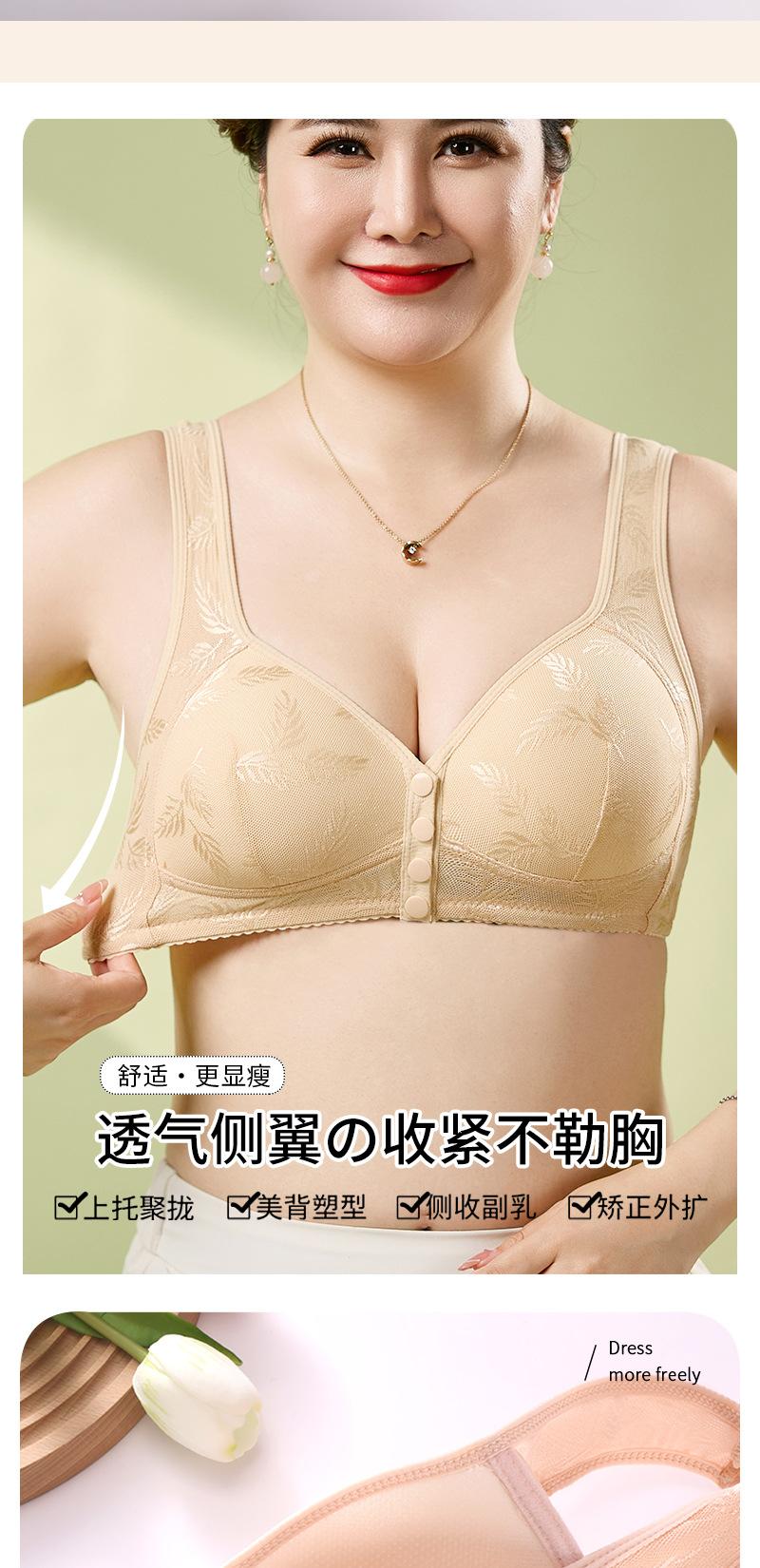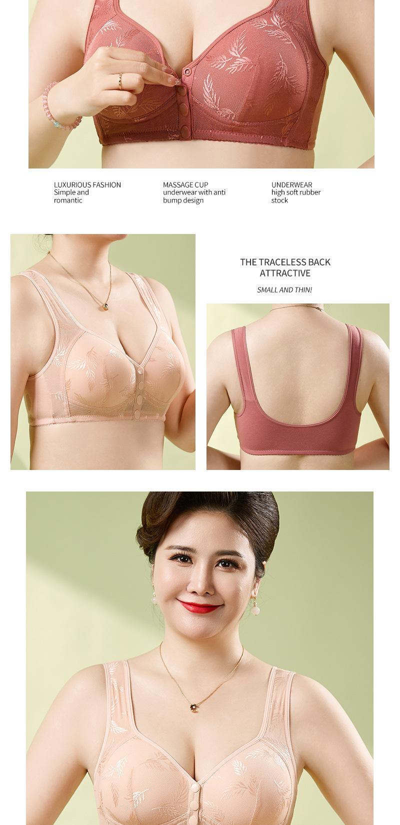 Nuevo Sujetador Jacquard de Lujo Ligero Estilo Chaleco Talla Grande Sin Varillas con Hebilla Delantera y Copa de Esponja para Mujeres de Mediana Edad y Mayores